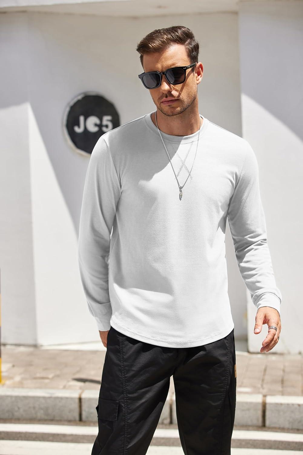 COOFANDY Mens Cotton Hipster Hip Hop Longline Crewneck T Shirts Casual Long Sleeve Tees Curved Hem Gym Shirts(One Piece- White)