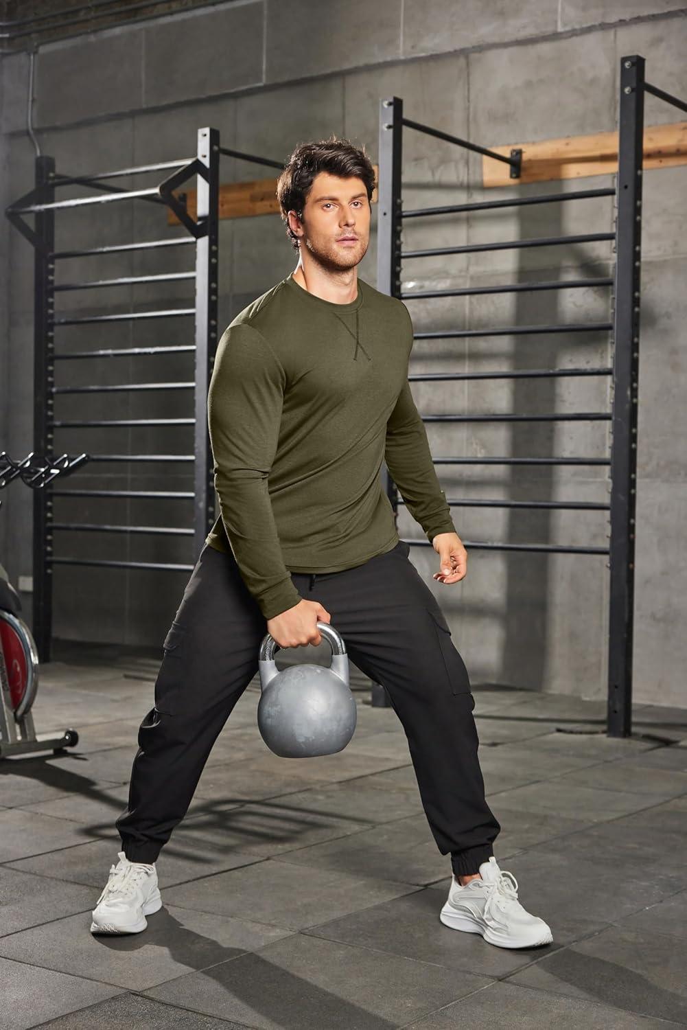 COOFANDY Mens Cotton Hipster Hip Hop Longline Crewneck T Shirts Casual Long Sleeve Tees Curved Hem Gym Shirts(Two Pack- Black + Army Green)