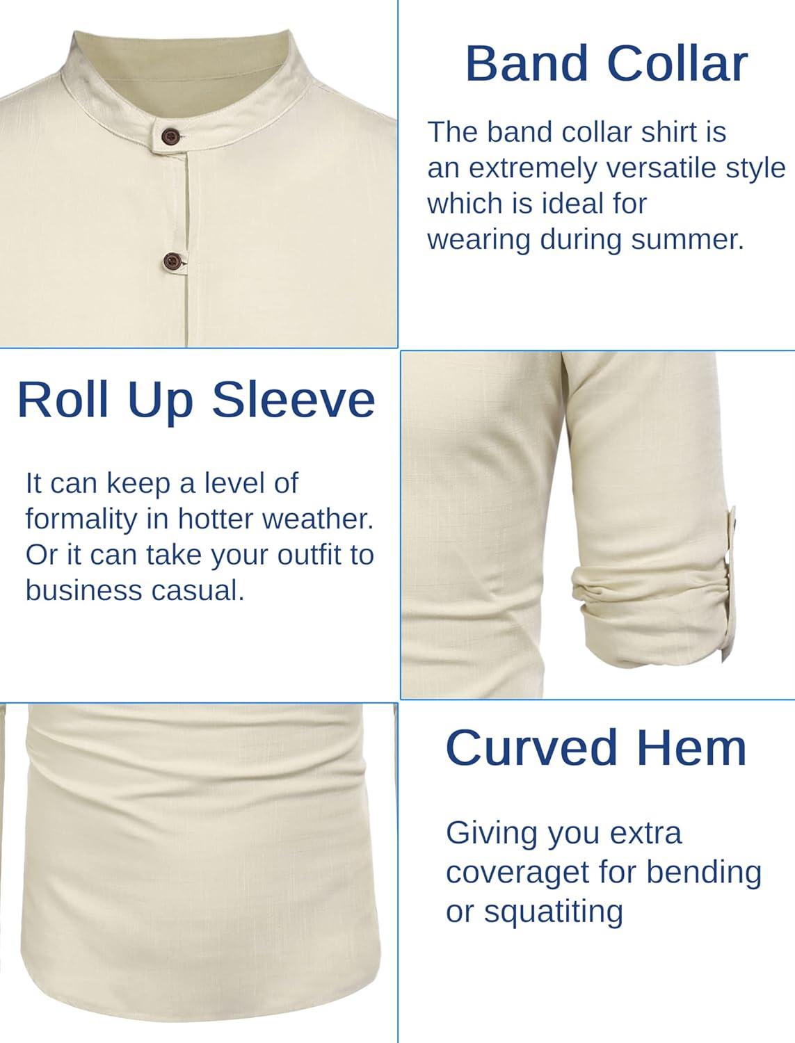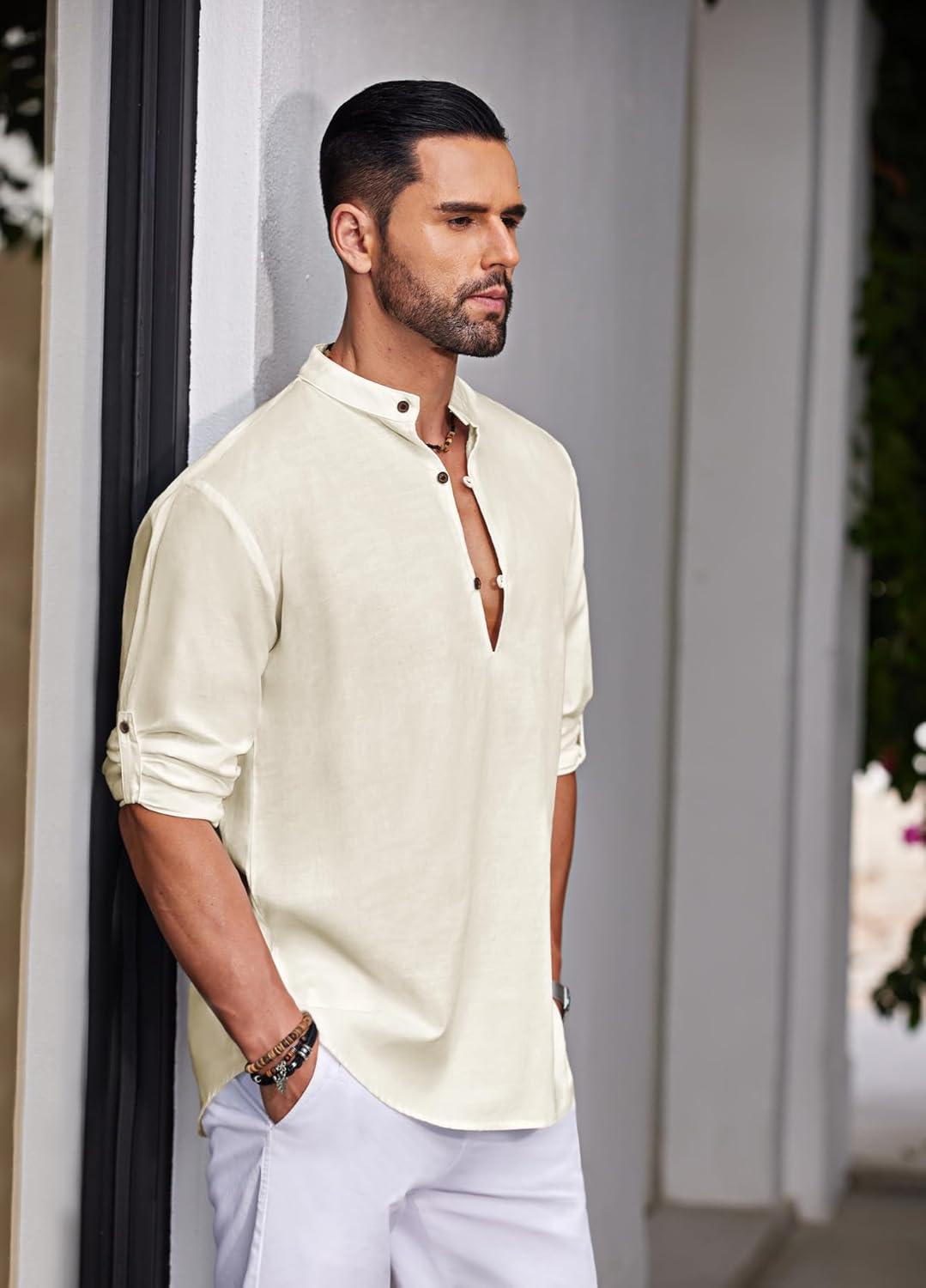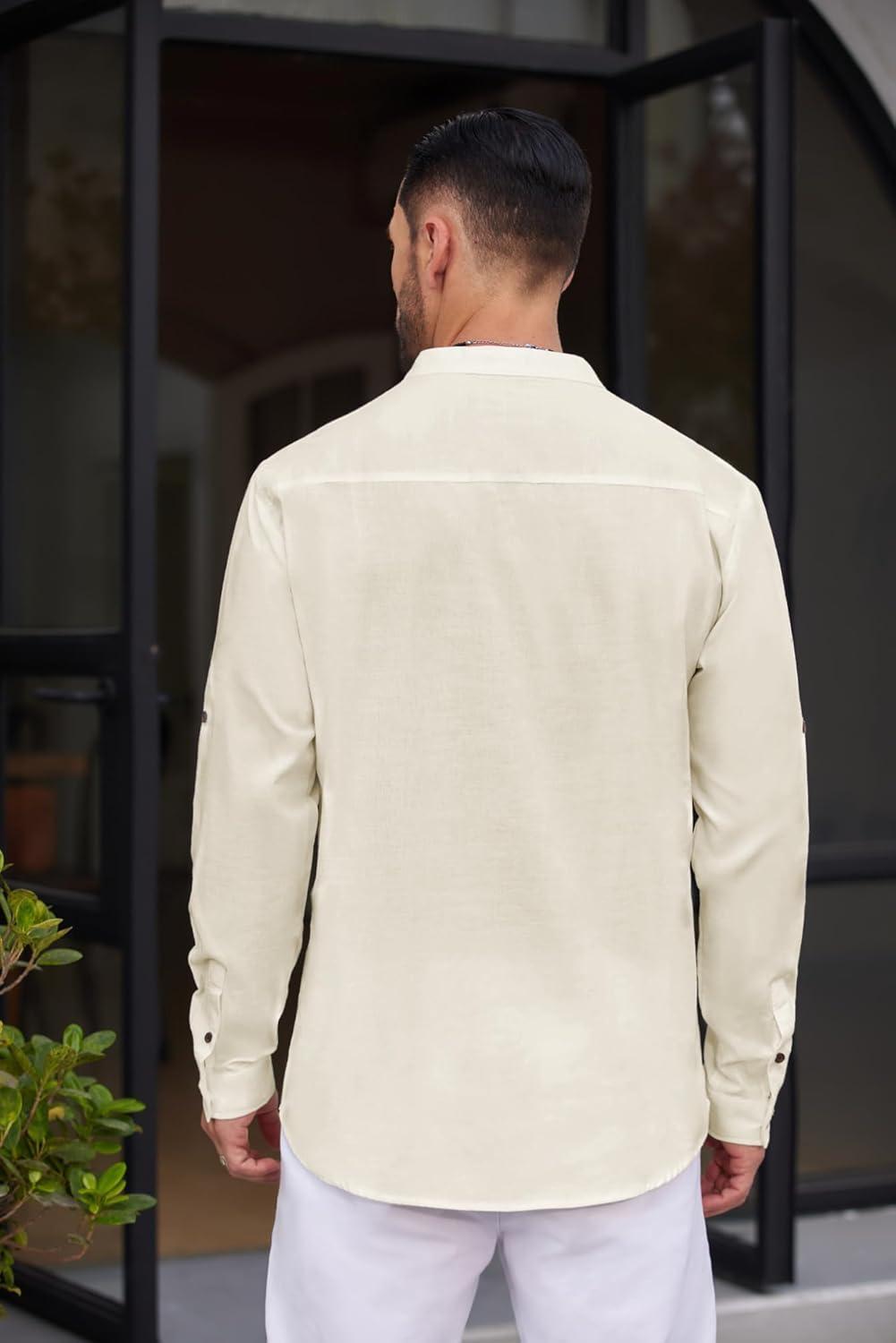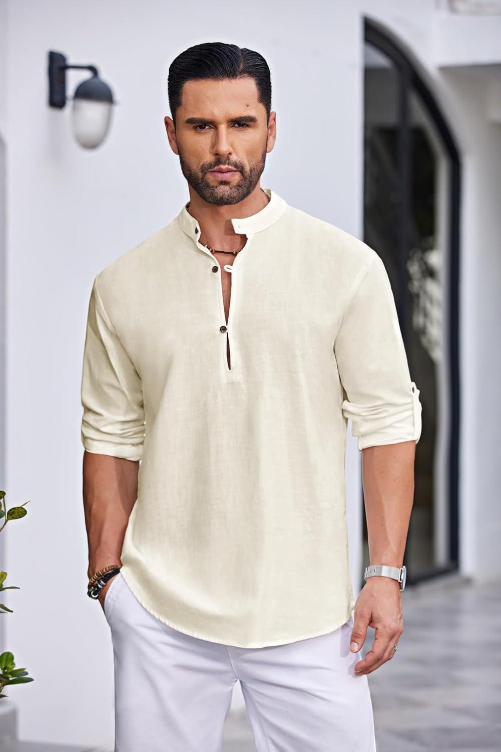 COOFANDY Men's Cotton Linen Henley Shirt Casual Beach Hippie Shirts Long Sleeve T-Shirts(Beige)