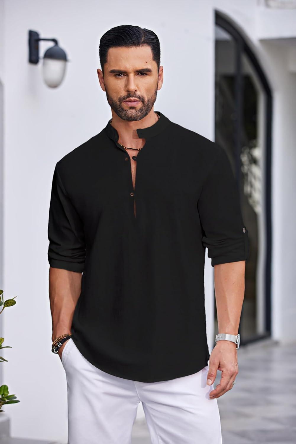 Get the COOFANDY Men’s Cotton Linen Henley Shirt Casual Beach Hippie Shirts Long Sleeve T-Shirts(Black) you’ve been eyeing at a discounted price during our seasonal sale event.