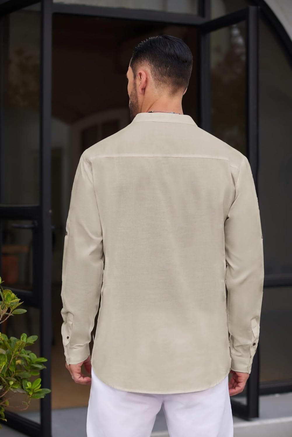 COOFANDY Men’s Cotton Linen Henley Shirt Casual Beach Hippie Shirts Long Sleeve T-Shirts(Beige)