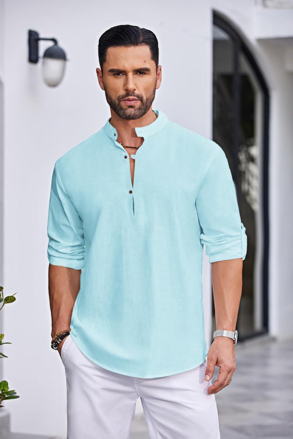 Save big on COOFANDY Men’s Cotton Linen Henley Shirt Casual Beach Hippie Shirts Long Sleeve T-Shirts(Light Blue Henley) and accessories during our BOGO sale. Buy one, get one 50% off!