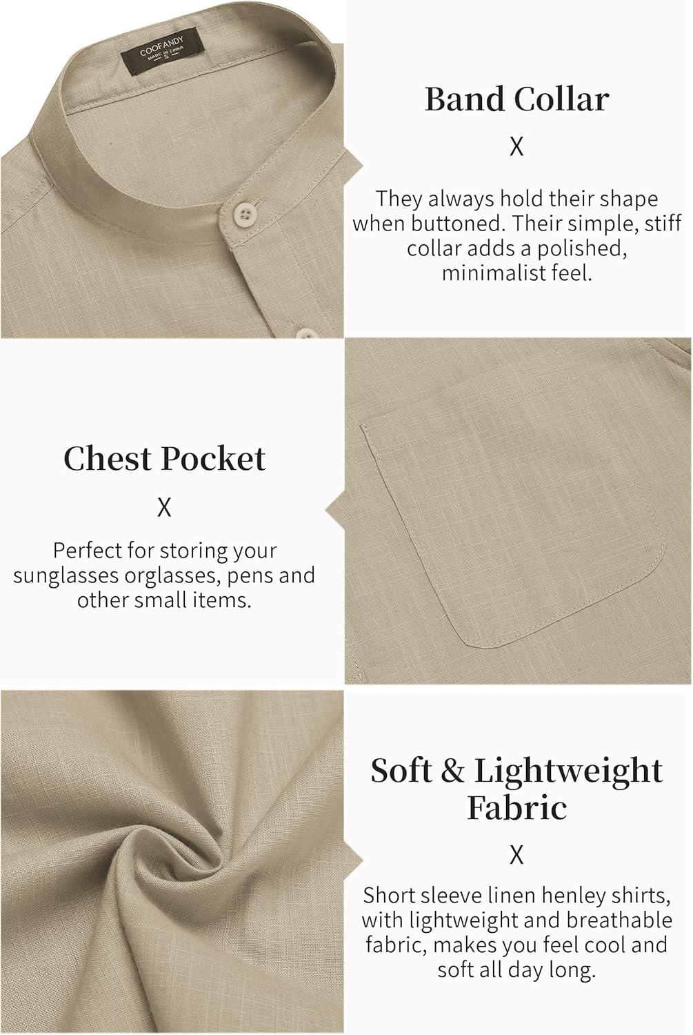 imageCOOFANDY Mens Cotton Linen Henley Shirt Short Sleeve Hippie Casual Beach TShirts with PocketKhaki