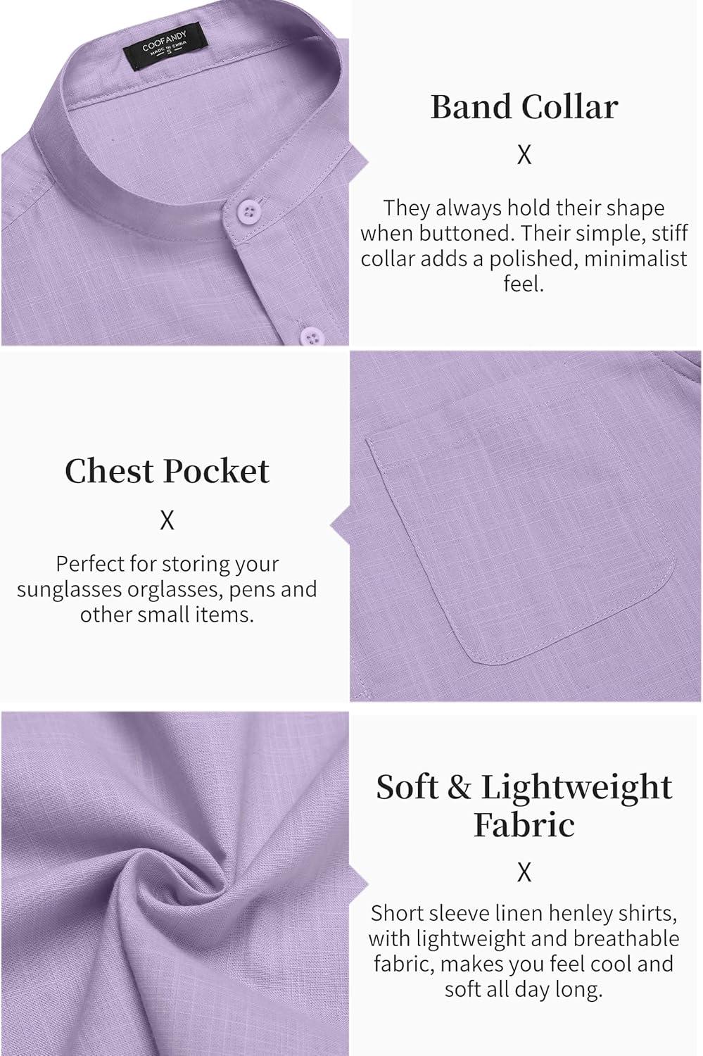 imageCOOFANDY Mens Cotton Linen Henley Shirt Short Sleeve Hippie Casual Beach TShirts with PocketLight Purple