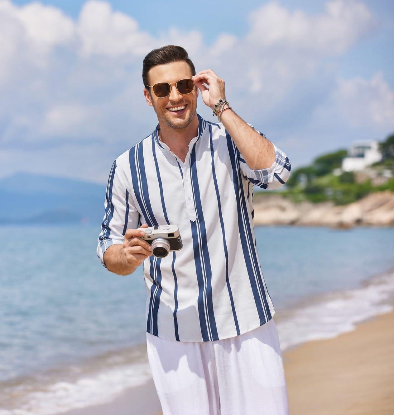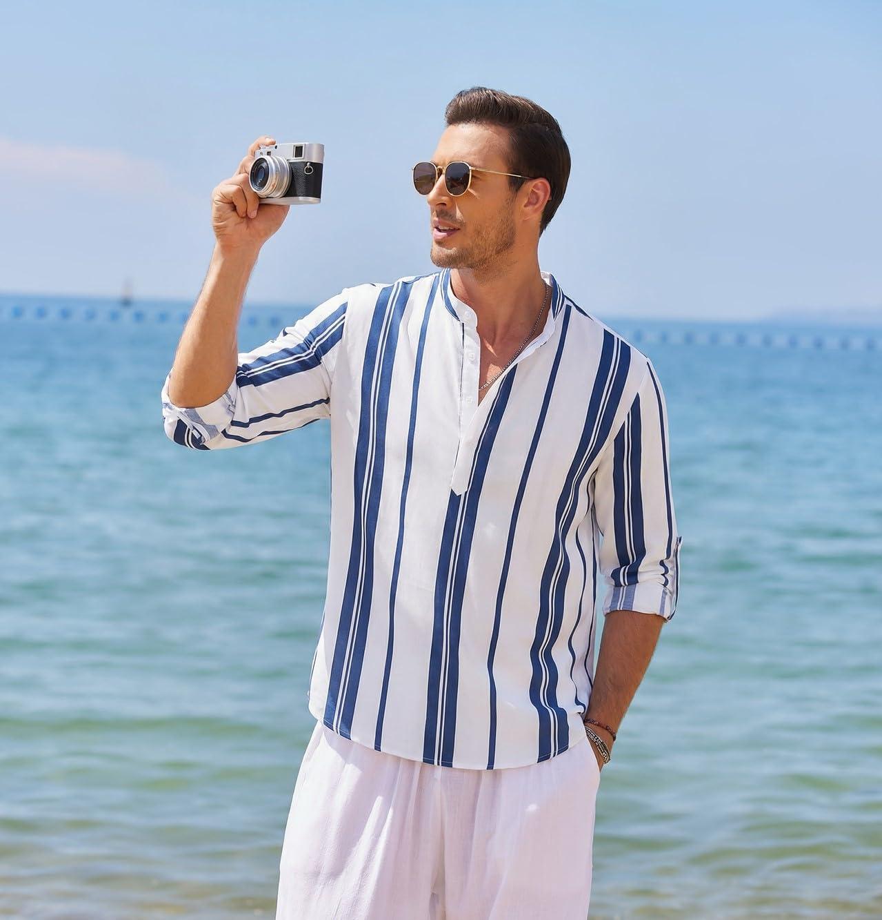 Be the first to review “COOFANDY Men’s Cotton Linen Henley T-Shirt Long Sleeve Hippie Casual Beach T-Shirts(Dark Blue Stripes)”