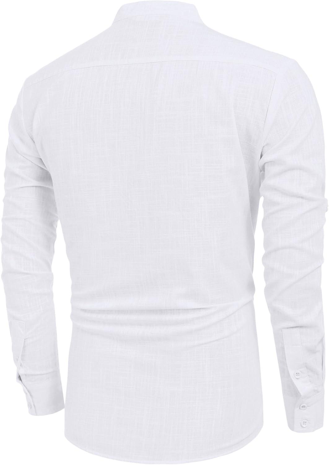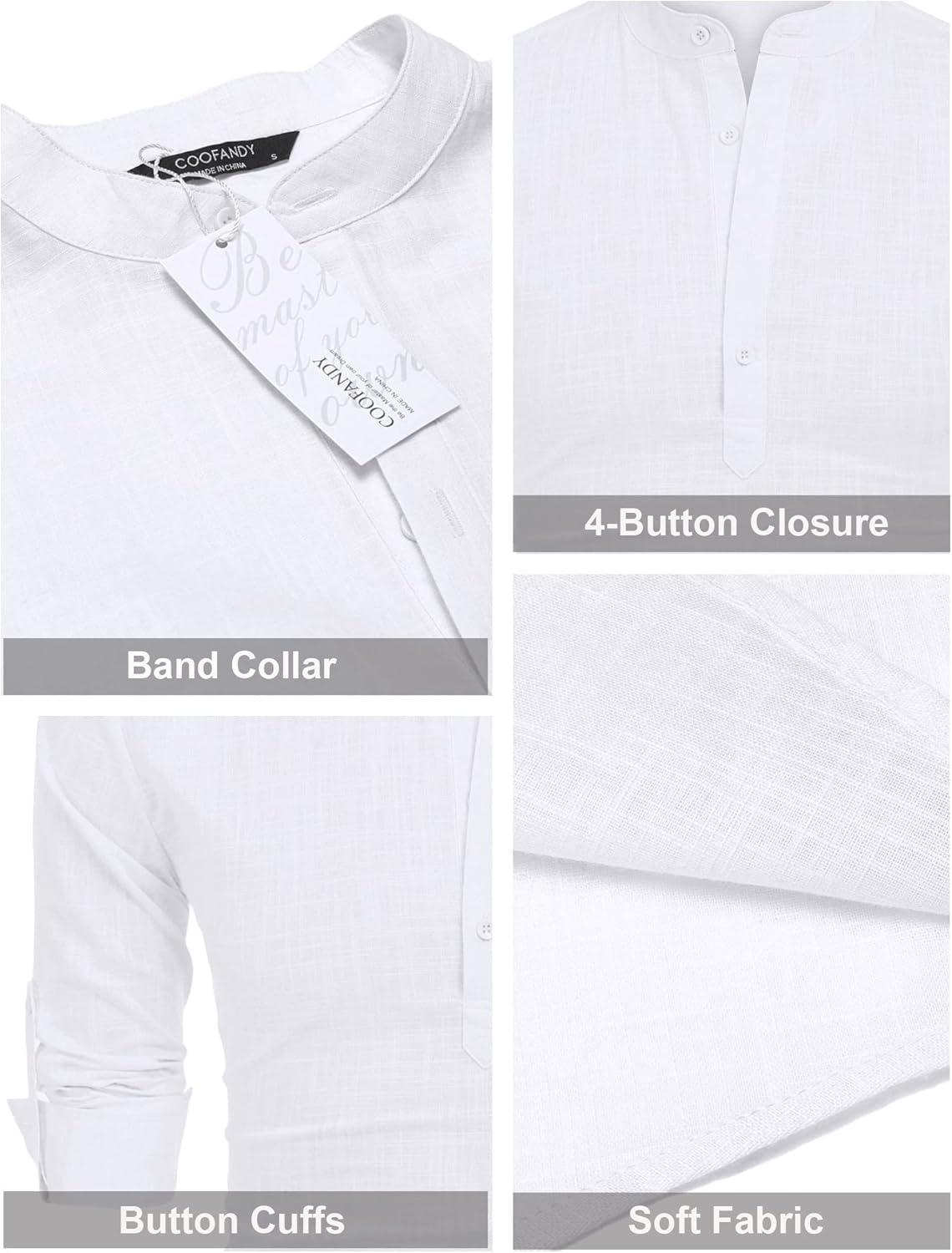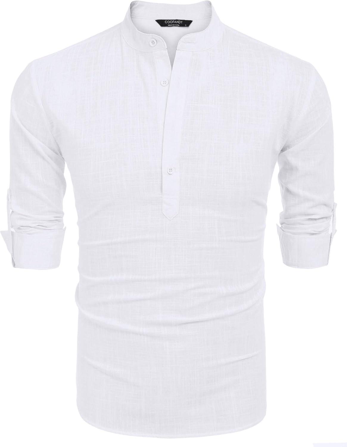 COOFANDY Men's Cotton Linen Henley T-Shirts Long Sleeve Hippie Casual Beach T-Shirts(01-white)
