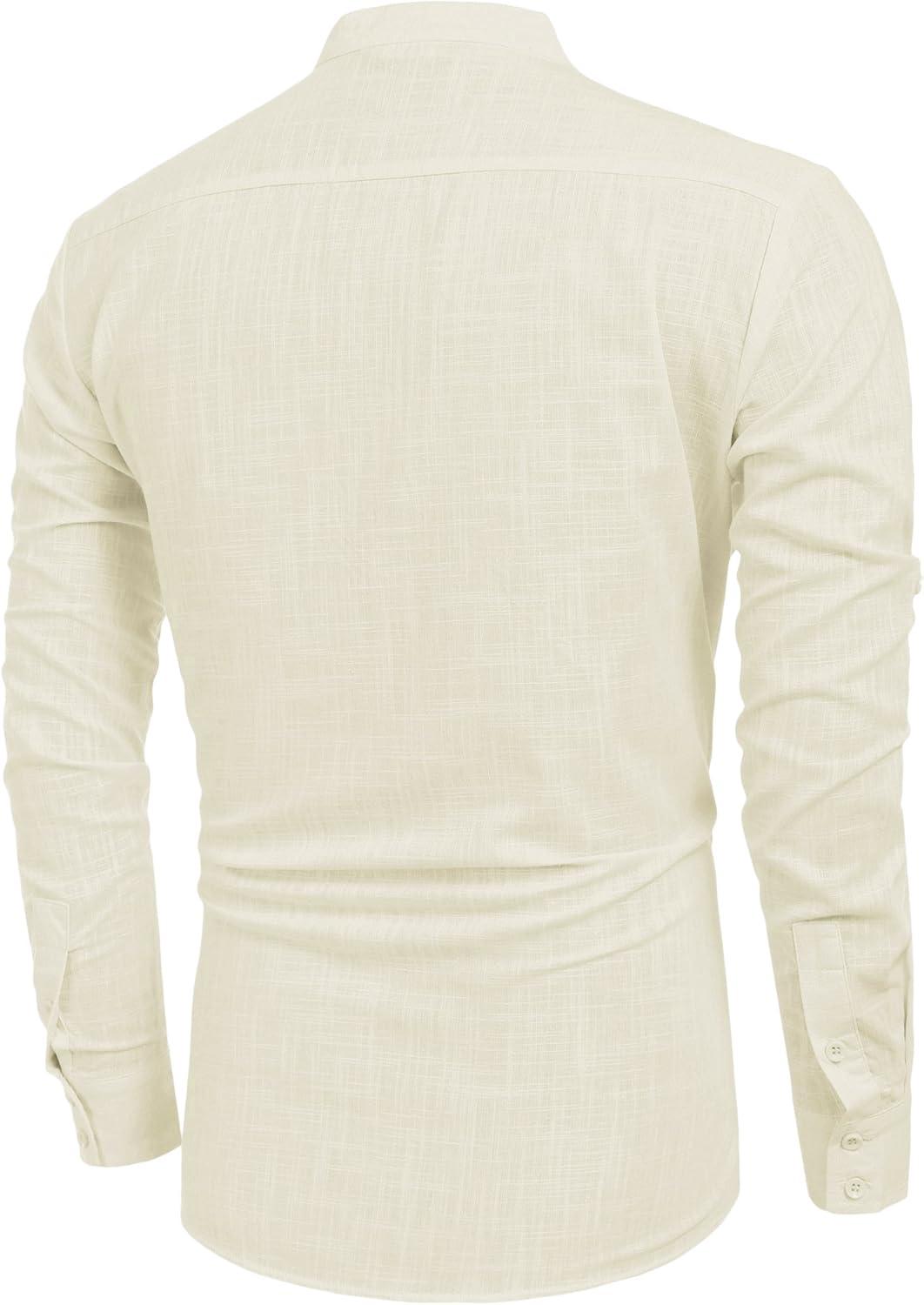 COOFANDY Men’s Cotton Linen Henley T-Shirts Long Sleeve Hippie Casual Beach T-Shirts(01-white)