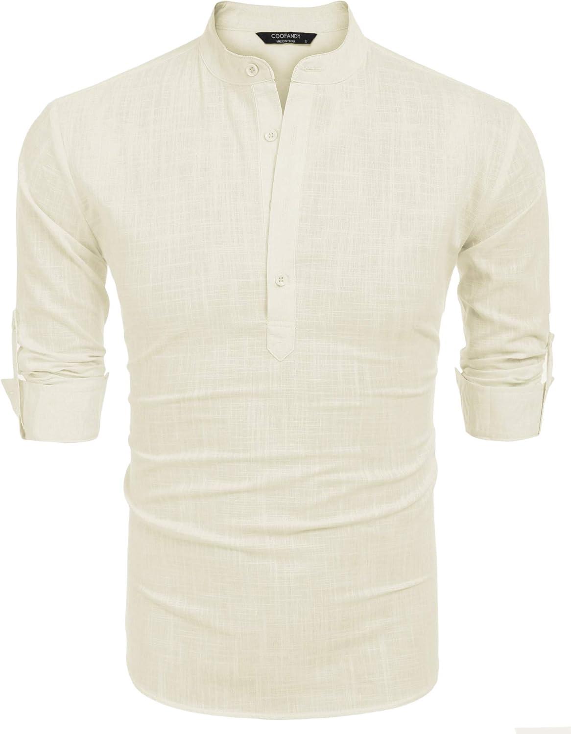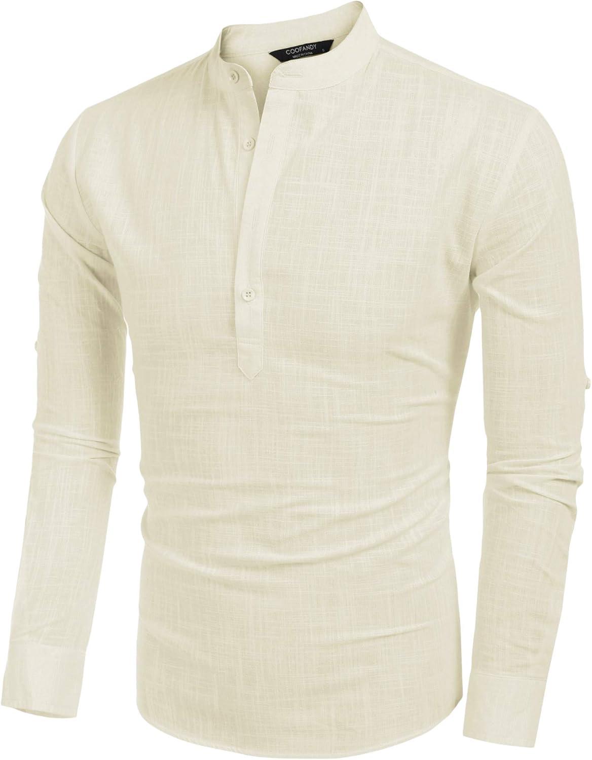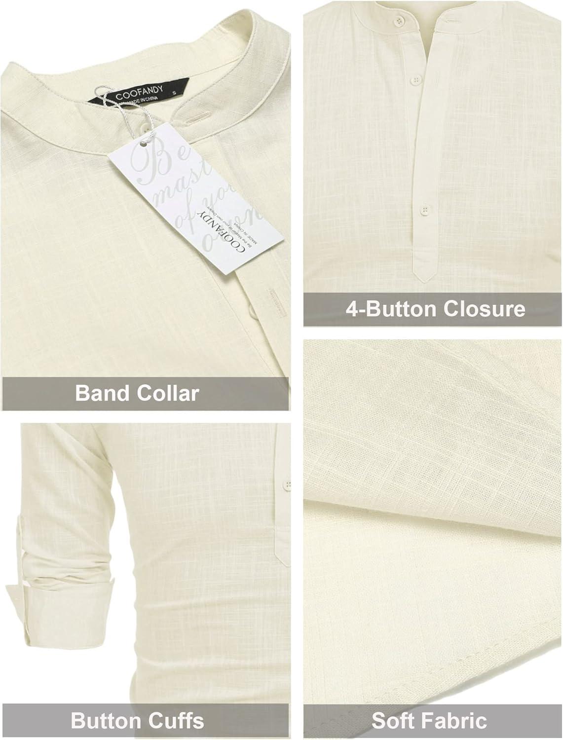 COOFANDY Men's Cotton Linen Henley T-Shirts Long Sleeve Hippie Casual Beach T-Shirts(Beige)