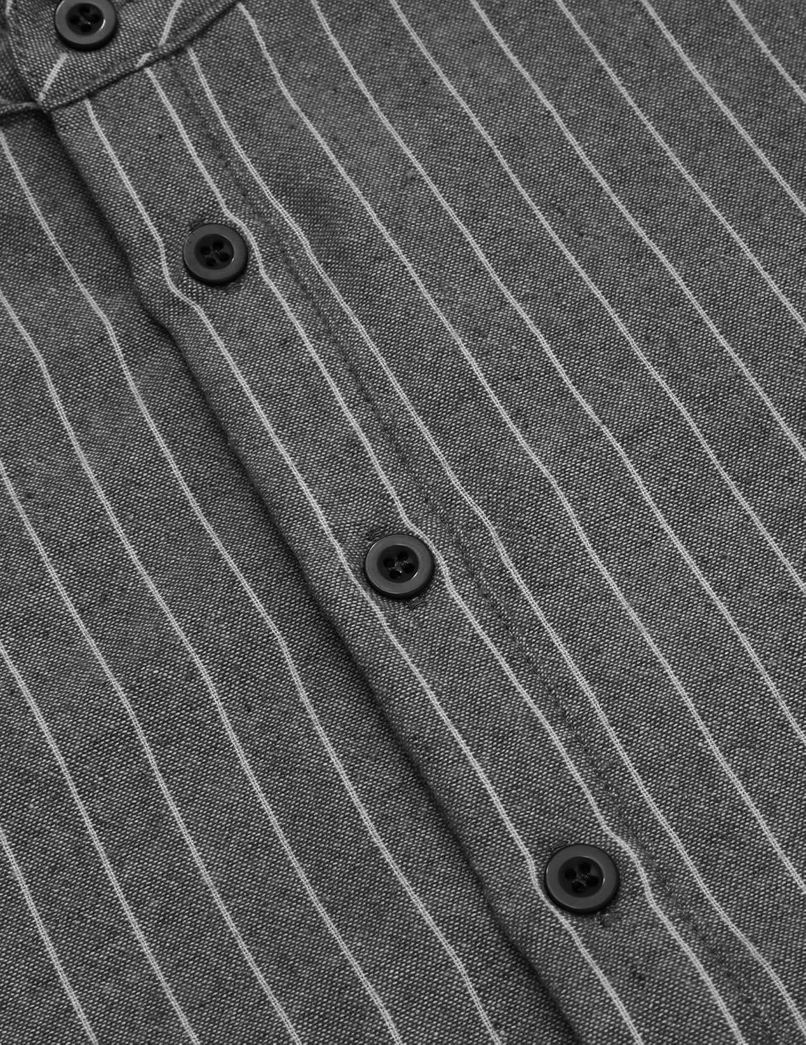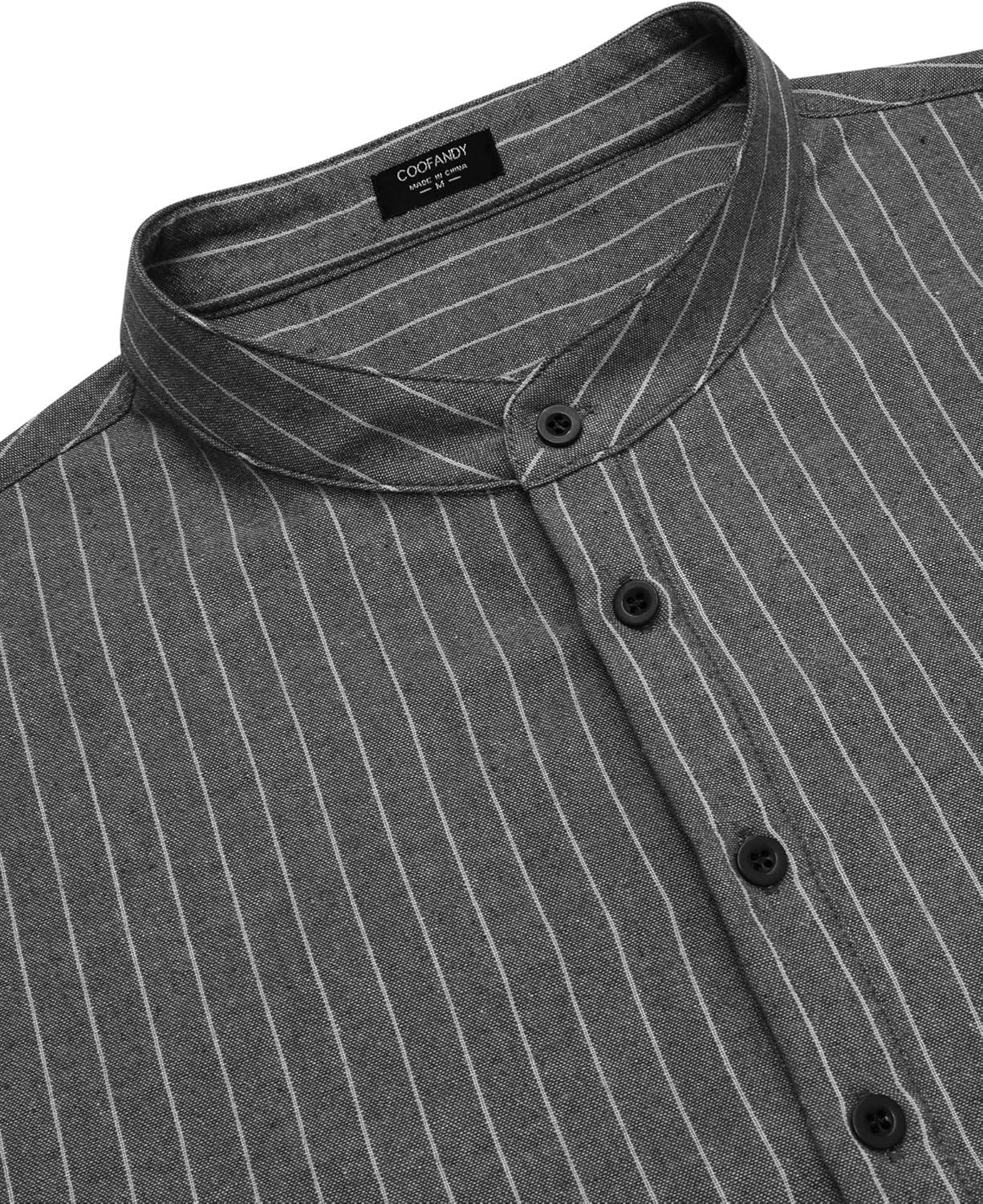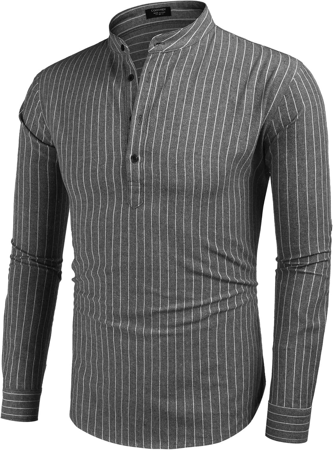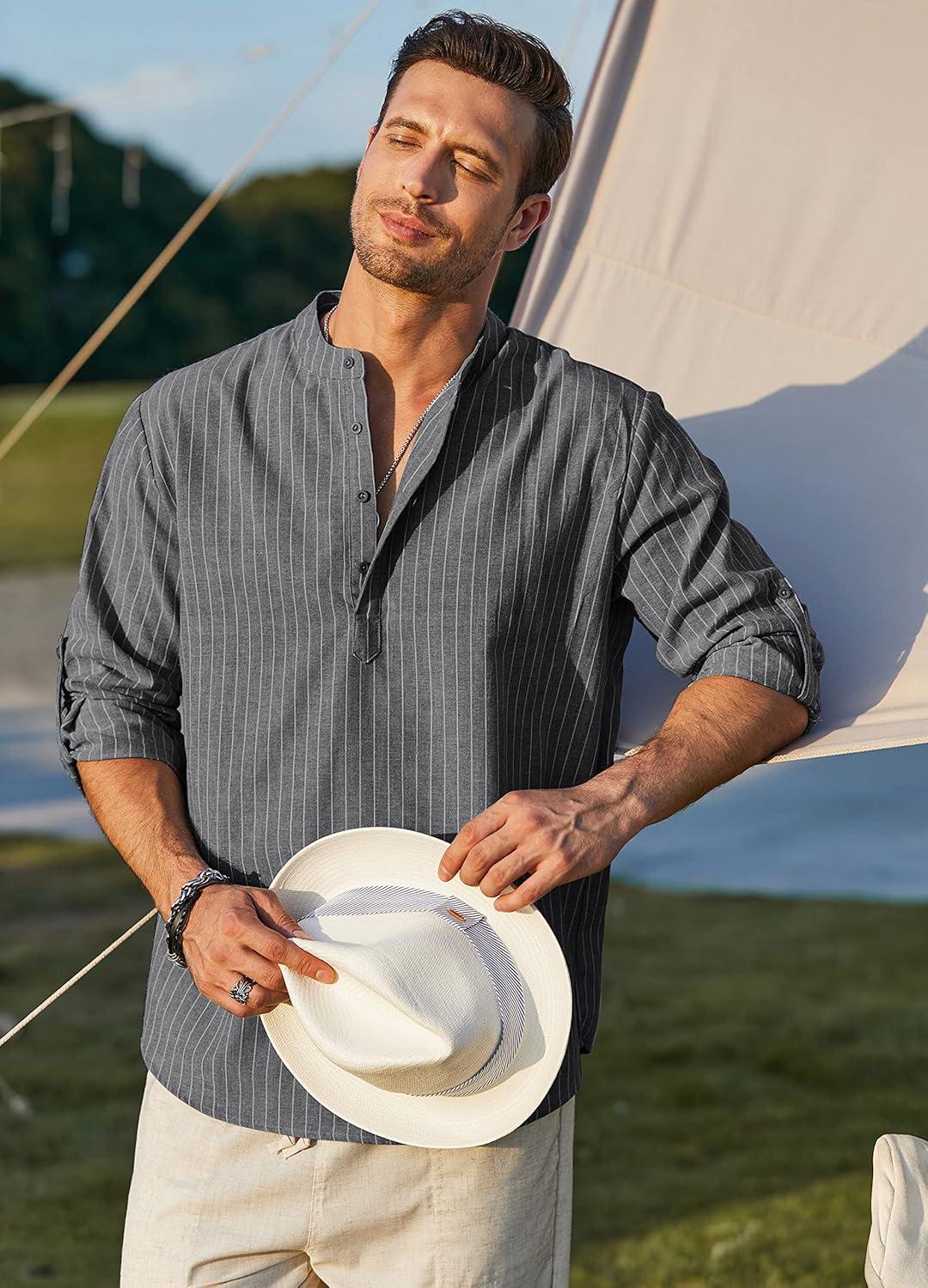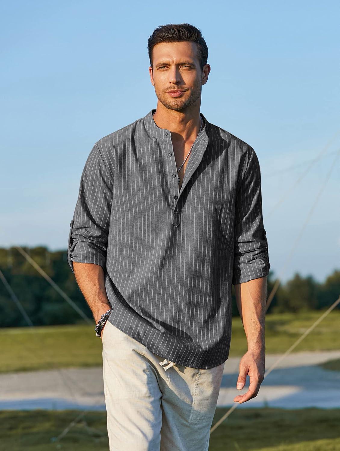 COOFANDY Men’s Cotton Linen Henley T-Shirts Long Sleeve Hippie Casual Beach T-Shirts(Black Striped)