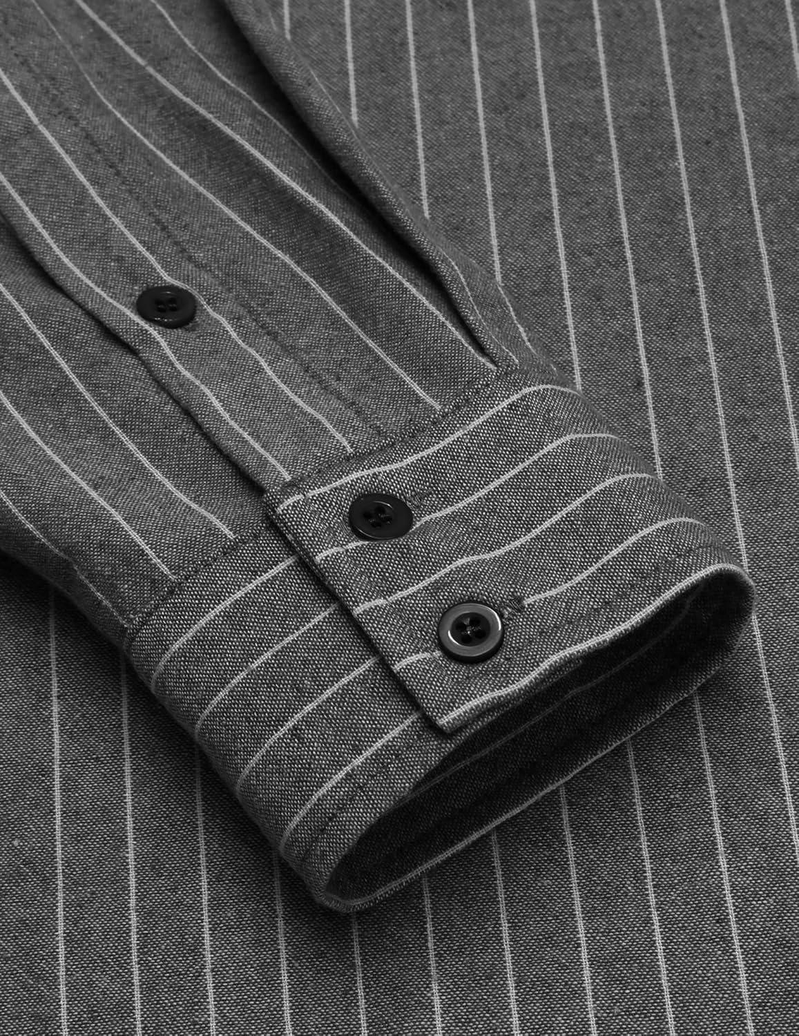 COOFANDY Men's Cotton Linen Henley T-Shirts Long Sleeve Hippie Casual Beach T-Shirts(Black Striped)