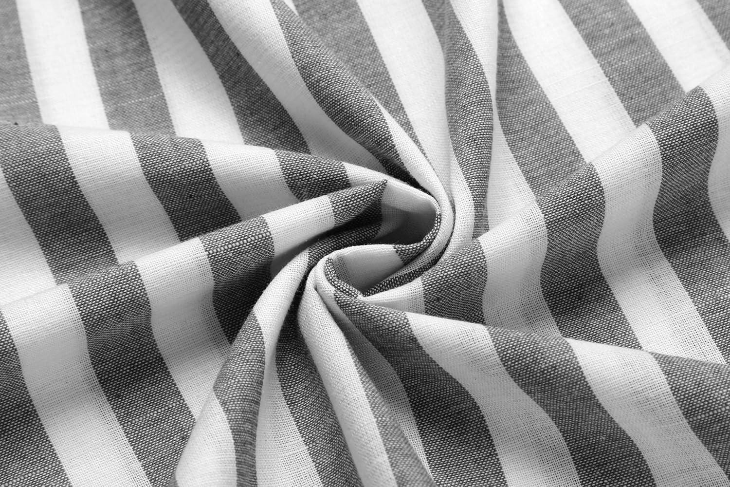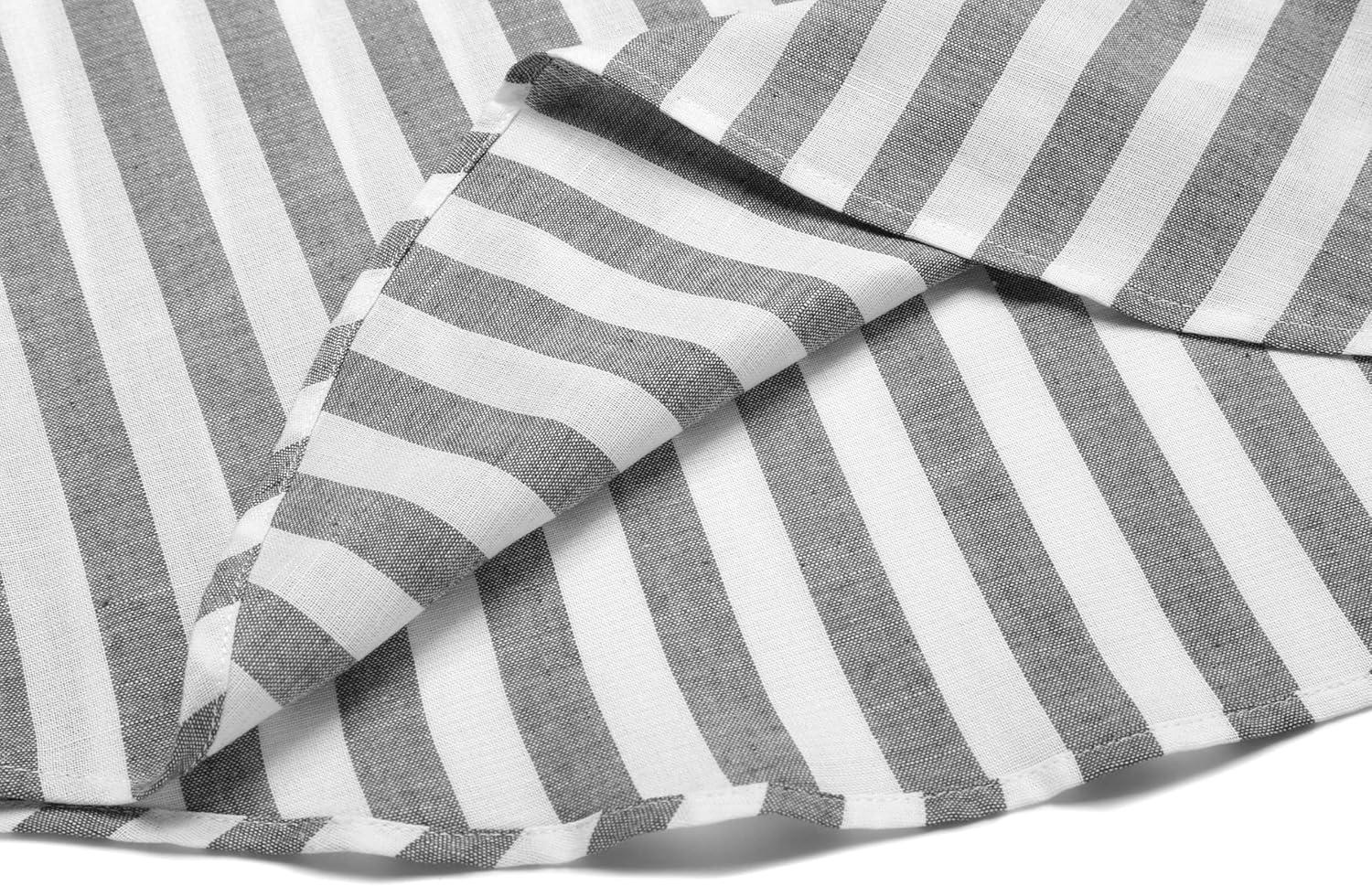 COOFANDY Men's Cotton Linen Henley T-Shirts Long Sleeve Hippie Casual Beach T-Shirts(Black White Striped)