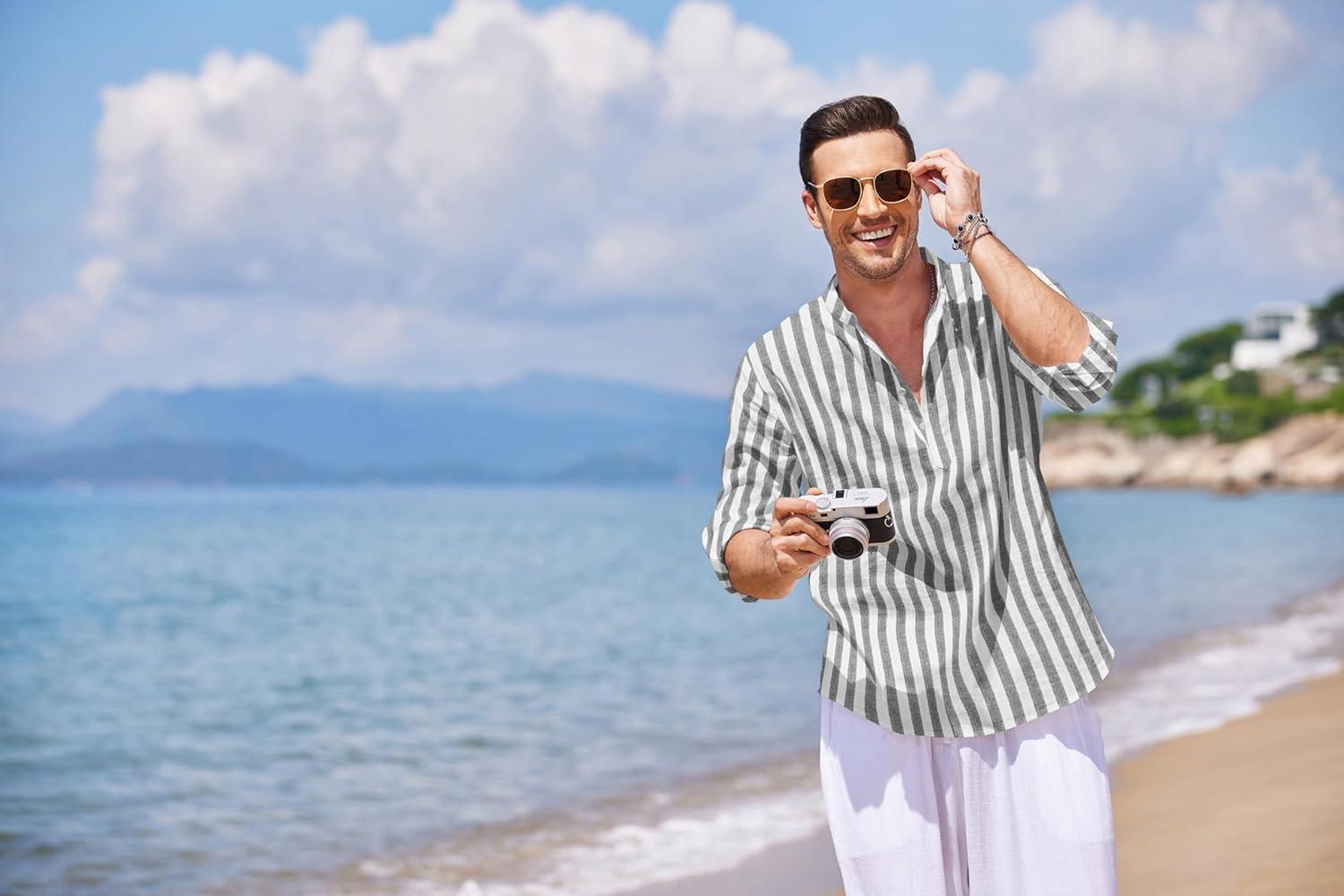 Be the first to review “COOFANDY Men’s Cotton Linen Henley T-Shirts Long Sleeve Hippie Casual Beach T-Shirts(Black White Striped)”
