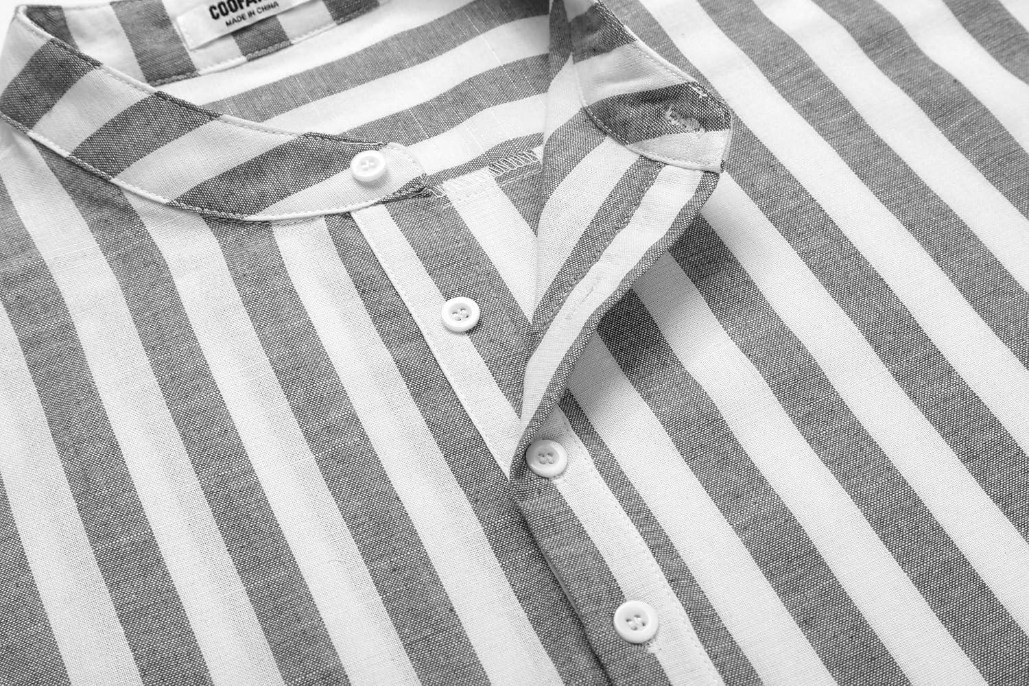 COOFANDY Men’s Cotton Linen Henley T-Shirts Long Sleeve Hippie Casual Beach T-Shirts(Black White Striped)