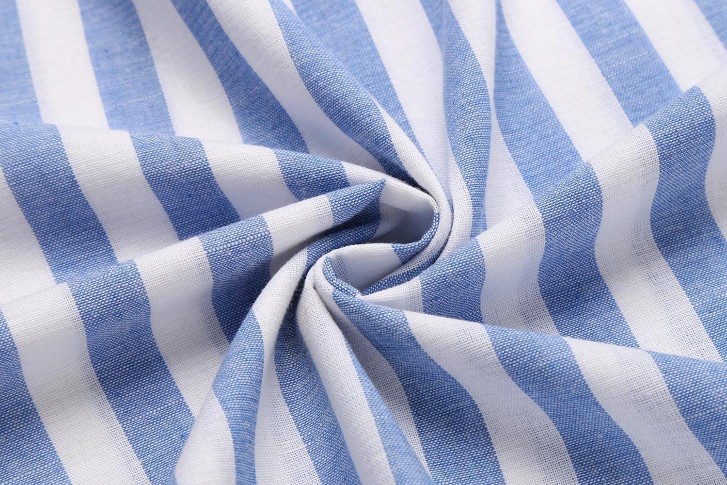 COOFANDY Men’s Cotton Linen Henley T-Shirts Long Sleeve Hippie Casual Beach T-Shirts(Blue White Striped)