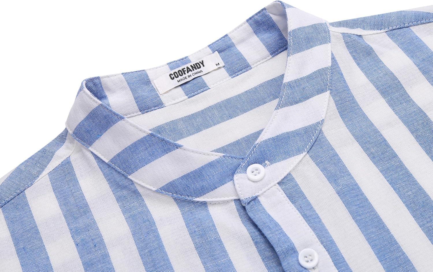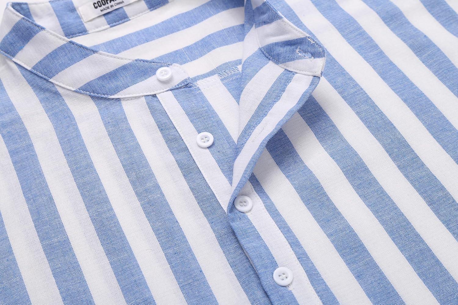 COOFANDY Men’s Cotton Linen Henley T-Shirts Long Sleeve Hippie Casual Beach T-Shirts(Blue Striped)