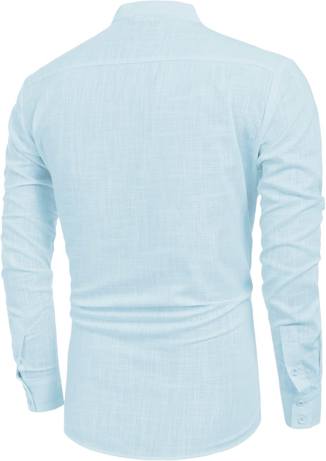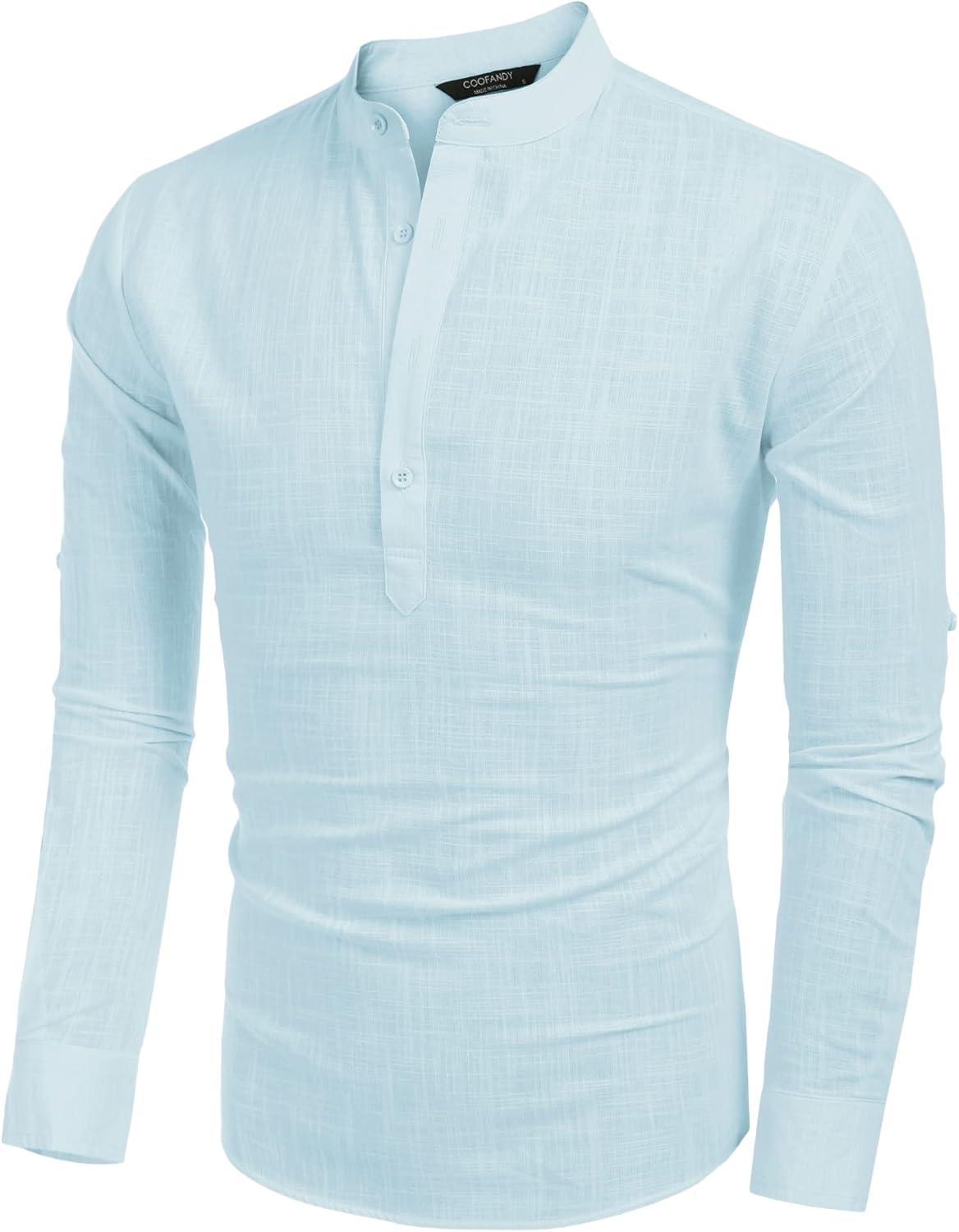 COOFANDY Men's Cotton Linen Henley T-Shirts Long Sleeve Hippie Casual Beach T-Shirts(Blue)