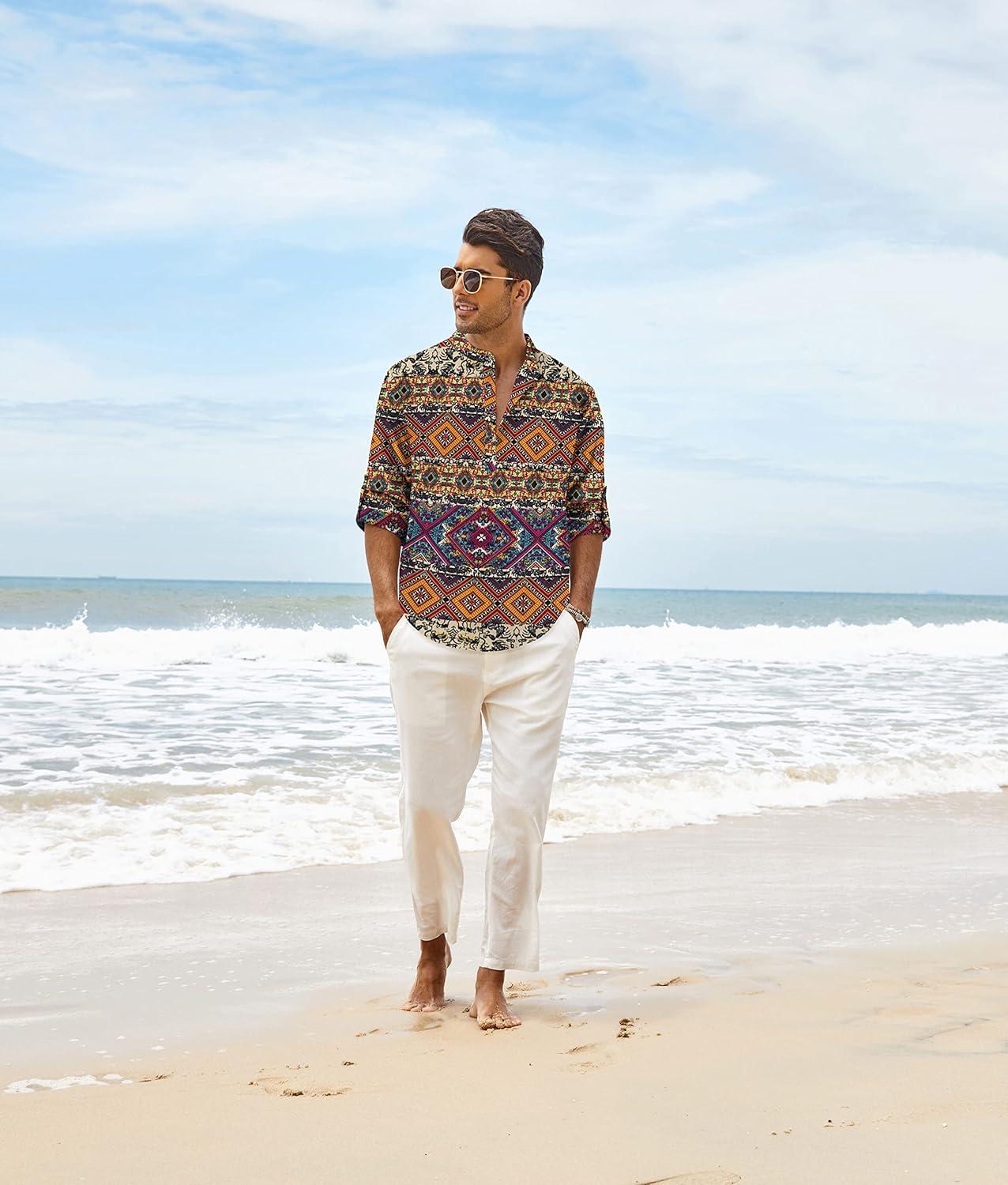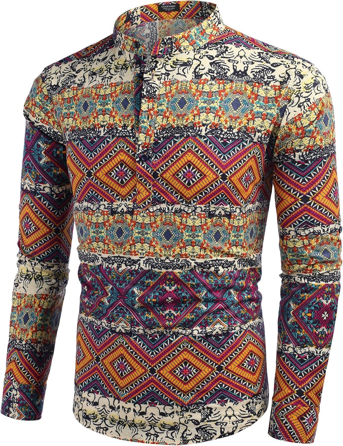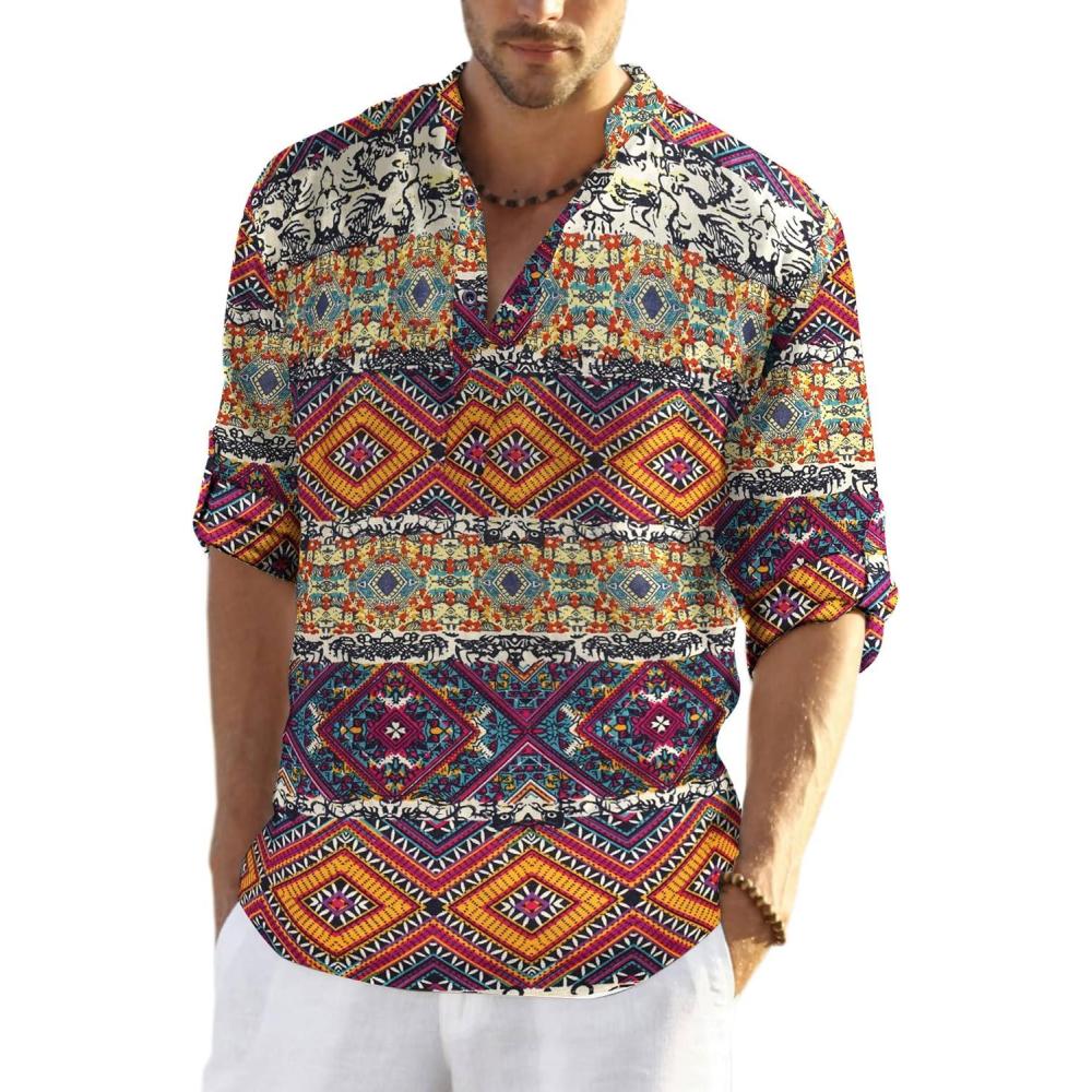 Get your hands on our exclusive COOFANDY Men’s Cotton Linen Henley T-Shirts Long Sleeve Hippie Casual Beach T-Shirts(Geometric) collection, now at a discounted price.