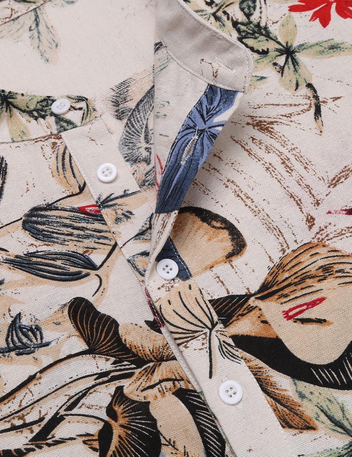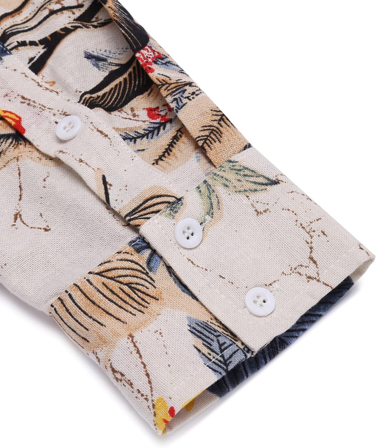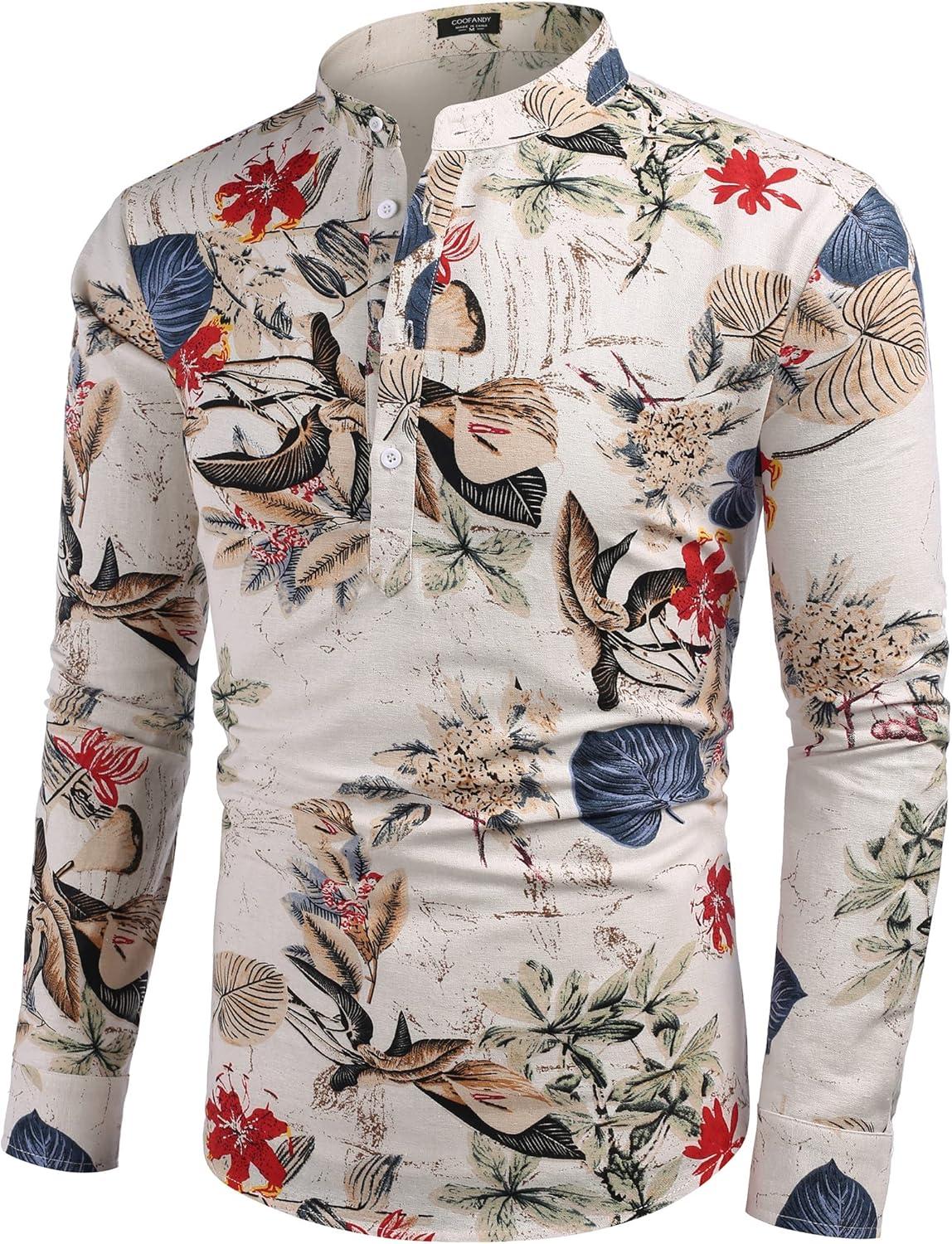imageCOOFANDY Mens Cotton Linen Henley TShirts Long Sleeve Hippie Casual Beach TShirtsKhaki Floral