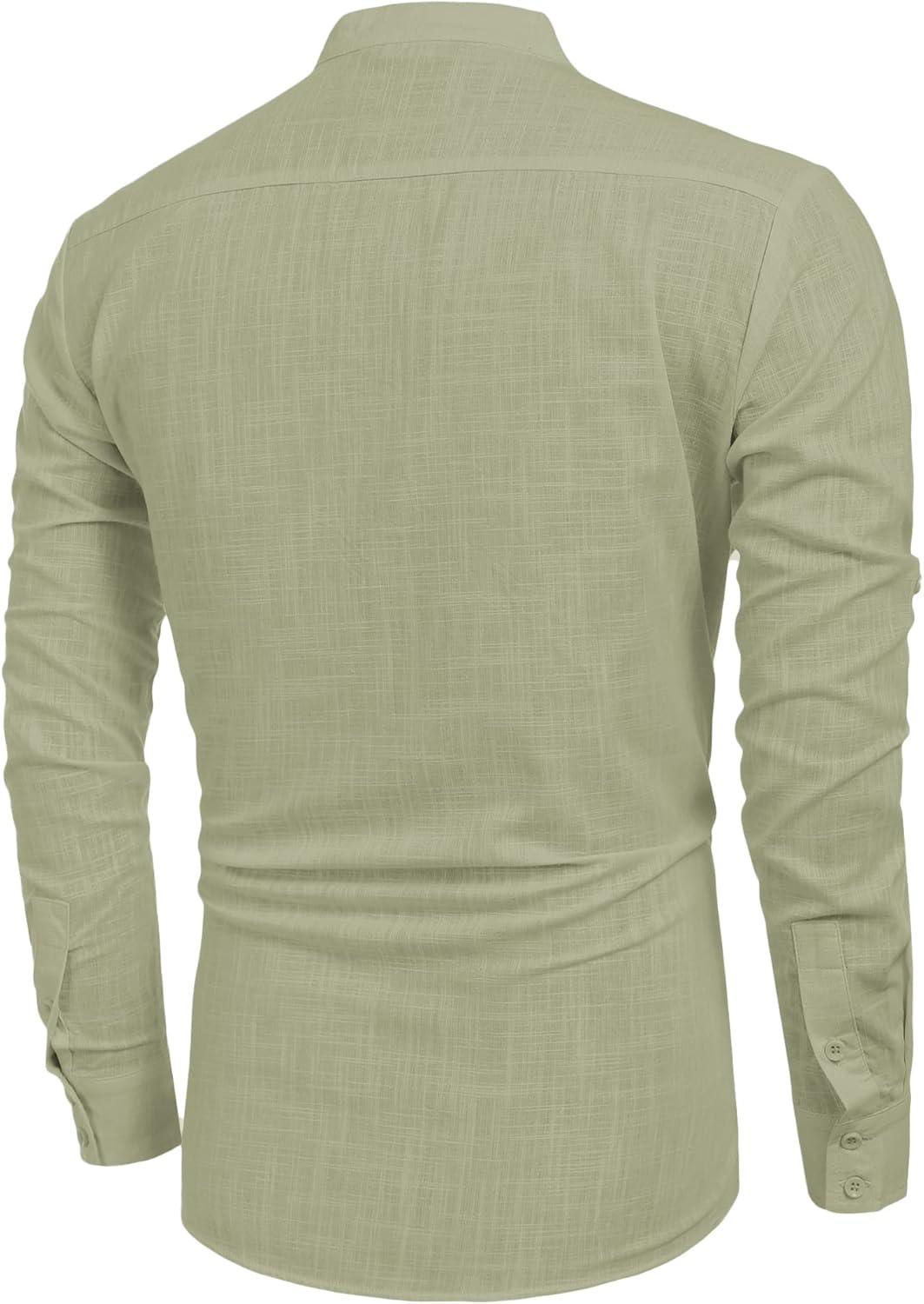 COOFANDY Men’s Cotton Linen Henley T-Shirts Long Sleeve Hippie Casual Beach T-Shirts(Green)