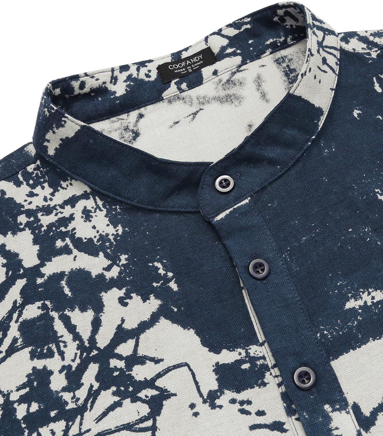 COOFANDY Men's Cotton Linen Henley T-Shirts Long Sleeve Hippie Casual Beach T-Shirts(Navy Tie-dye)