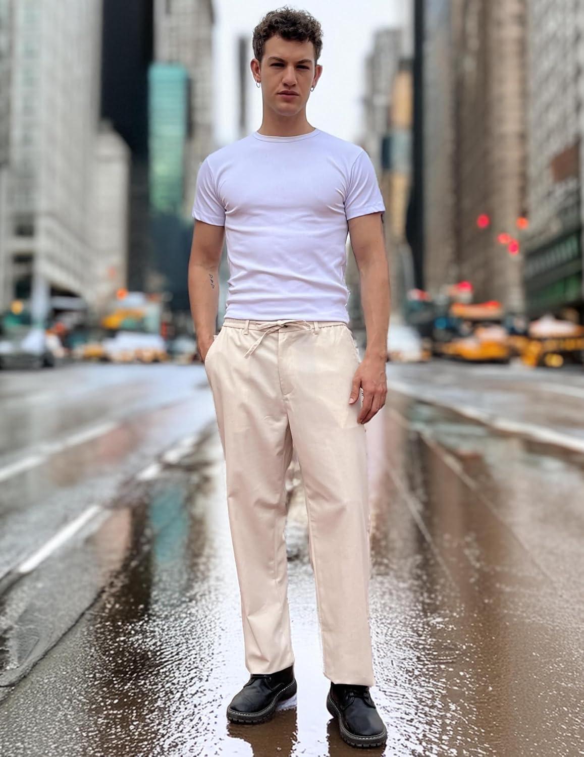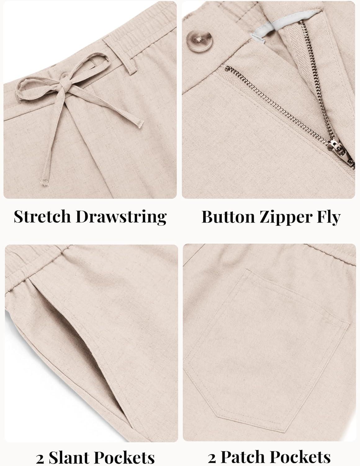 COOFANDY Mens Cotton Linen Pants Casual Drawstring Summer Beach Pants Lightweight Linen Dress Trousers(Light Khaki)
