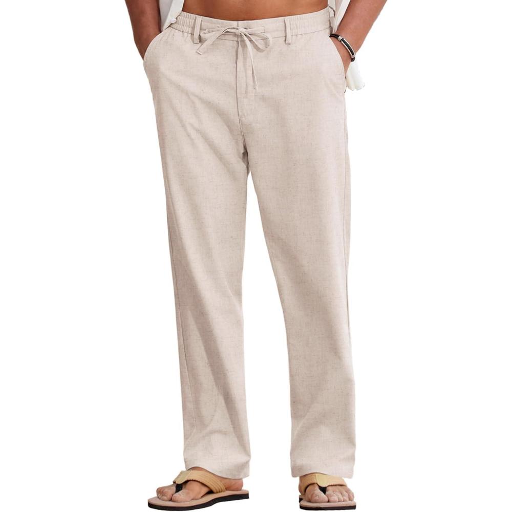 COOFANDY Mens Cotton Linen Pants Casual Drawstring Summer Beach Pants Lightweight Linen Dress Trousers(Linen Khaki)