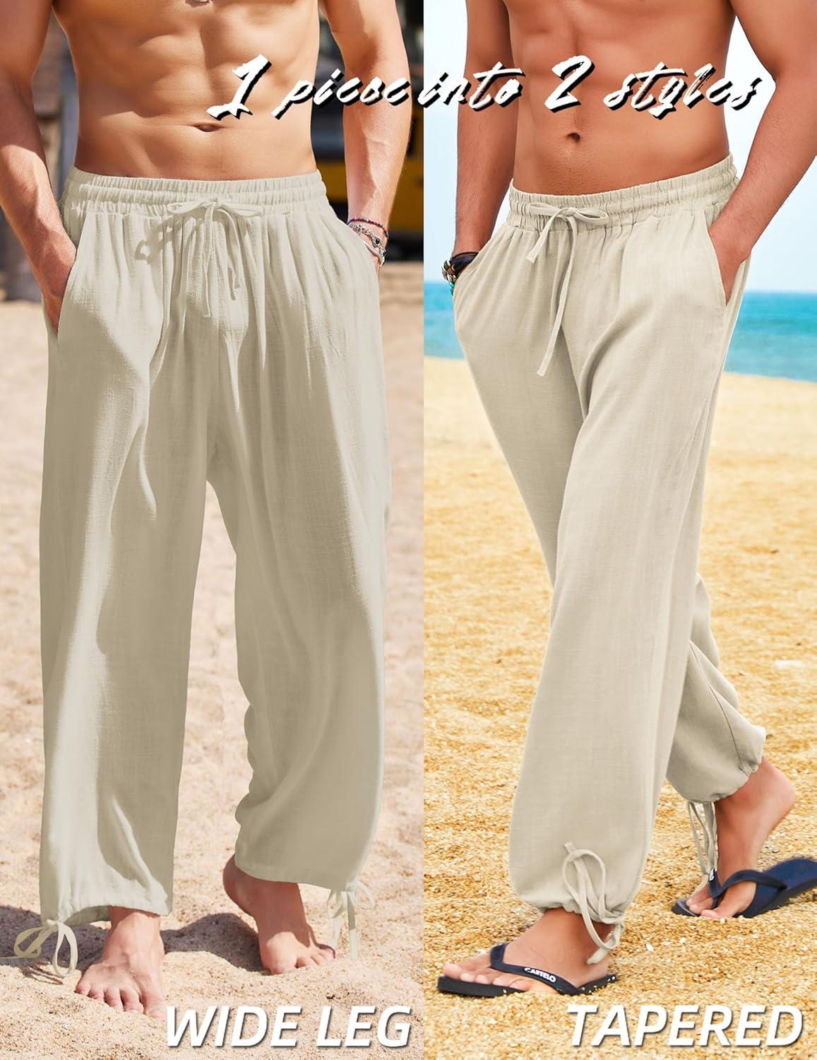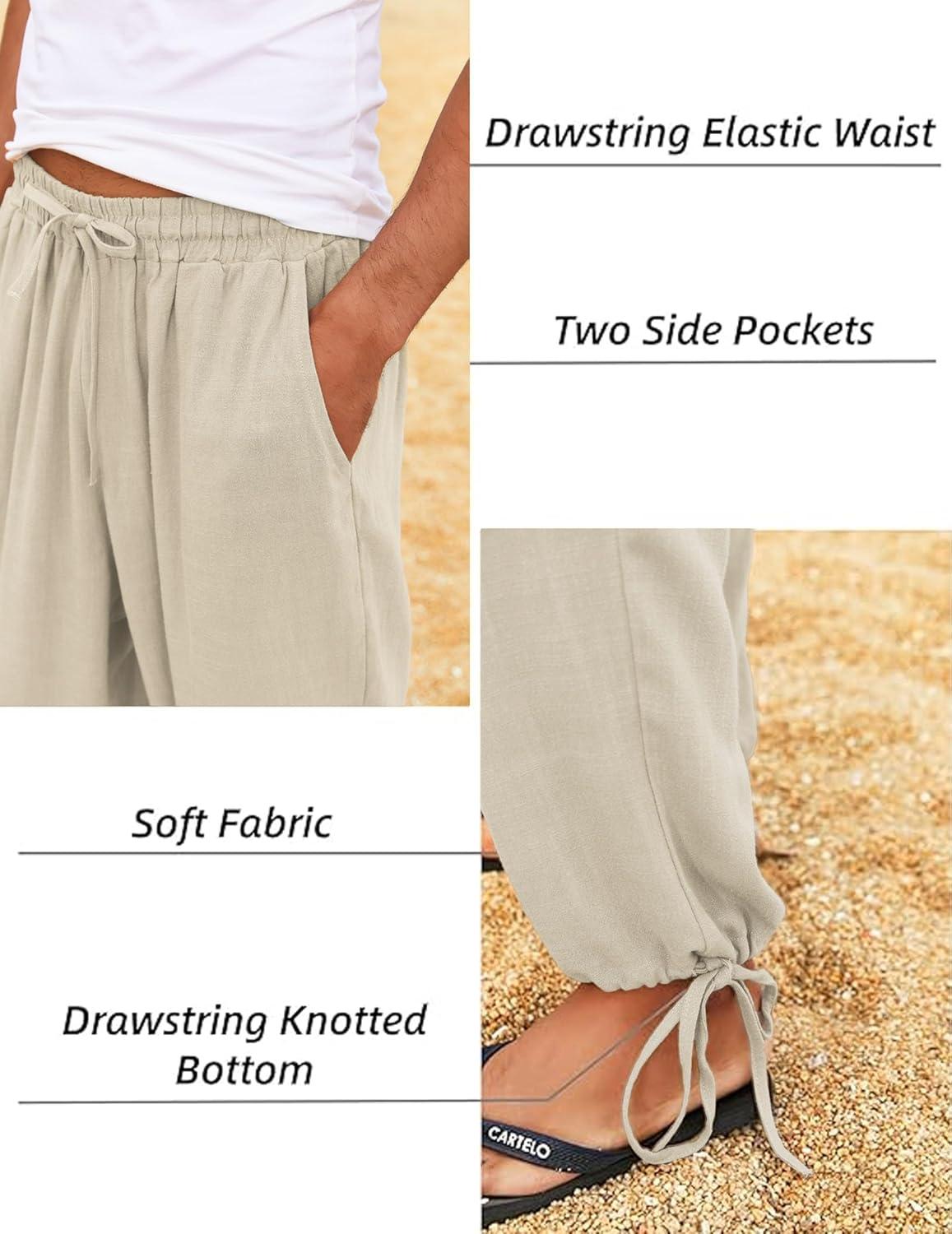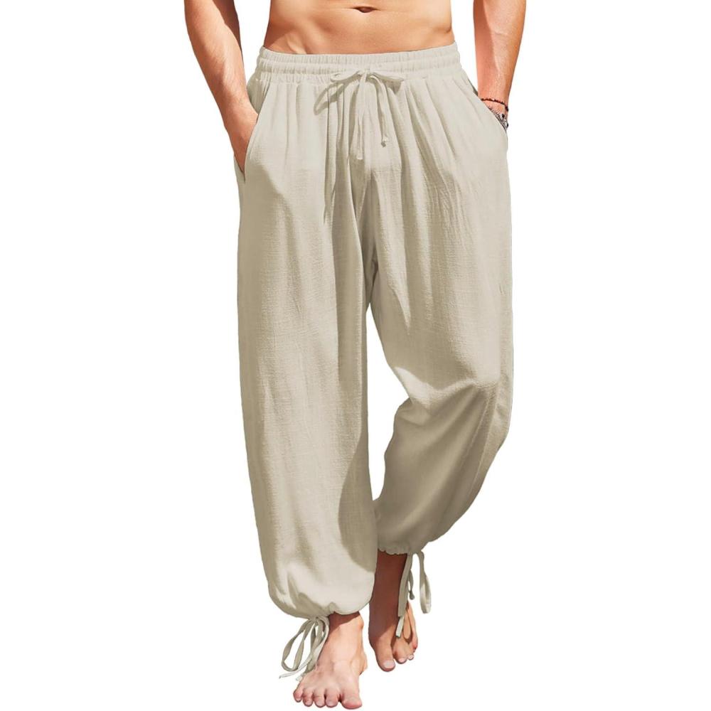 COOFANDY Men’s Cotton Linen Pants Casual Harem Pants Elastic Waist Beach Boho Yoga Trousers(Khaki)