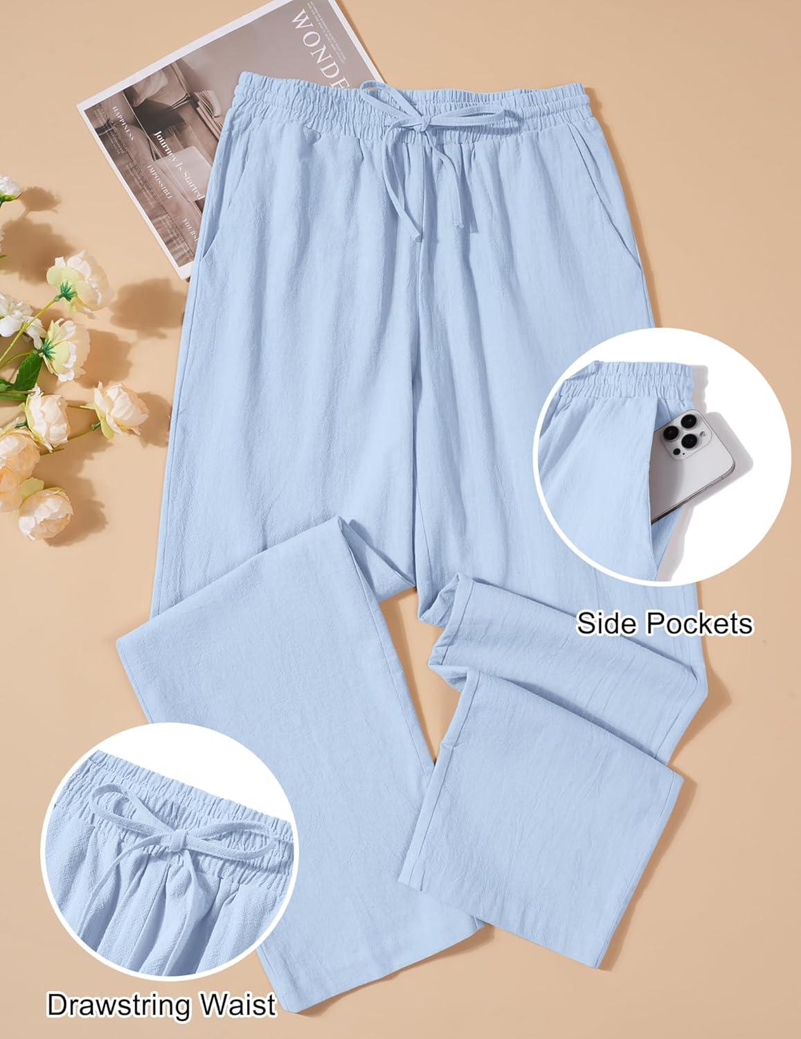 COOFANDY Men's Cotton Linen Pants Lightweight Casual Linen Dress Pants Drawstring Summer Beach Trousers(Light Blue)