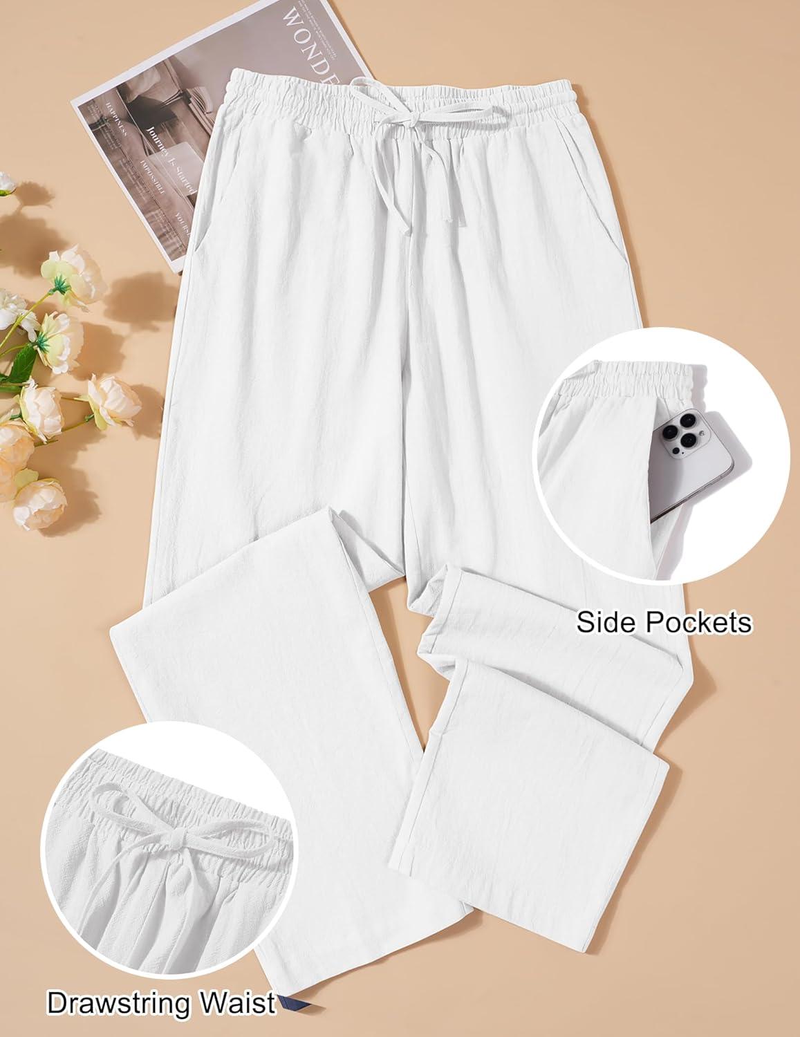 COOFANDY Men's Cotton Linen Pants Lightweight Casual Linen Dress Pants Drawstring Summer Beach Trousers(White)