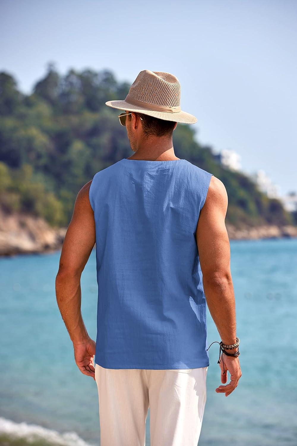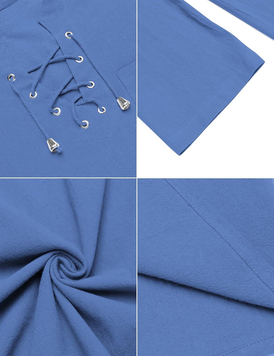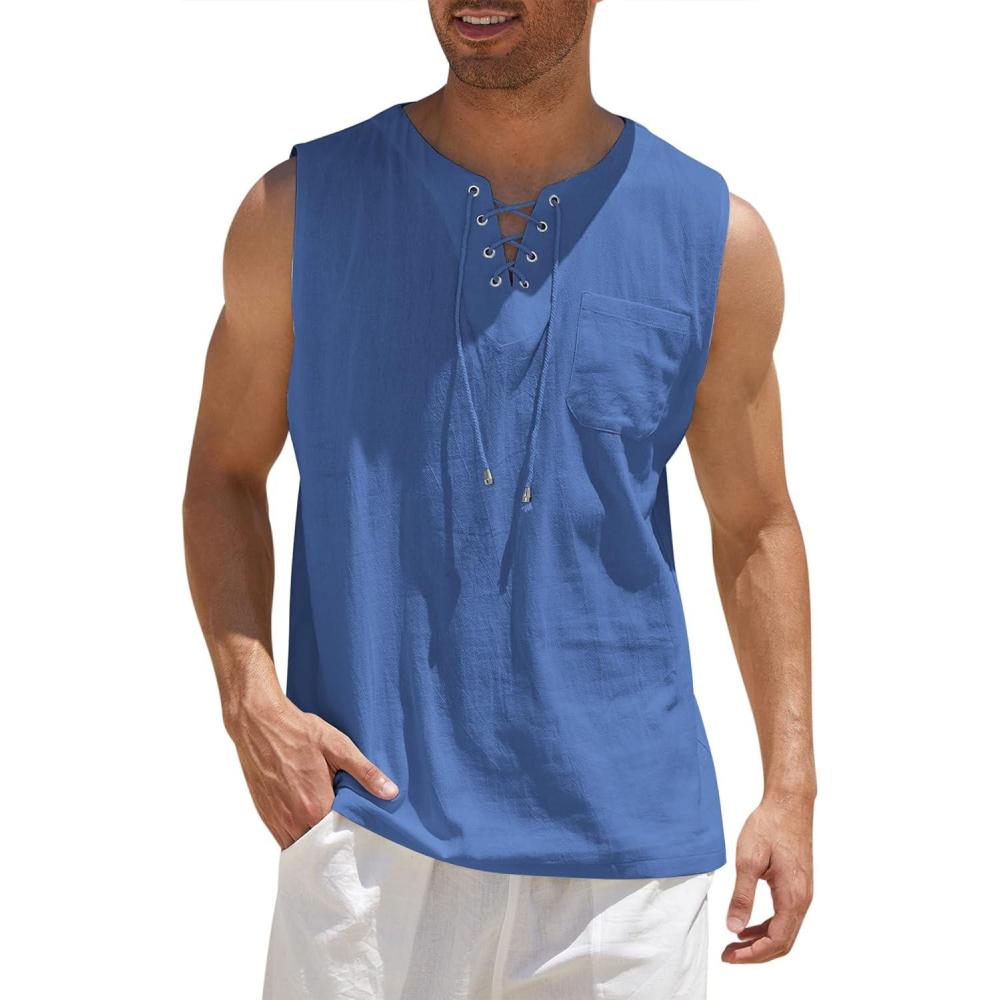 COOFANDY Men's Cotton Linen Tank Top Shirts Casual Sleeveless Lace Up Beach Hippie Tops Bohemian Renaissance Pirate Tunic(Royal Blue)