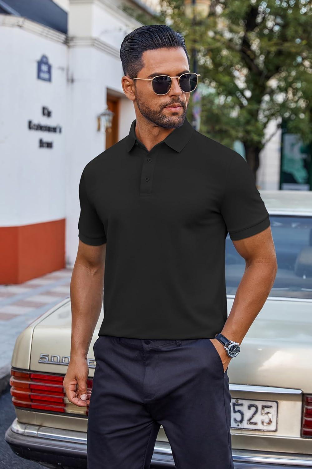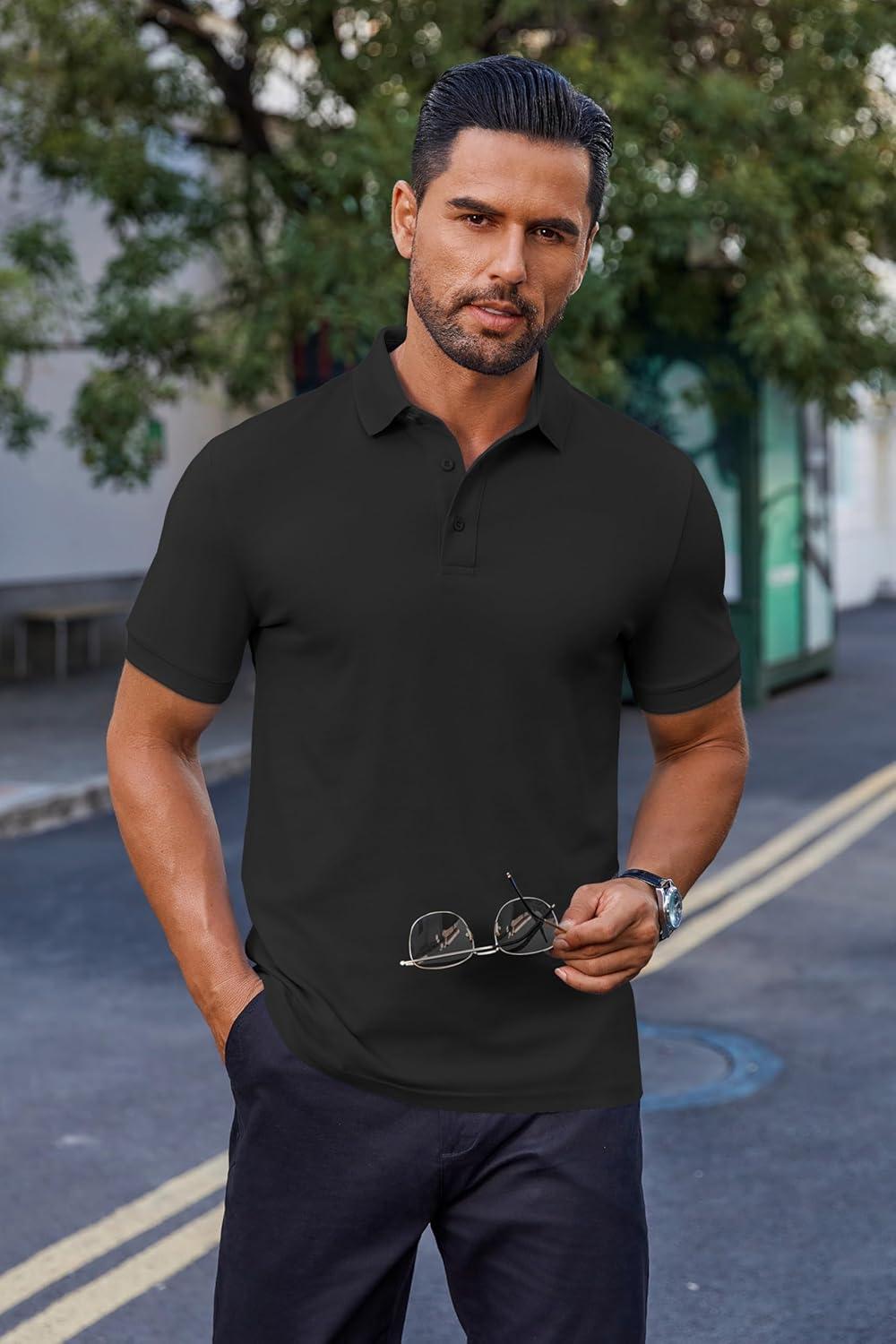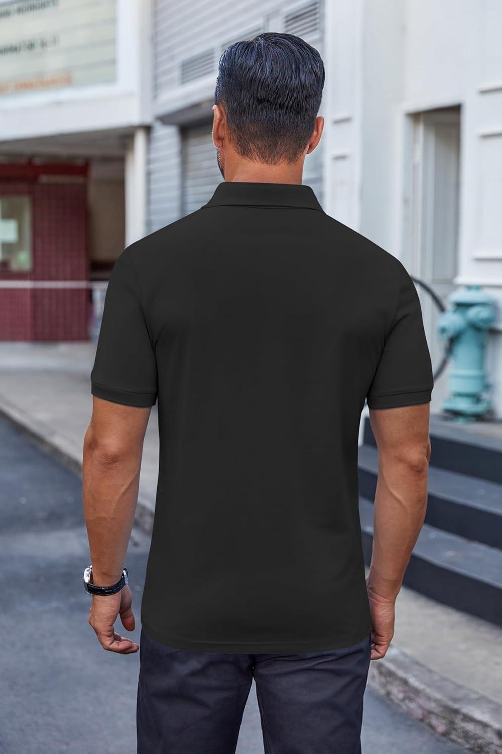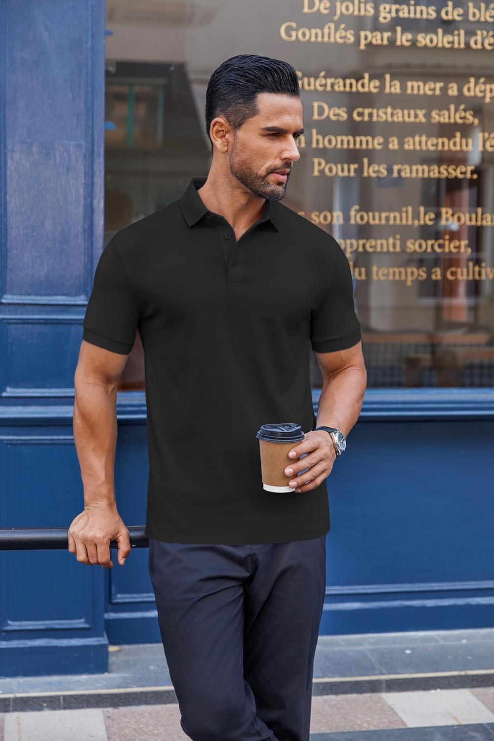 COOFANDY Men's Cotton Pique Polo Shirts Short Sleeve Golf Shirts Basic Casual Collared T-Shirt(Black)