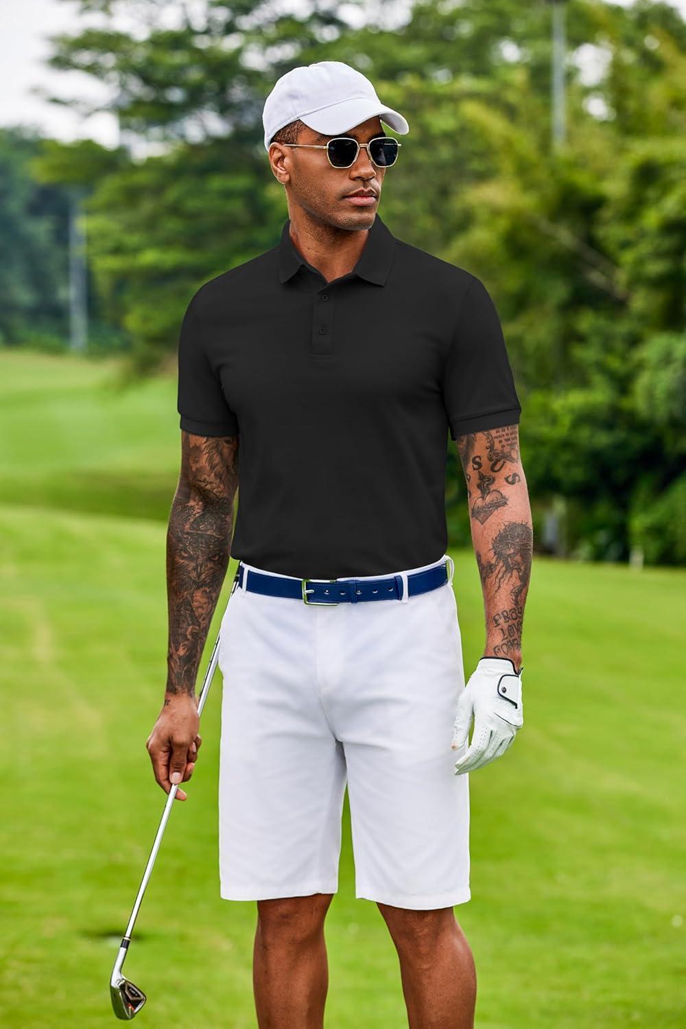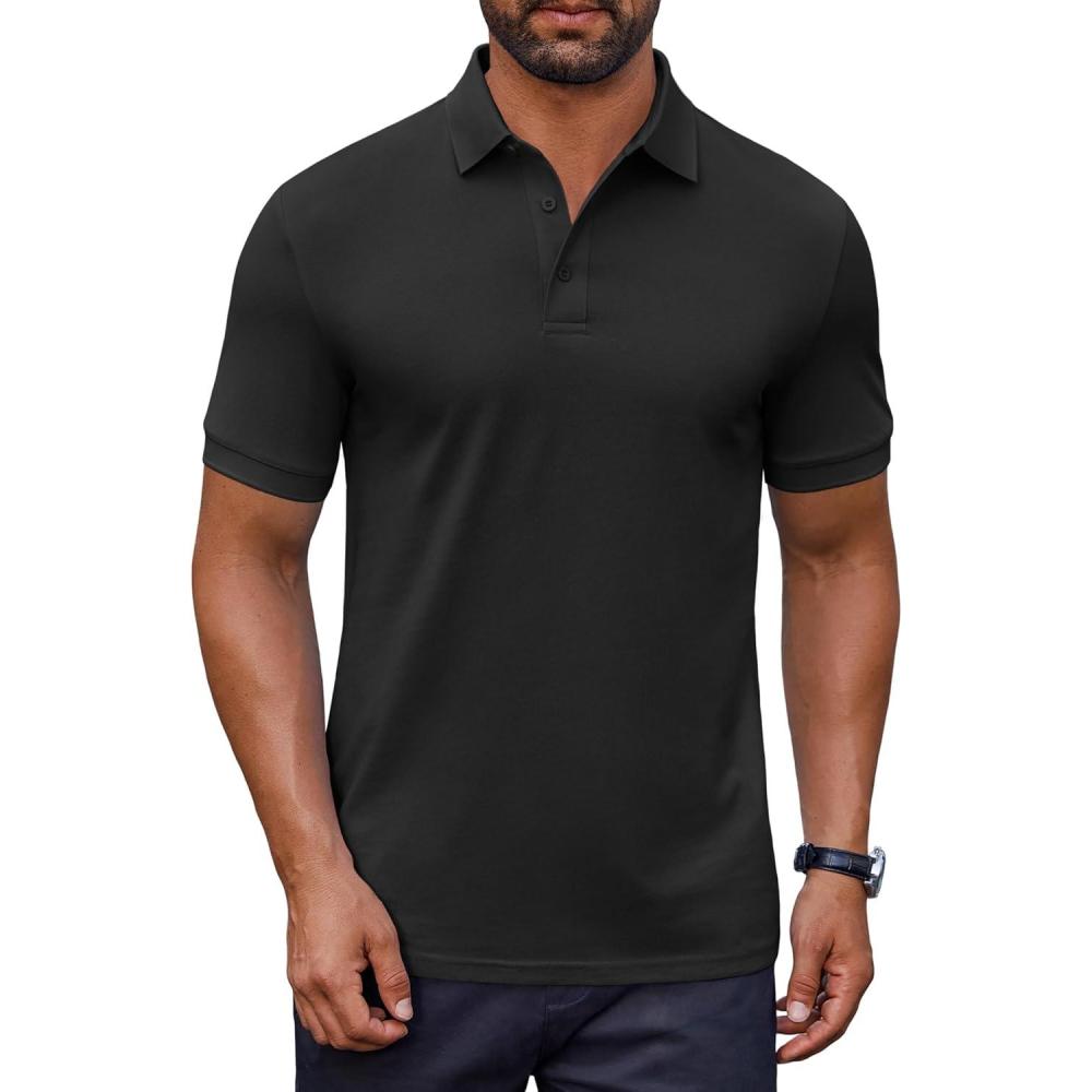 COOFANDY Men’s Cotton Pique Polo Shirts Short Sleeve Golf Shirts Basic Casual Collared T-Shirt(Black)