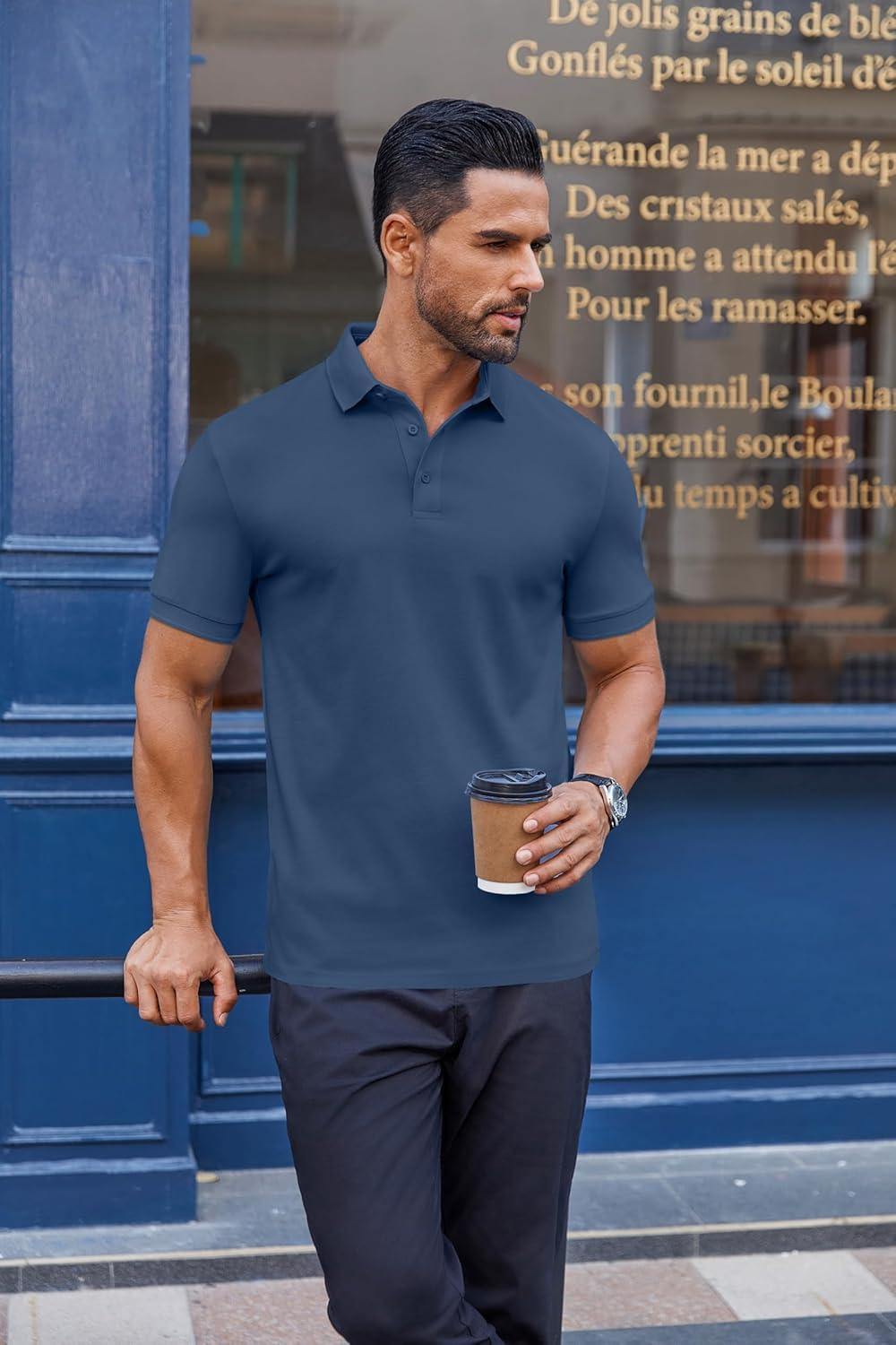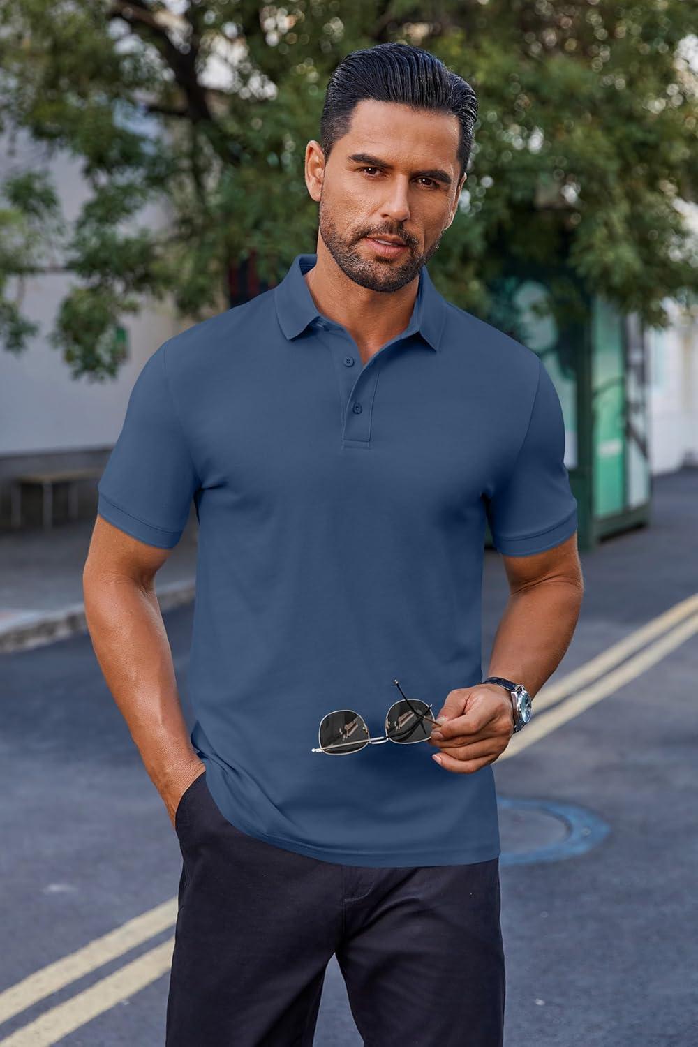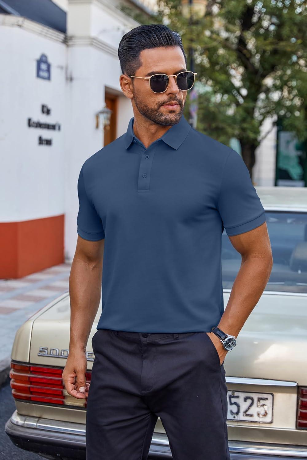 COOFANDY Men's Cotton Pique Polo Shirts Short Sleeve Golf Shirts Basic Casual Collared T-Shirt(Dark Blue)
