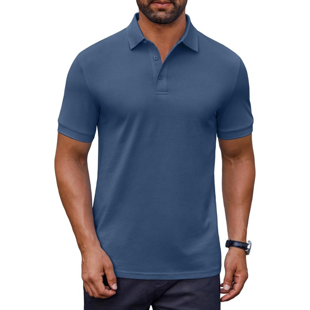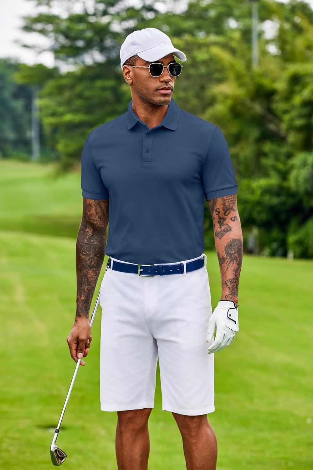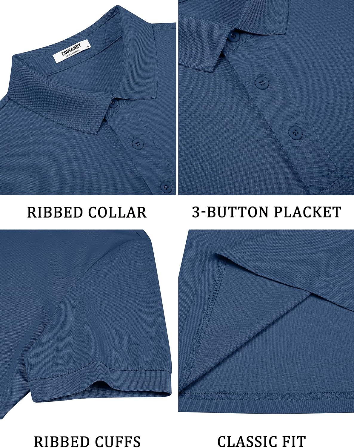 COOFANDY Men's Cotton Pique Polo Shirts Short Sleeve Golf Shirts Basic Casual Collared T-Shirt(Dark Blue)