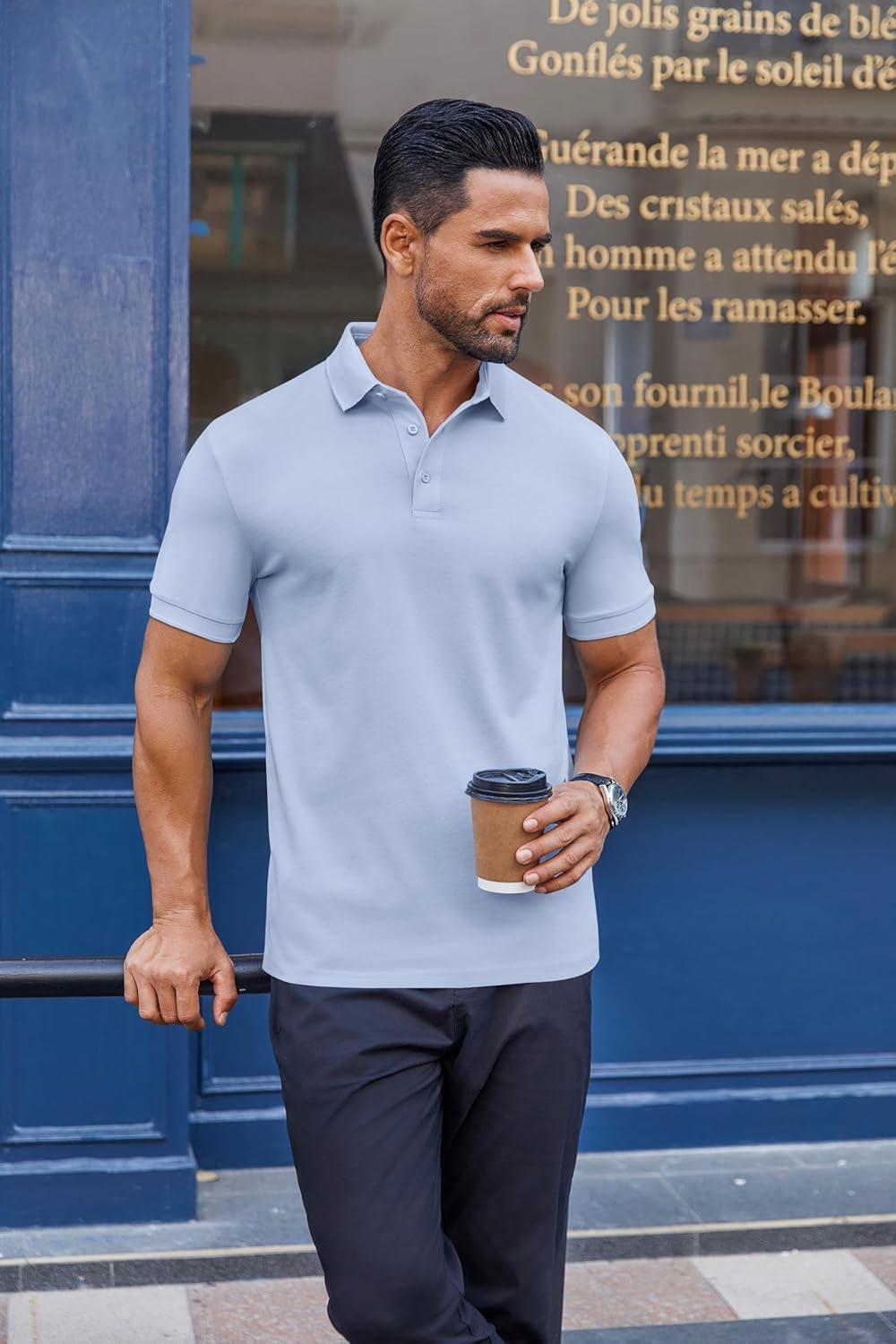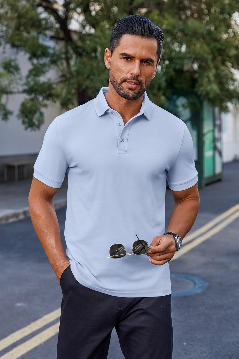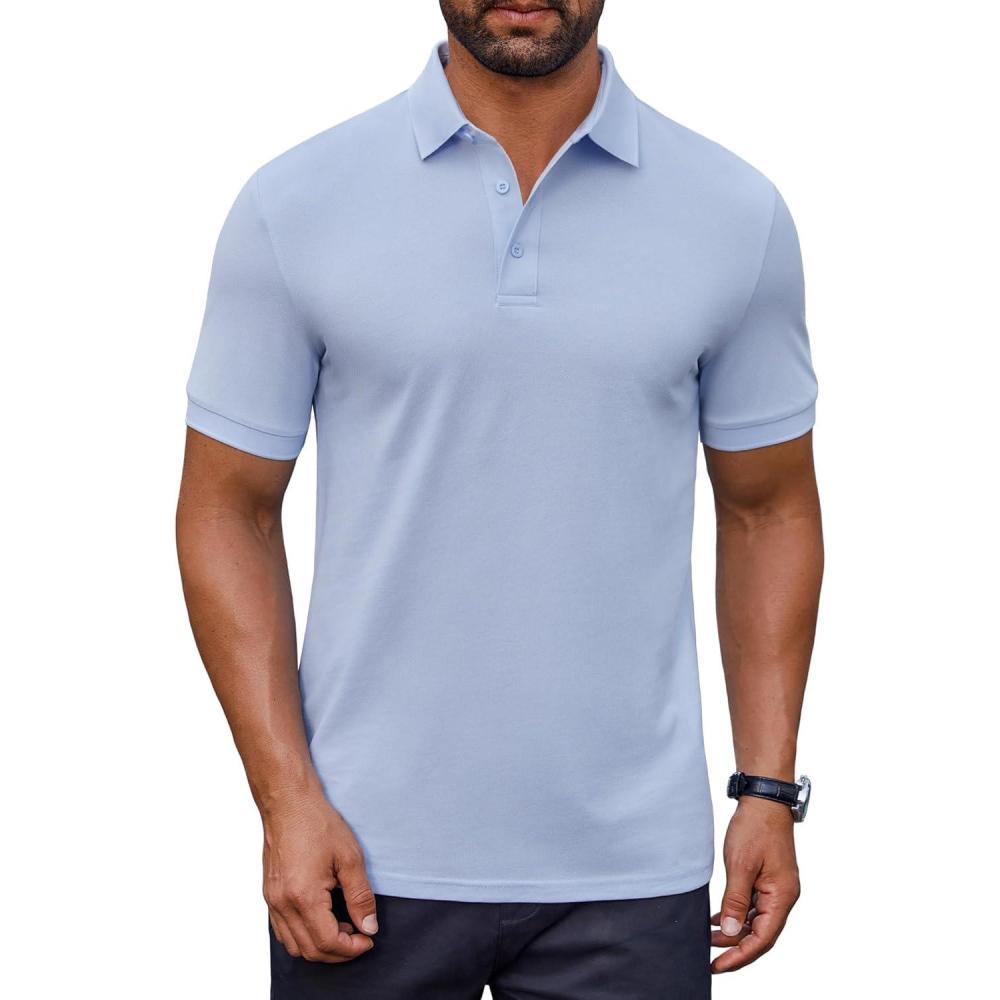 COOFANDY Men's Cotton Pique Polo Shirts Short Sleeve Golf Shirts Basic Casual Collared T-Shirt(Light Blue)