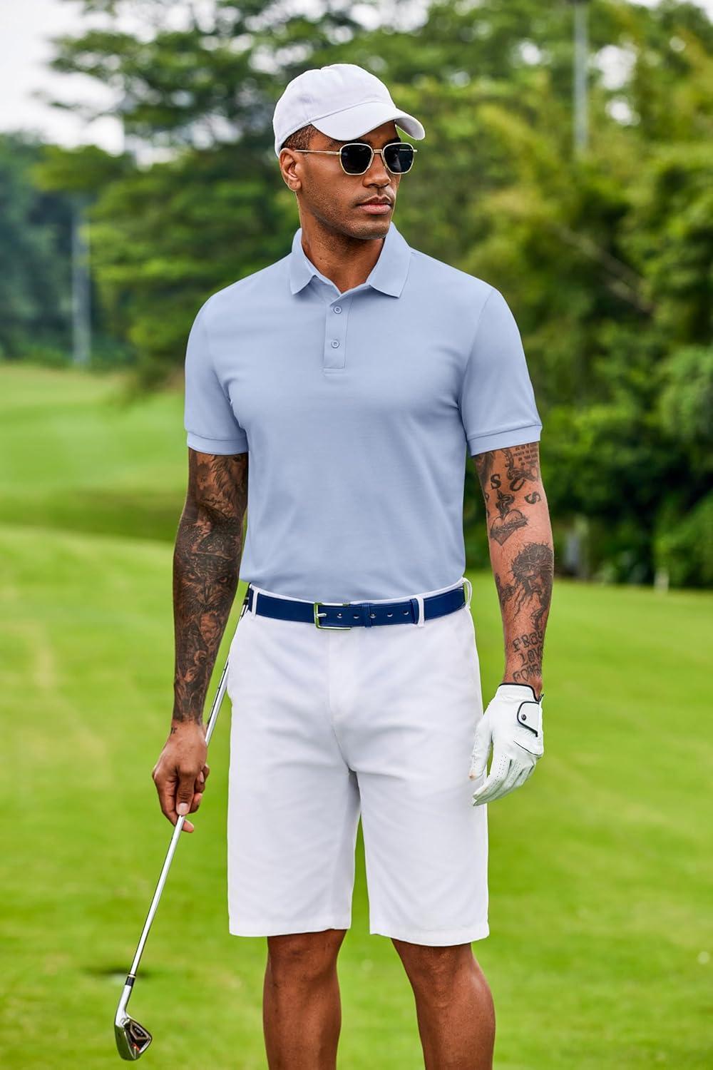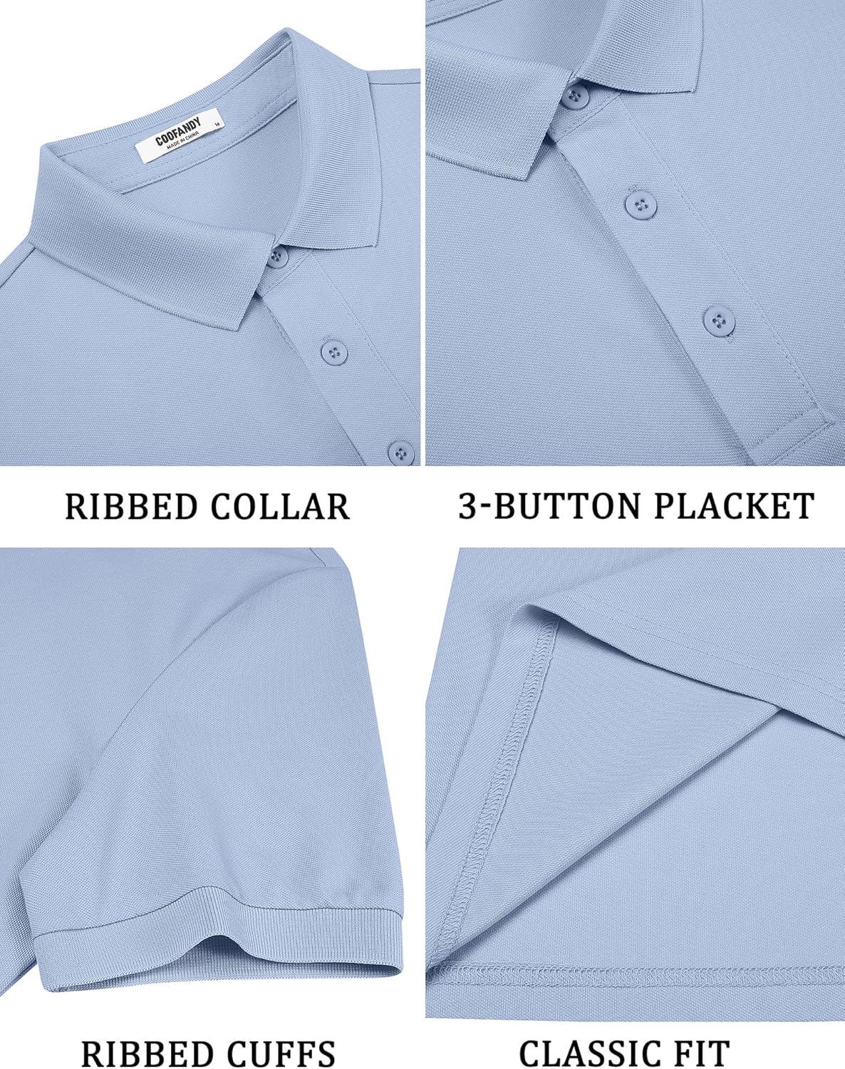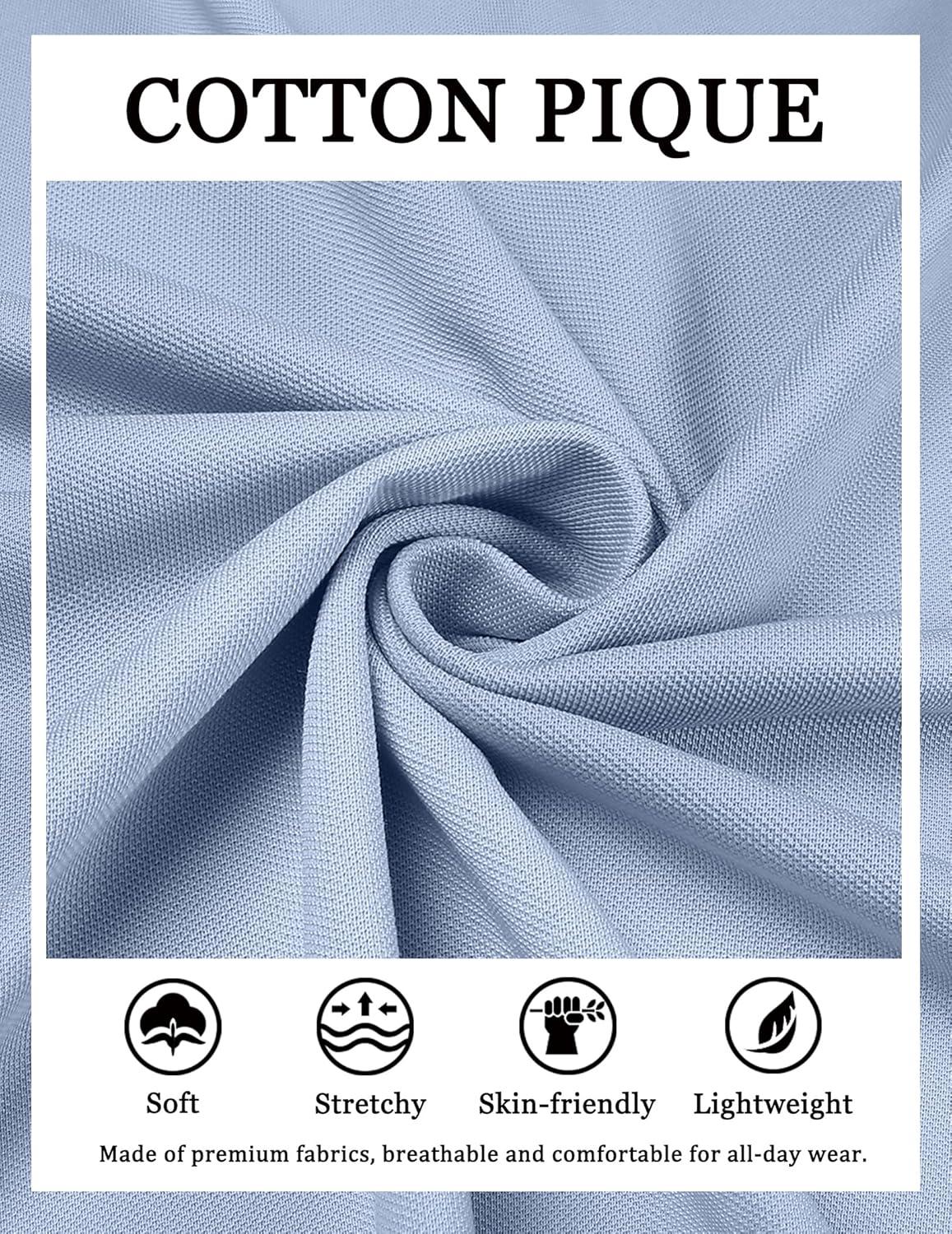 COOFANDY Men's Cotton Pique Polo Shirts Short Sleeve Golf Shirts Basic Casual Collared T-Shirt(Light Blue)
