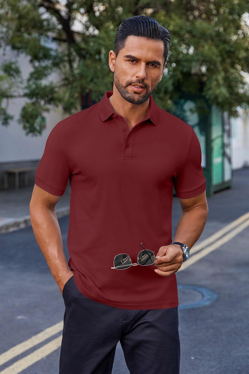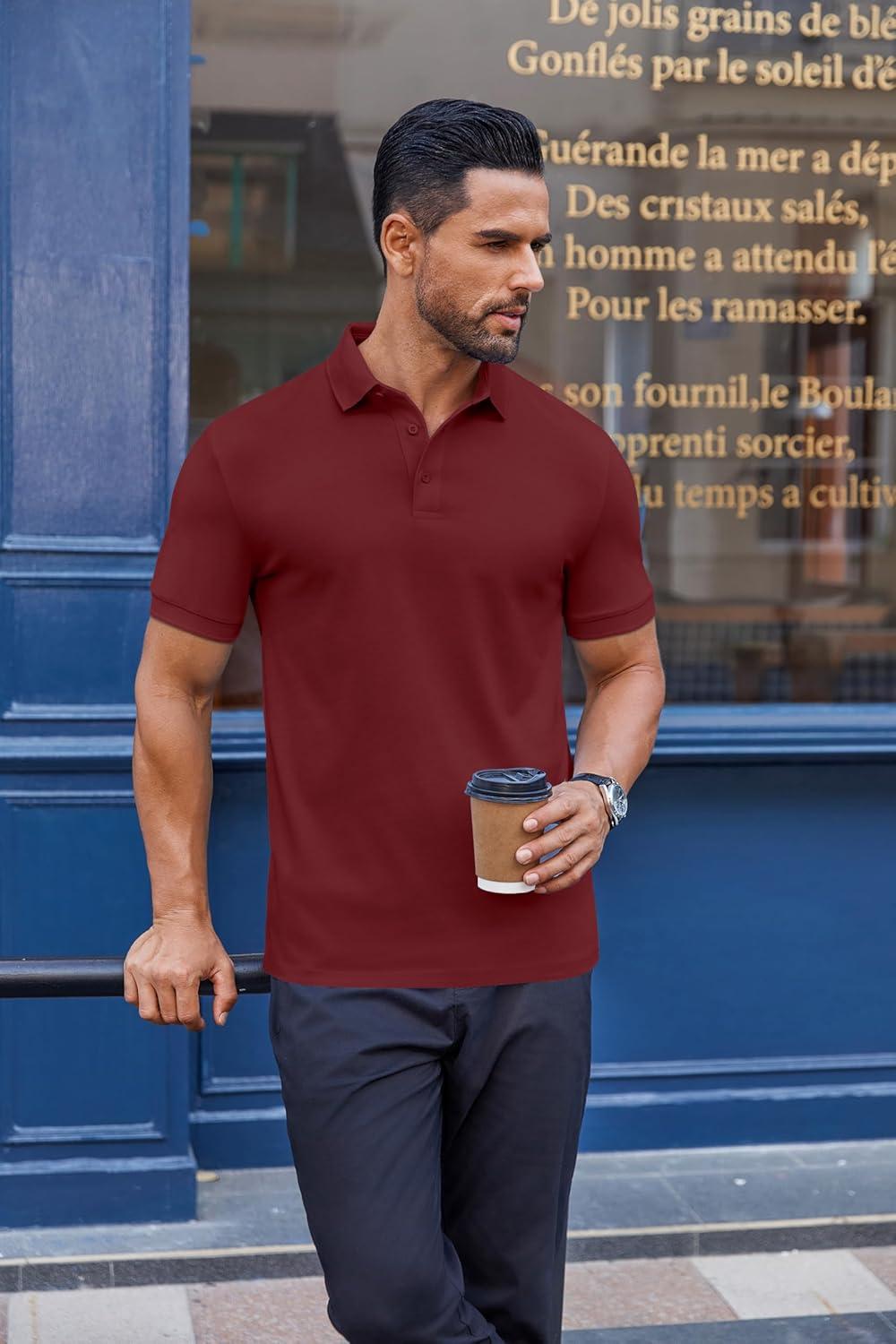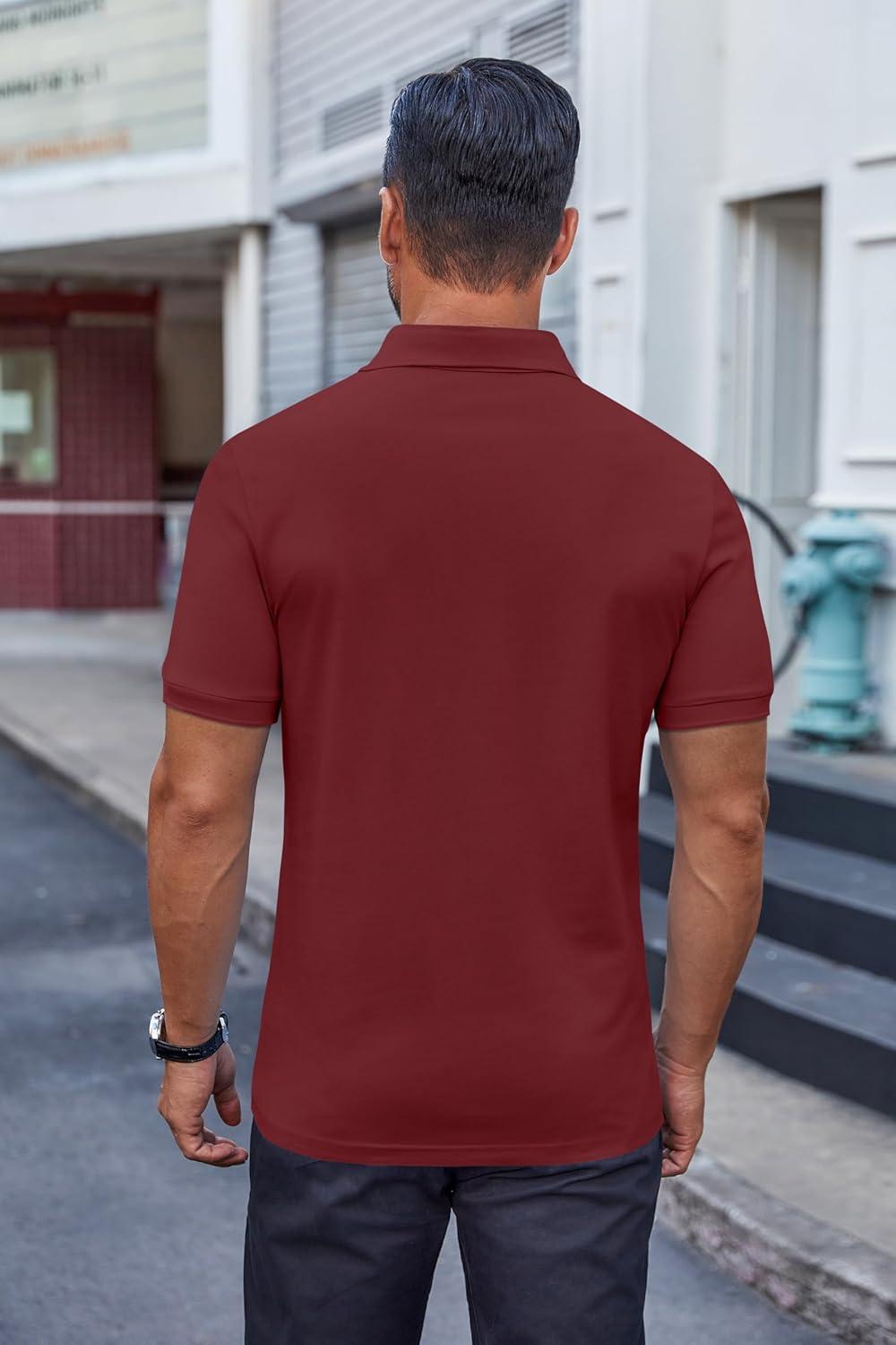 COOFANDY Men's Cotton Pique Polo Shirts Short Sleeve Golf Shirts Basic Casual Collared T-Shirt(Wine Red)