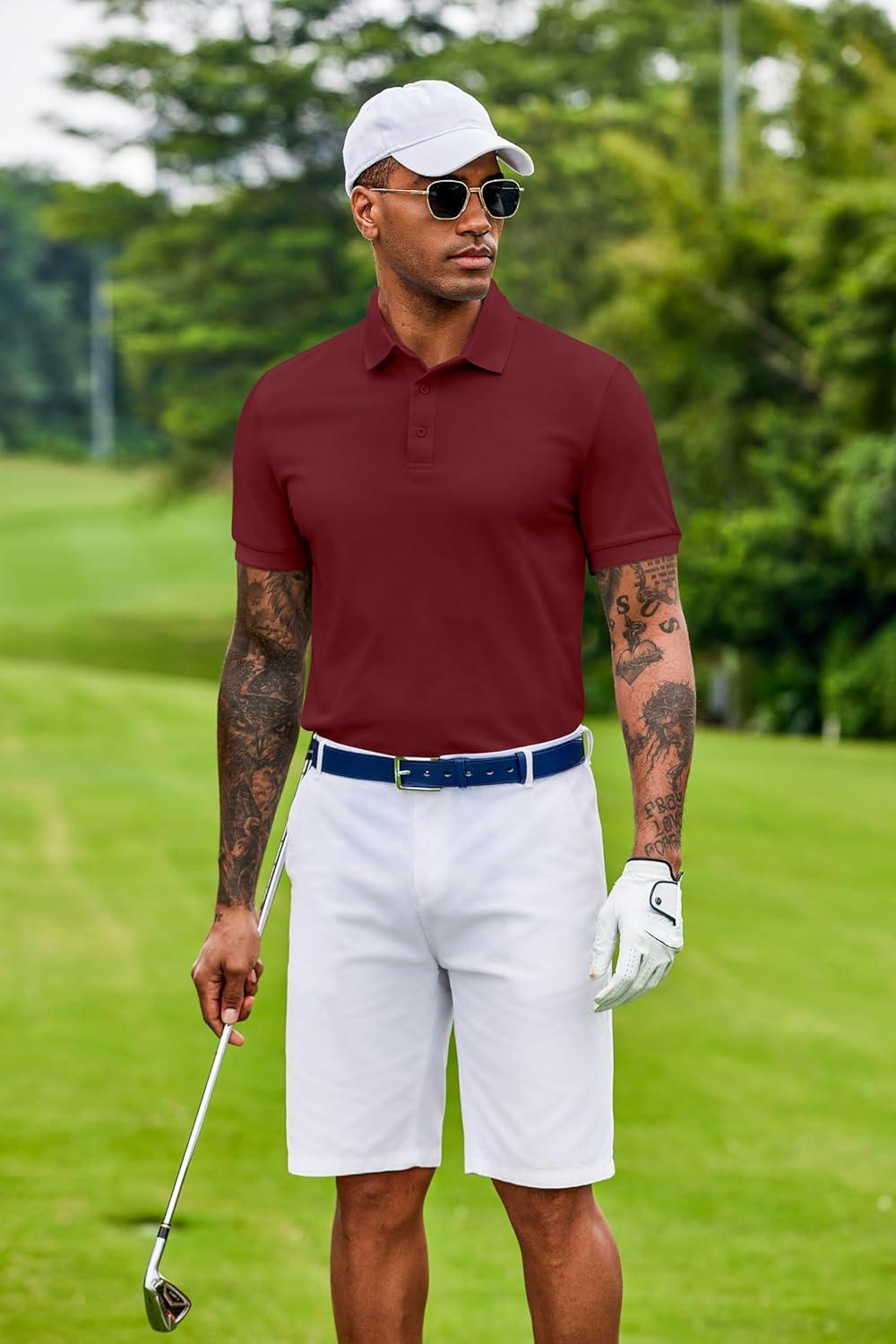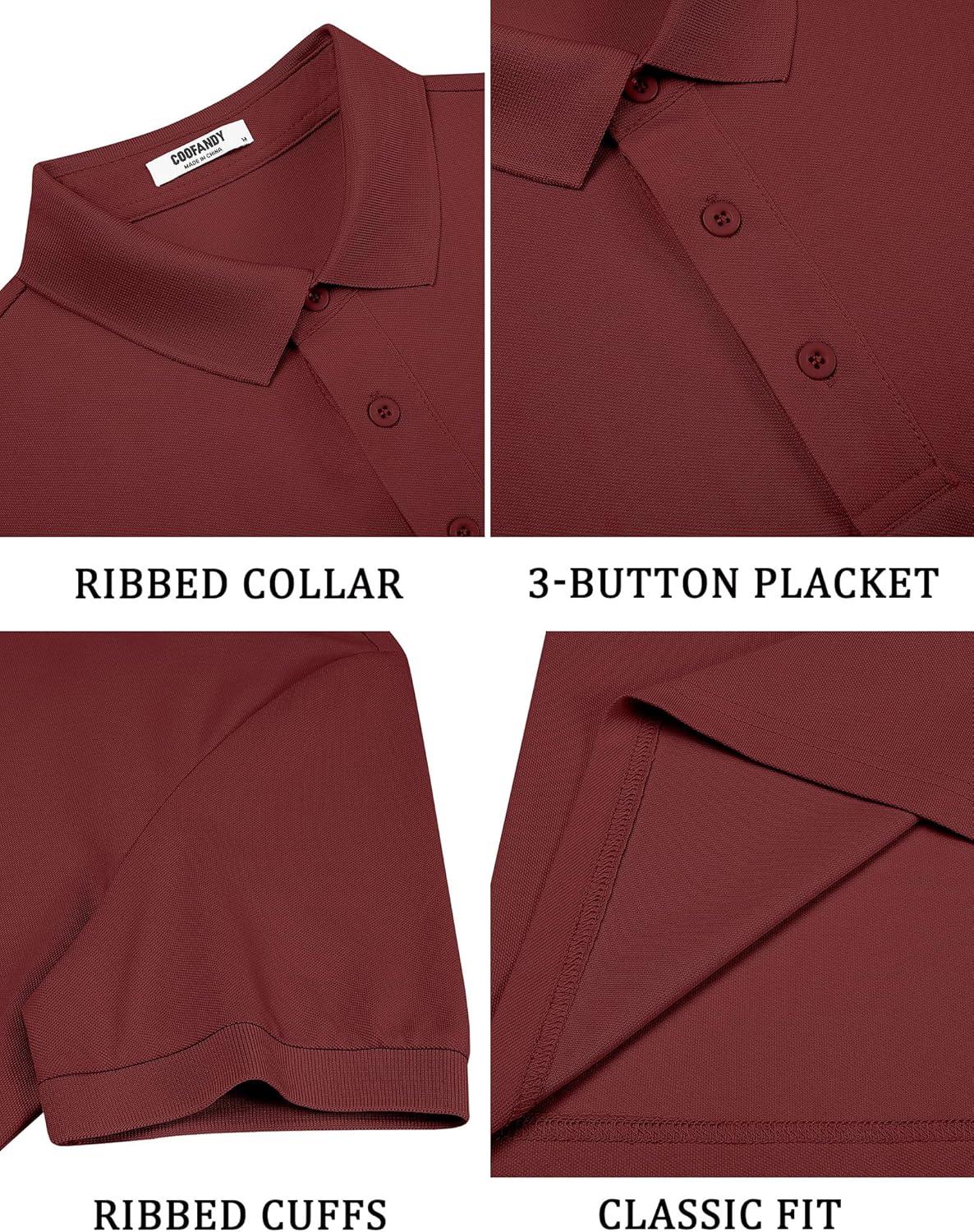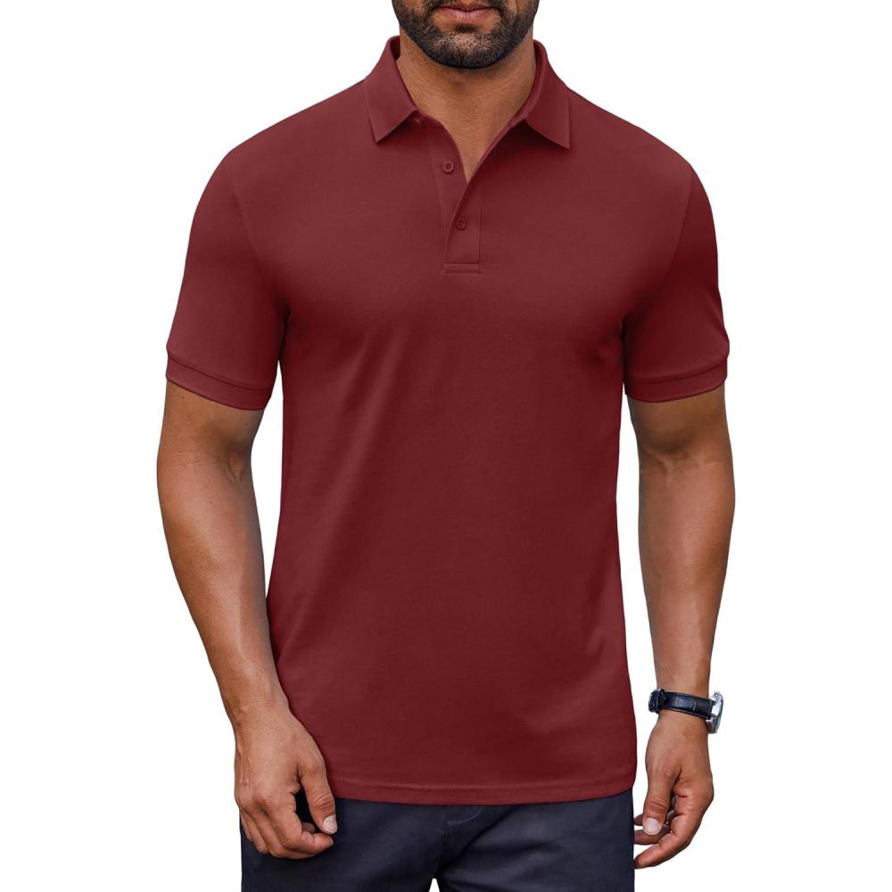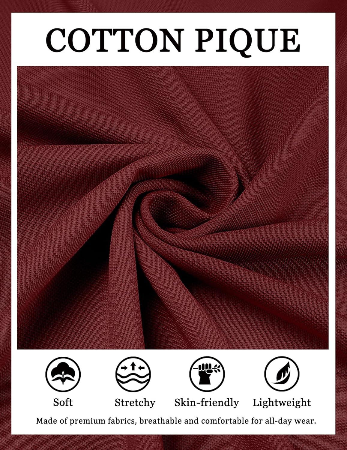 COOFANDY Men's Cotton Pique Polo Shirts Short Sleeve Golf Shirts Basic Casual Collared T-Shirt(Wine Red)