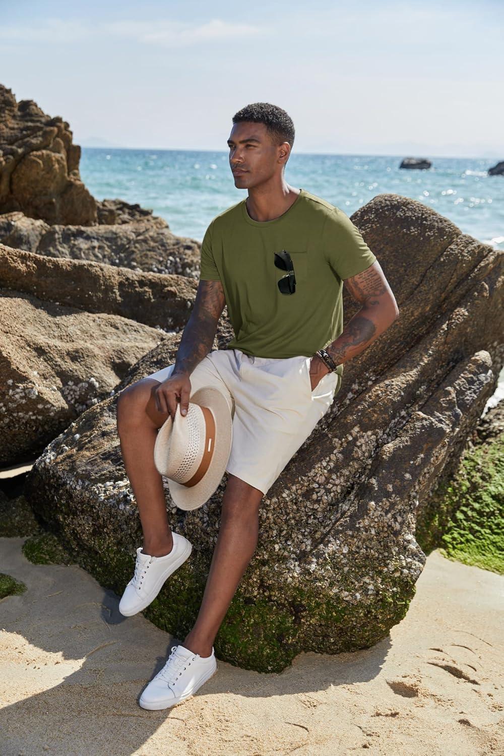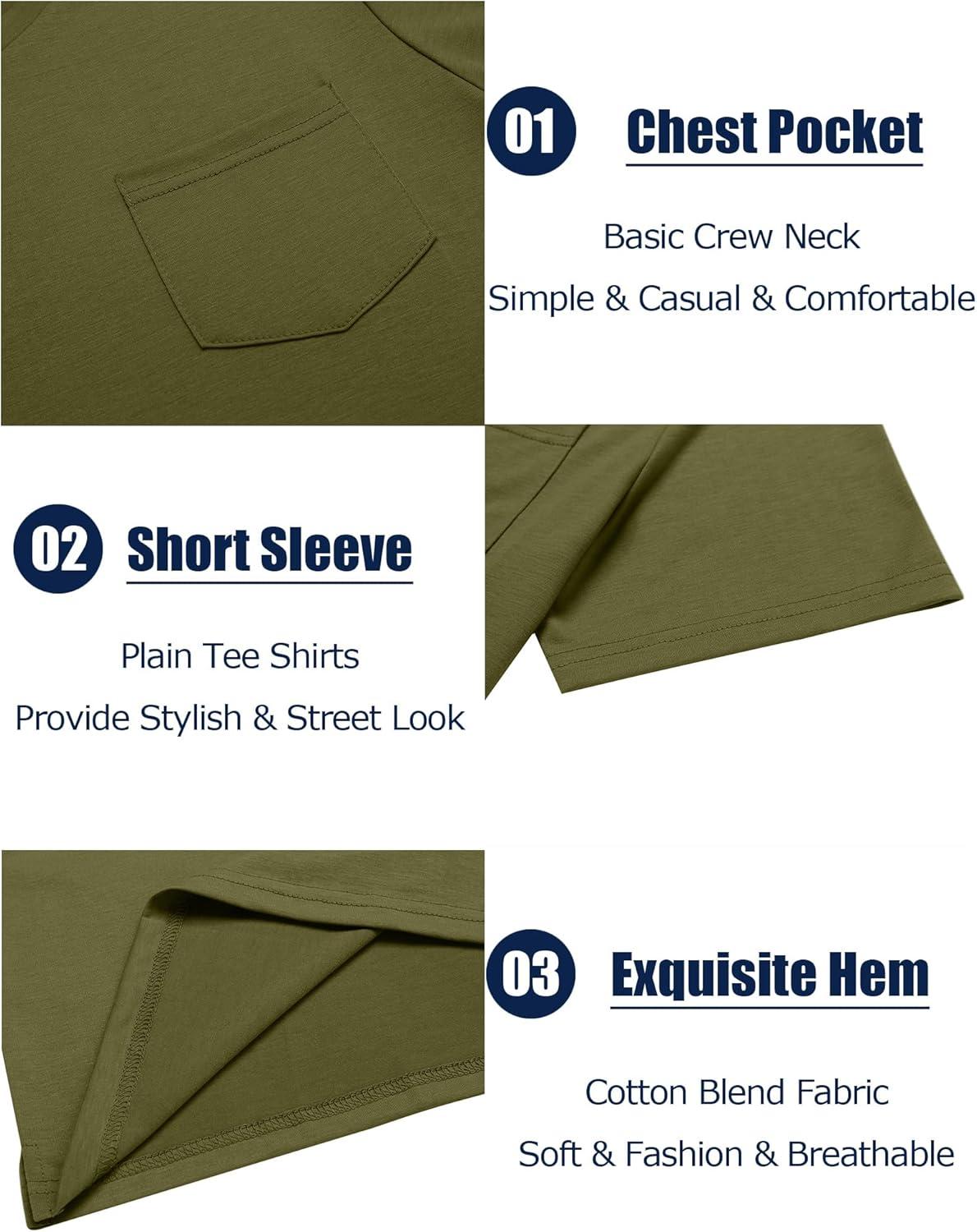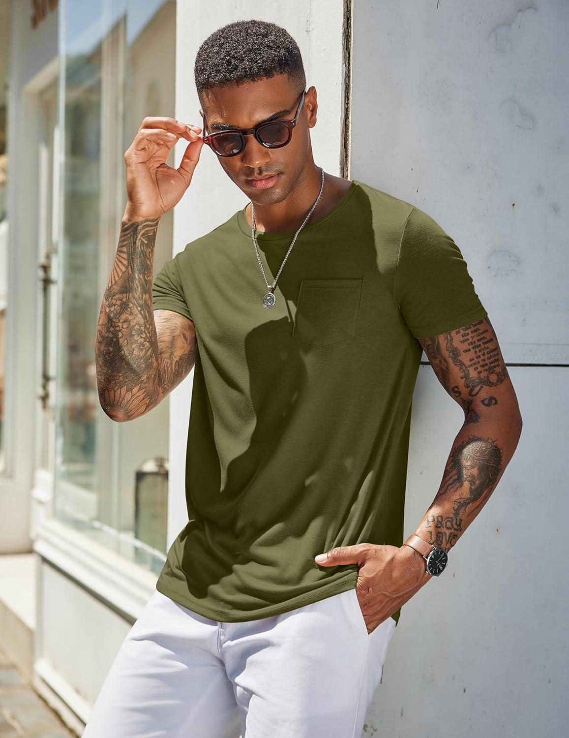 COOFANDY Men’s Cotton Pocket Tee Shirts Soft Crew Neck Stretch T Shirt Plain Casual Short Sleeve Summer Basic Tops(1 Pack- Army Green)