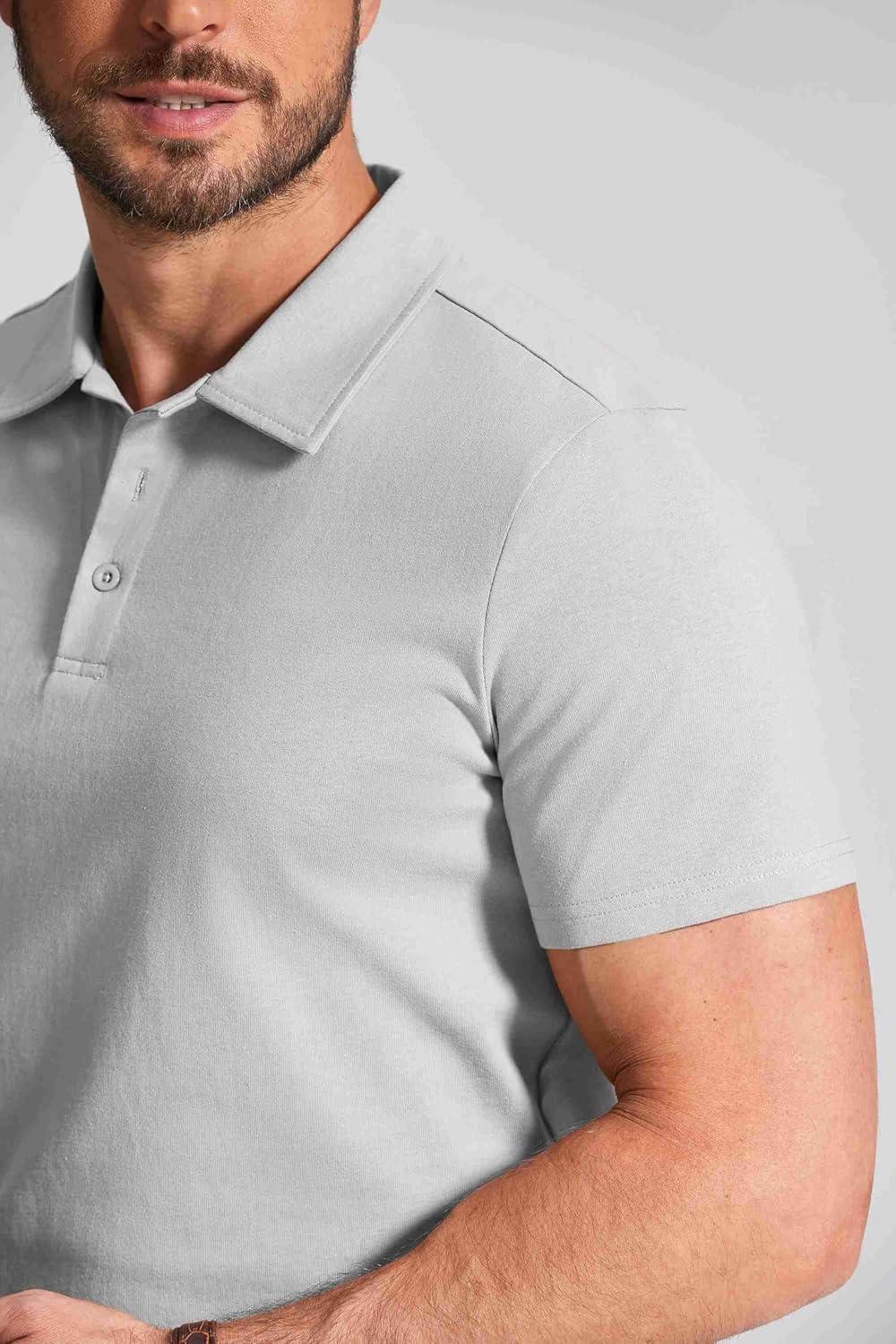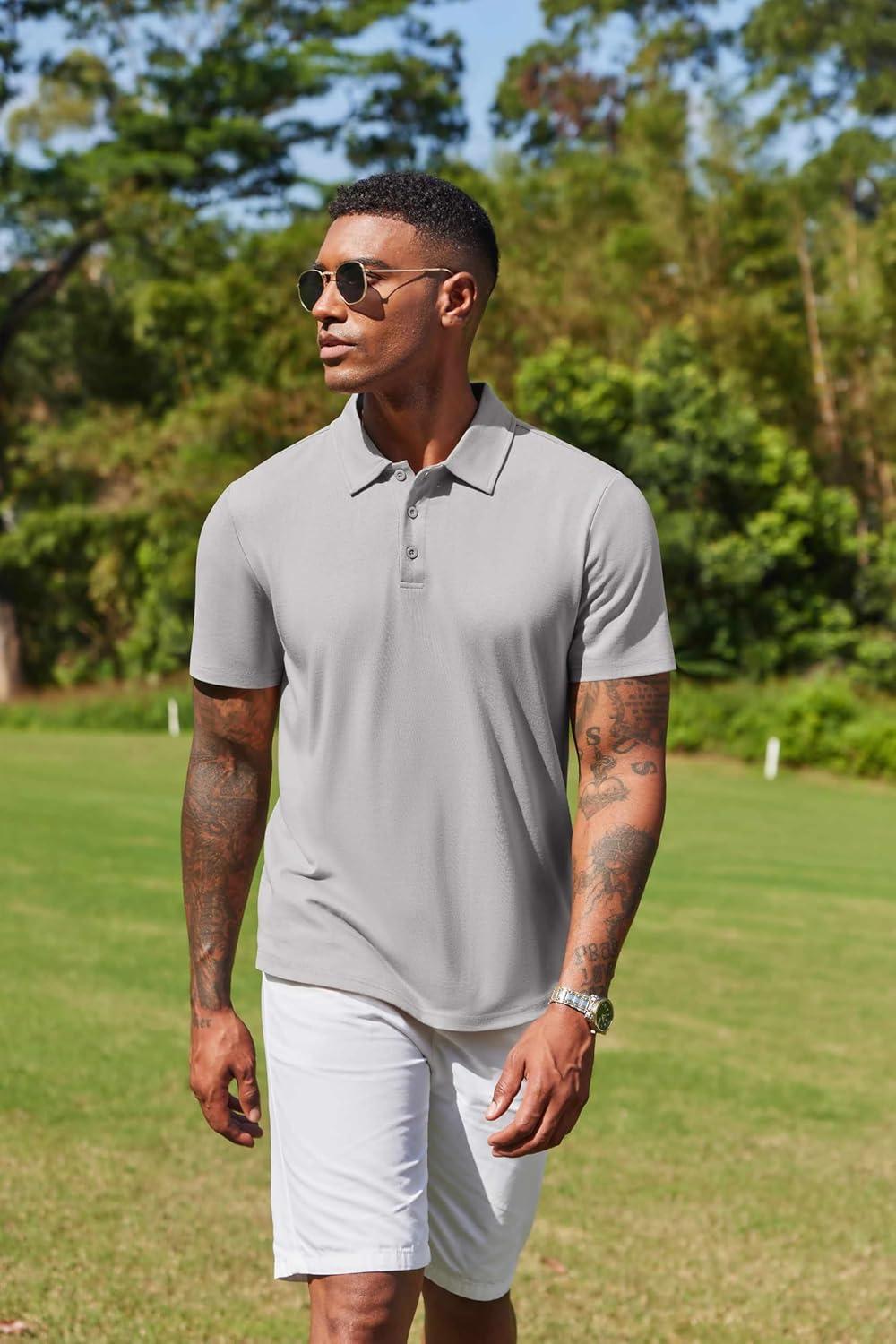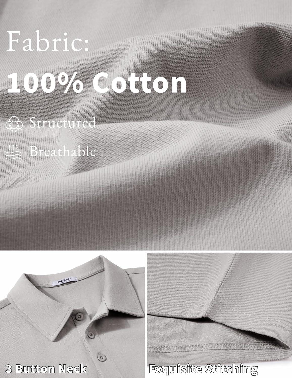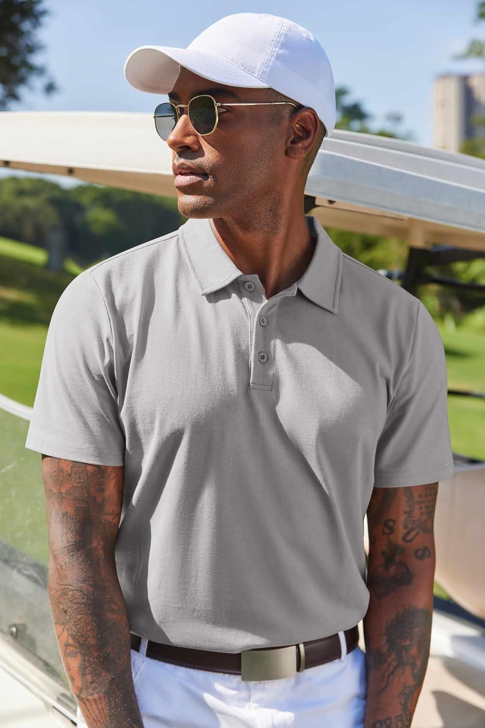 COOFANDY Mens Cotton Polo Shirt Short Sleeve Golf Shirts 3 Buttons Casual Work T Shirts(Light Grey)