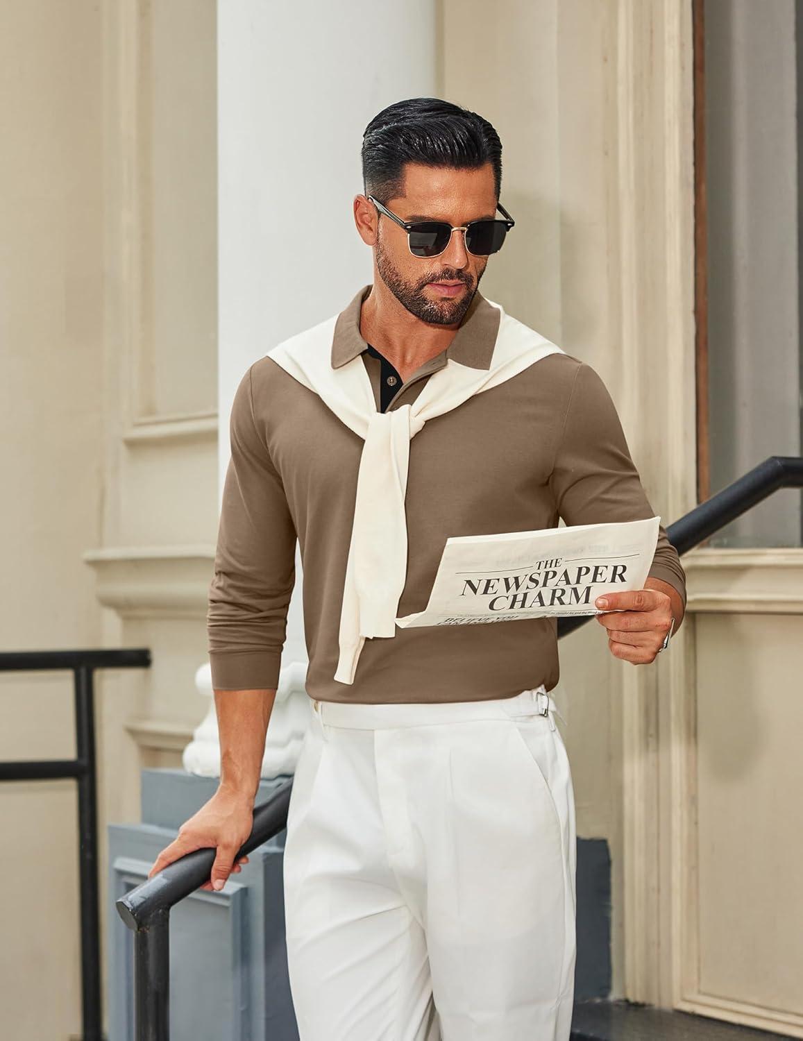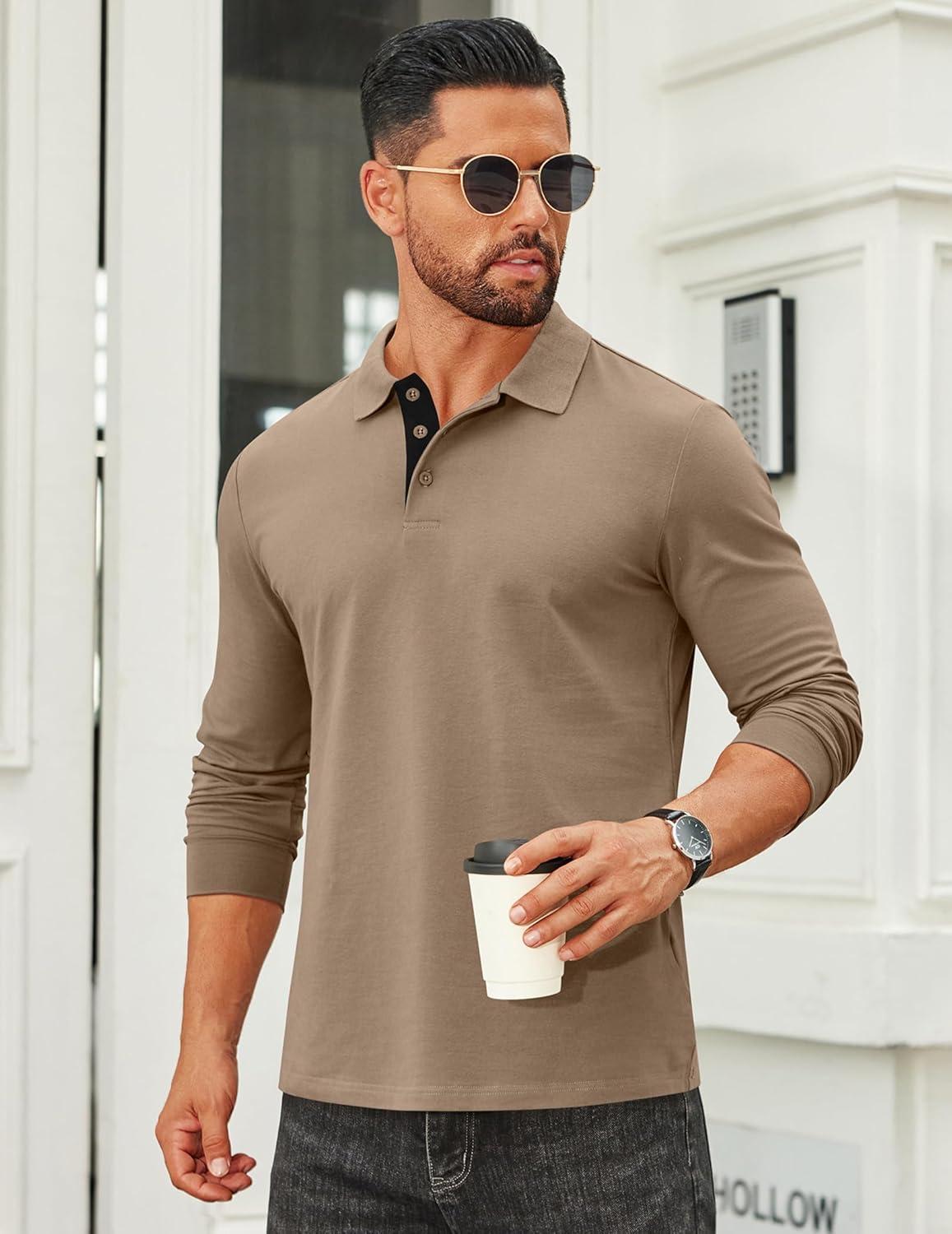 Get your hands on our exclusive COOFANDY Mens Cotton Polo Shirts Long Sleeve Casual Collared Shirt Classic Golf T Shirt(Khaki) collection, now at a discounted price.