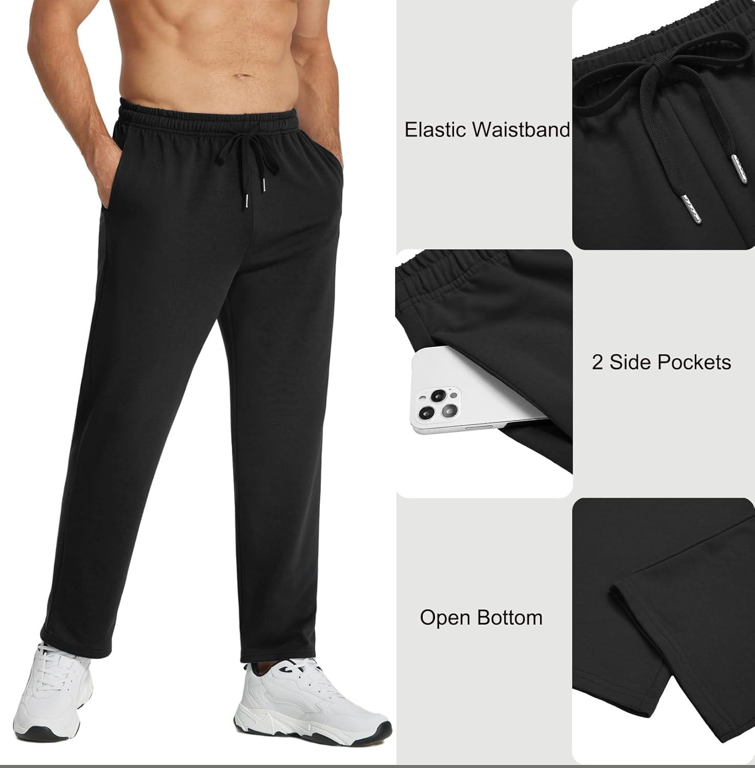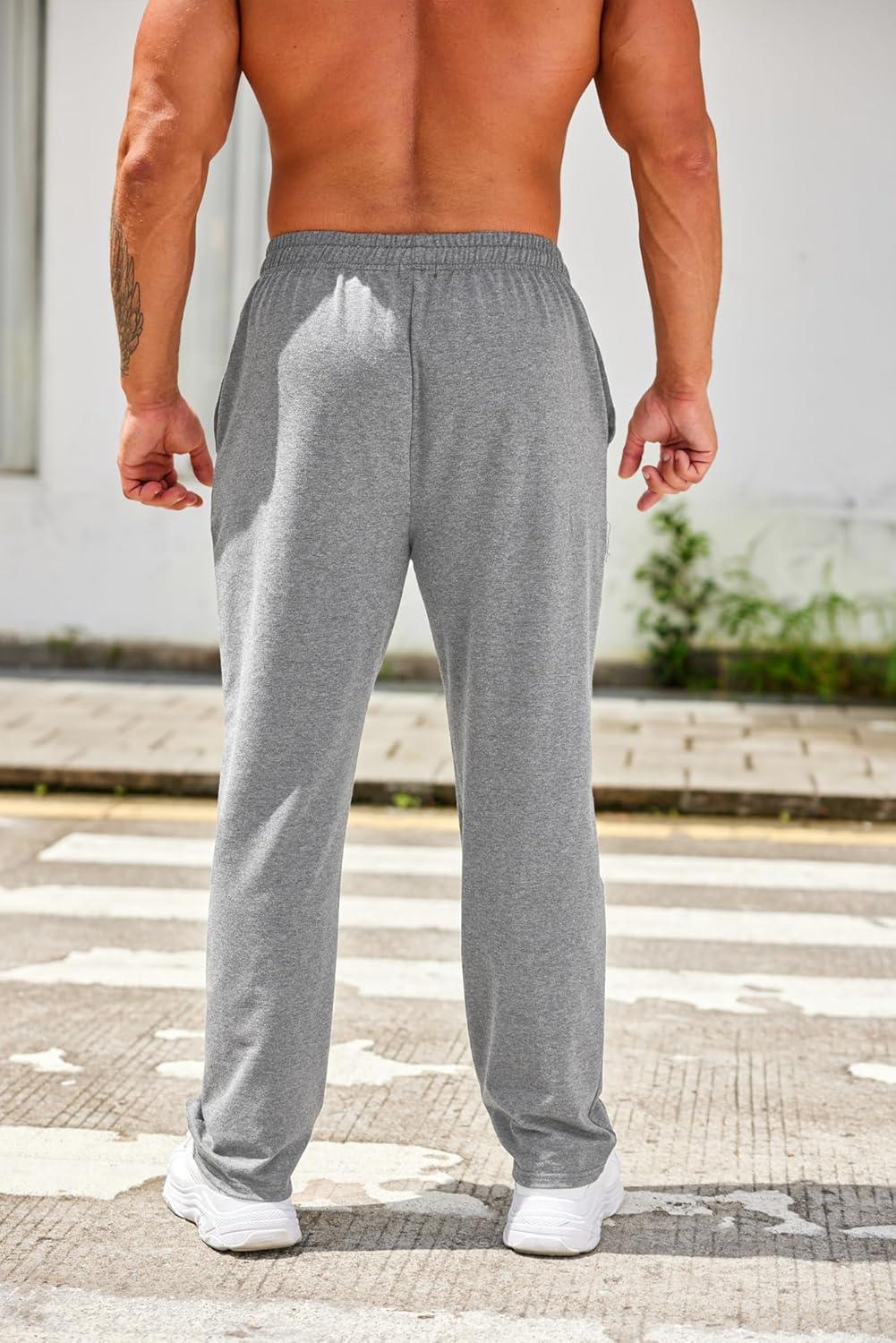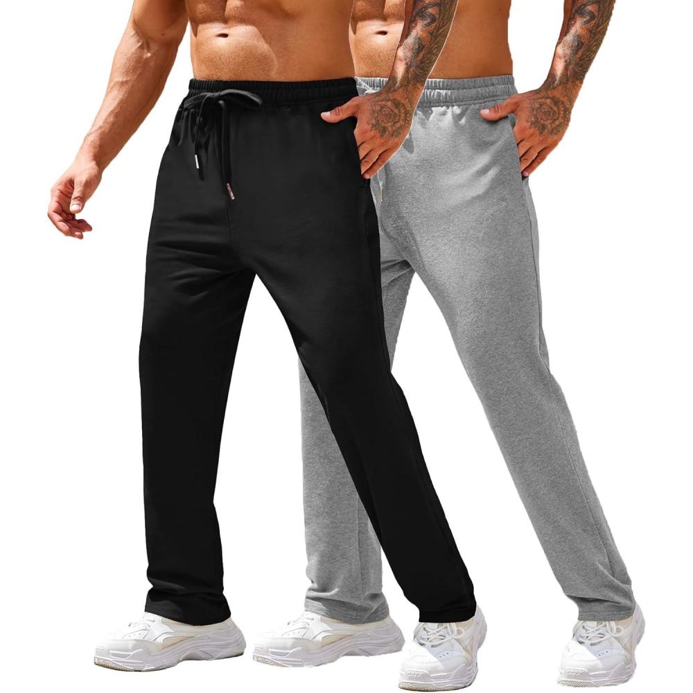 COOFANDY Men's Cotton Sweatpants Open Bottom Lounge Pants Lightweight Casual Jogger Pants with Pockets(2 Pack: Black/Grey)