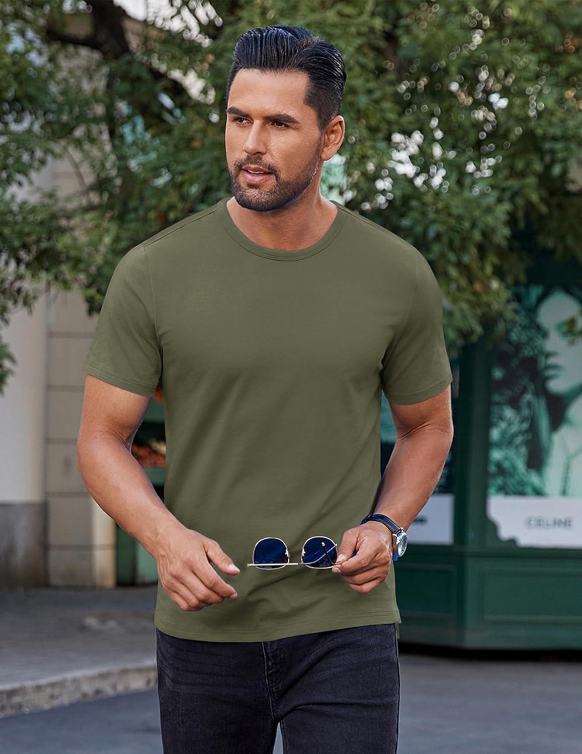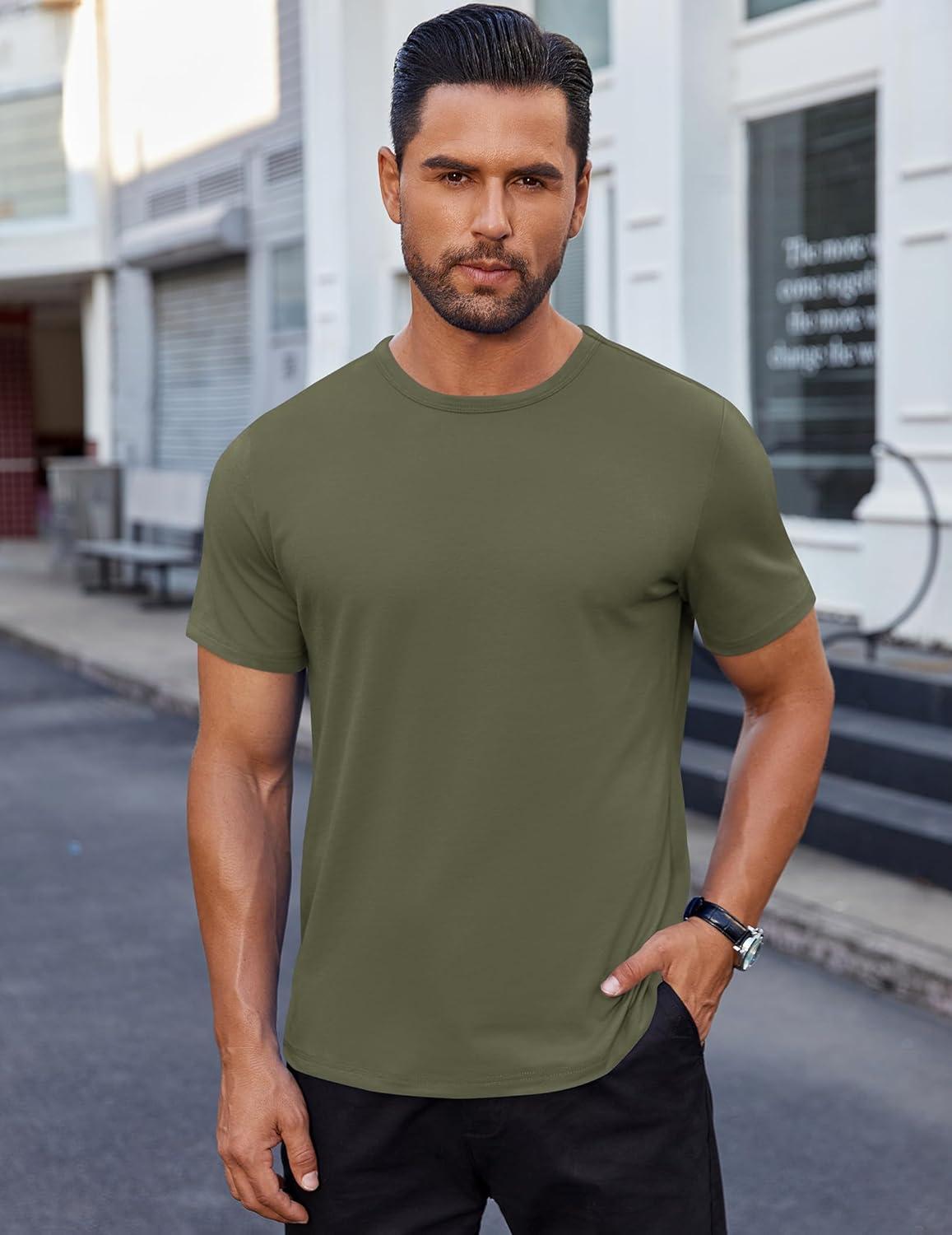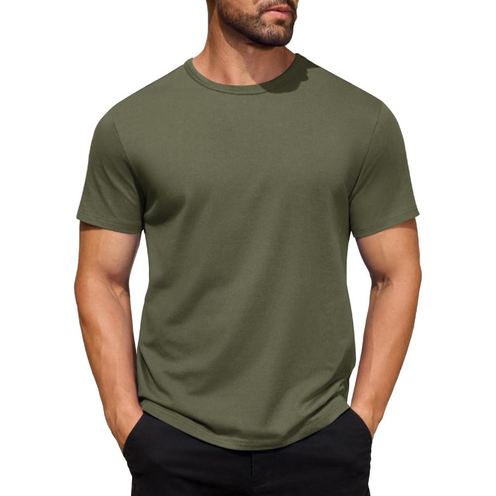 COOFANDY Men's Cotton T-Shirt Short Sleeve Crew Neck Tee Shirts Casual Solid Basic Tops(Army Green)
