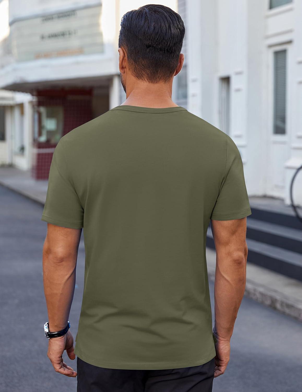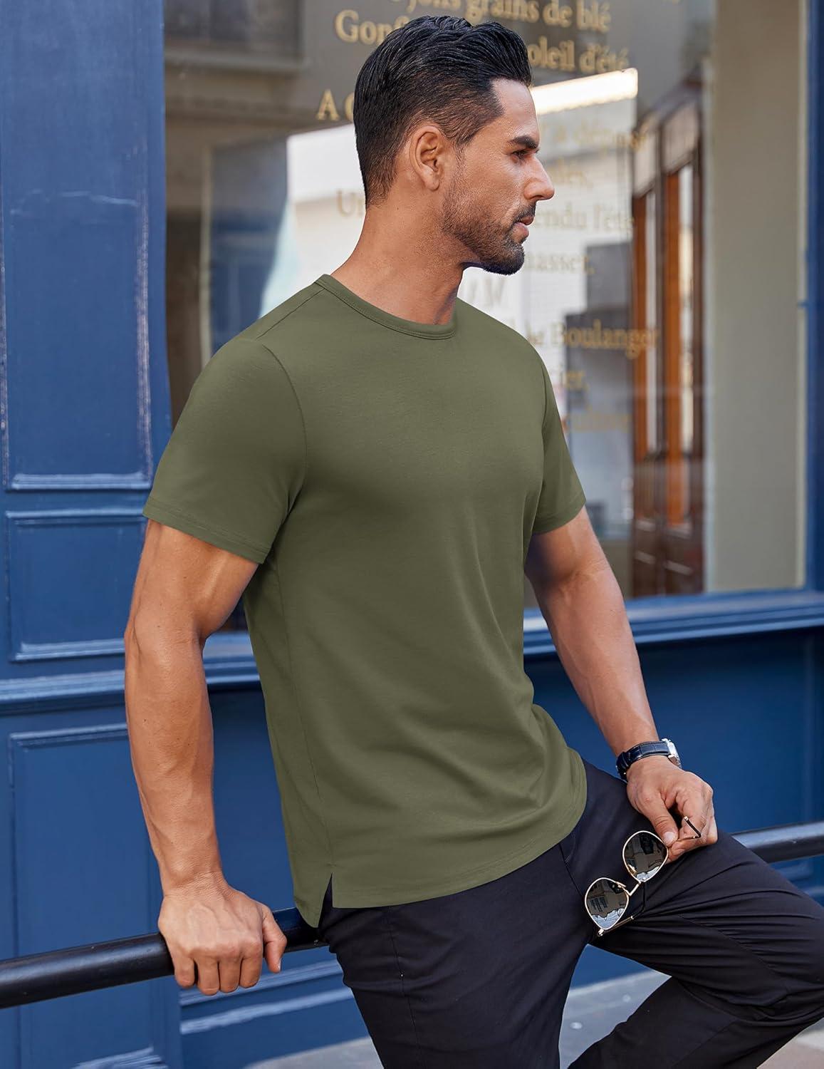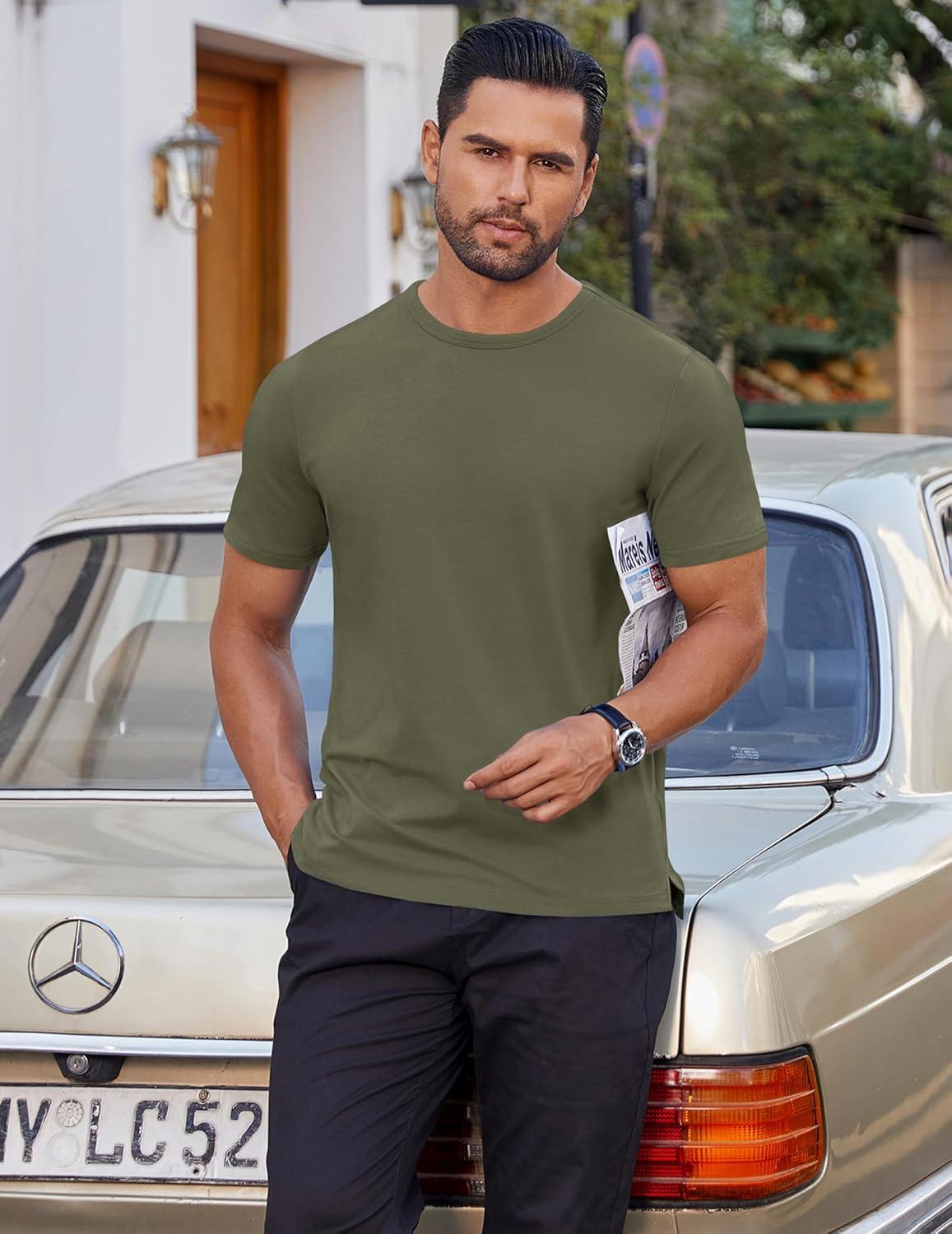 COOFANDY Men's Cotton T-Shirt Short Sleeve Crew Neck Tee Shirts Casual Solid Basic Tops(Army Green)