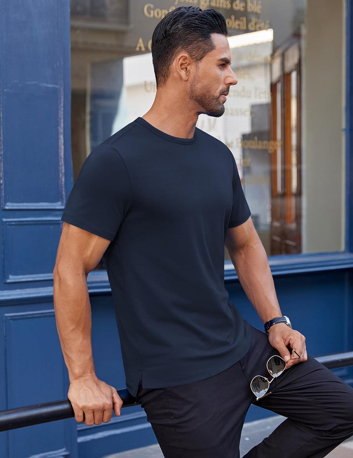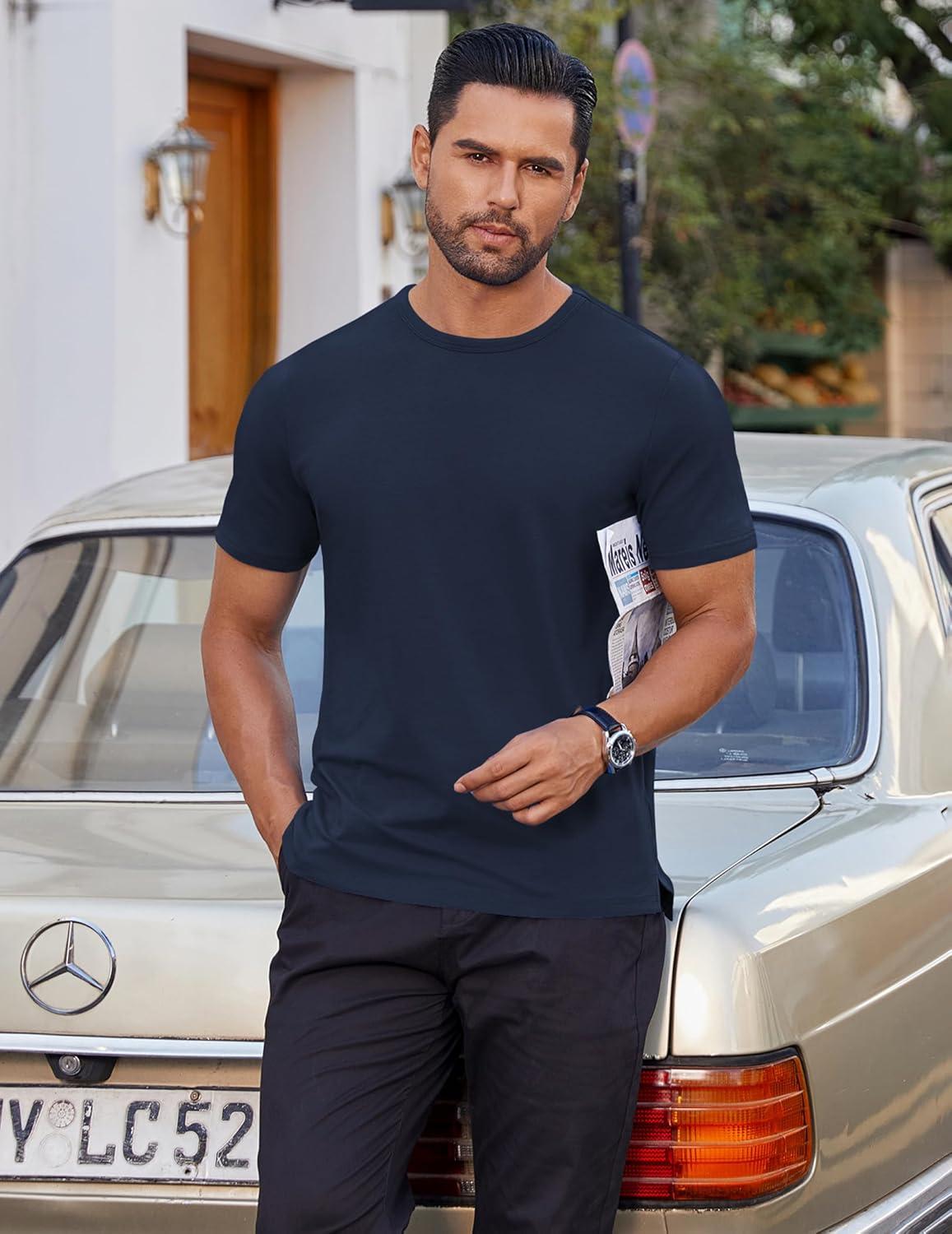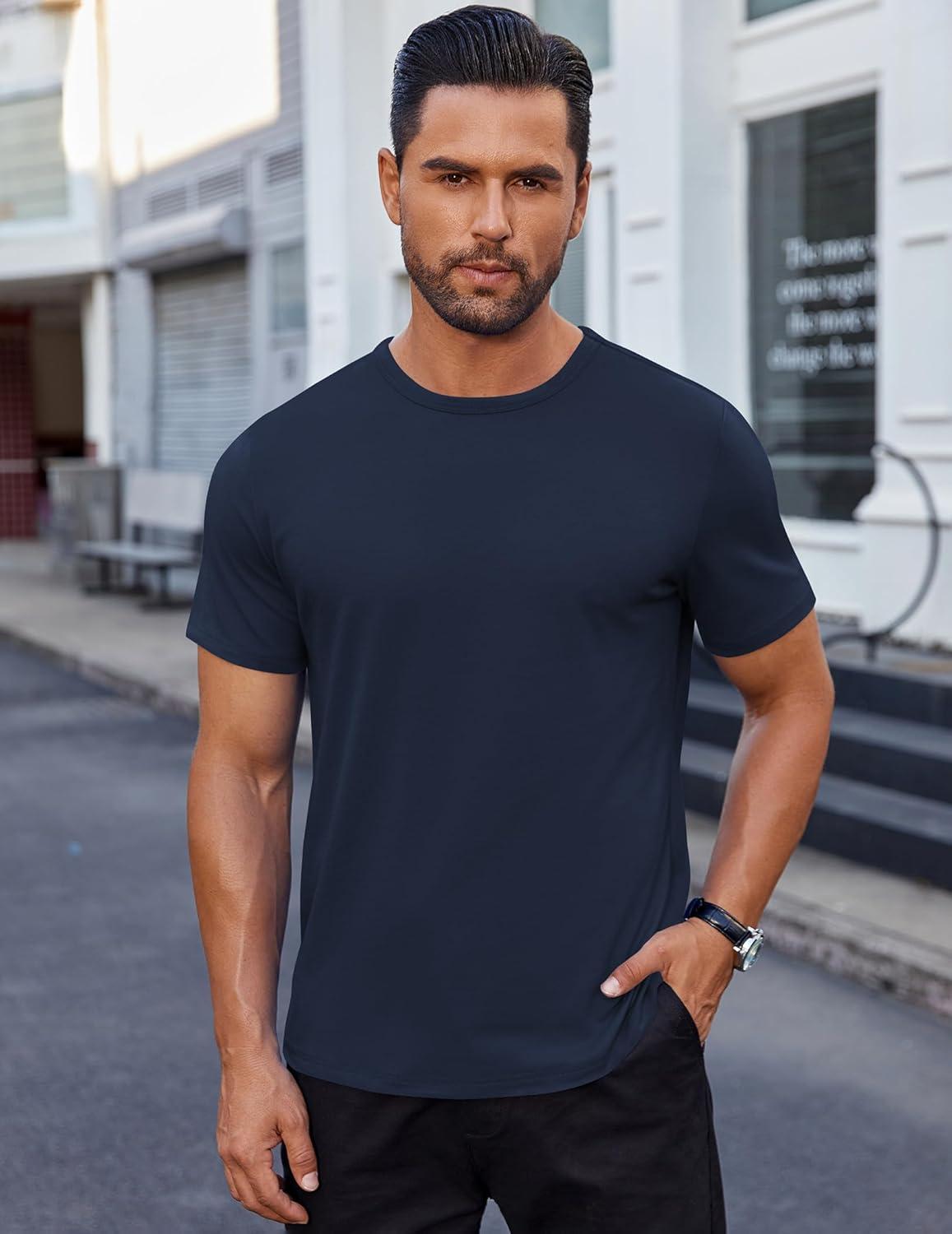 COOFANDY Men's Cotton T-Shirt Short Sleeve Crew Neck Tee Shirts Casual Solid Basic Tops(Navy Blue)