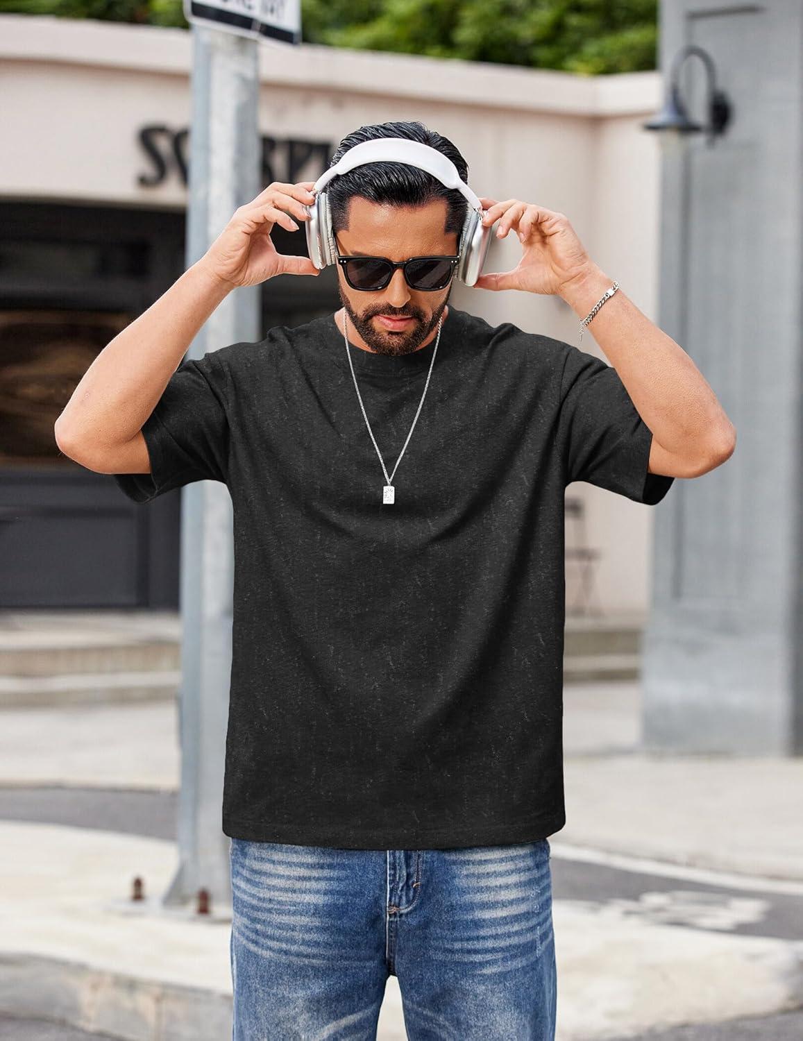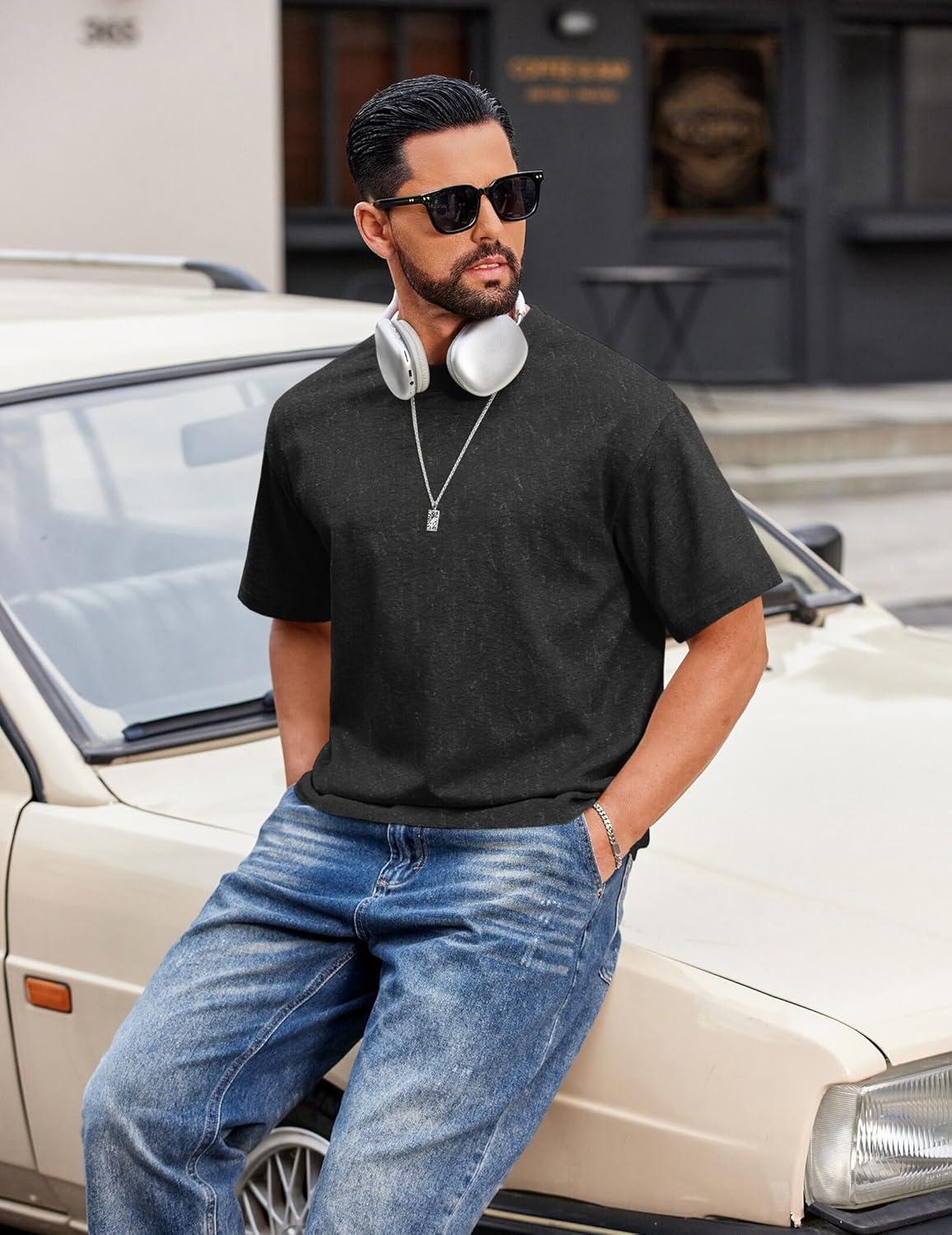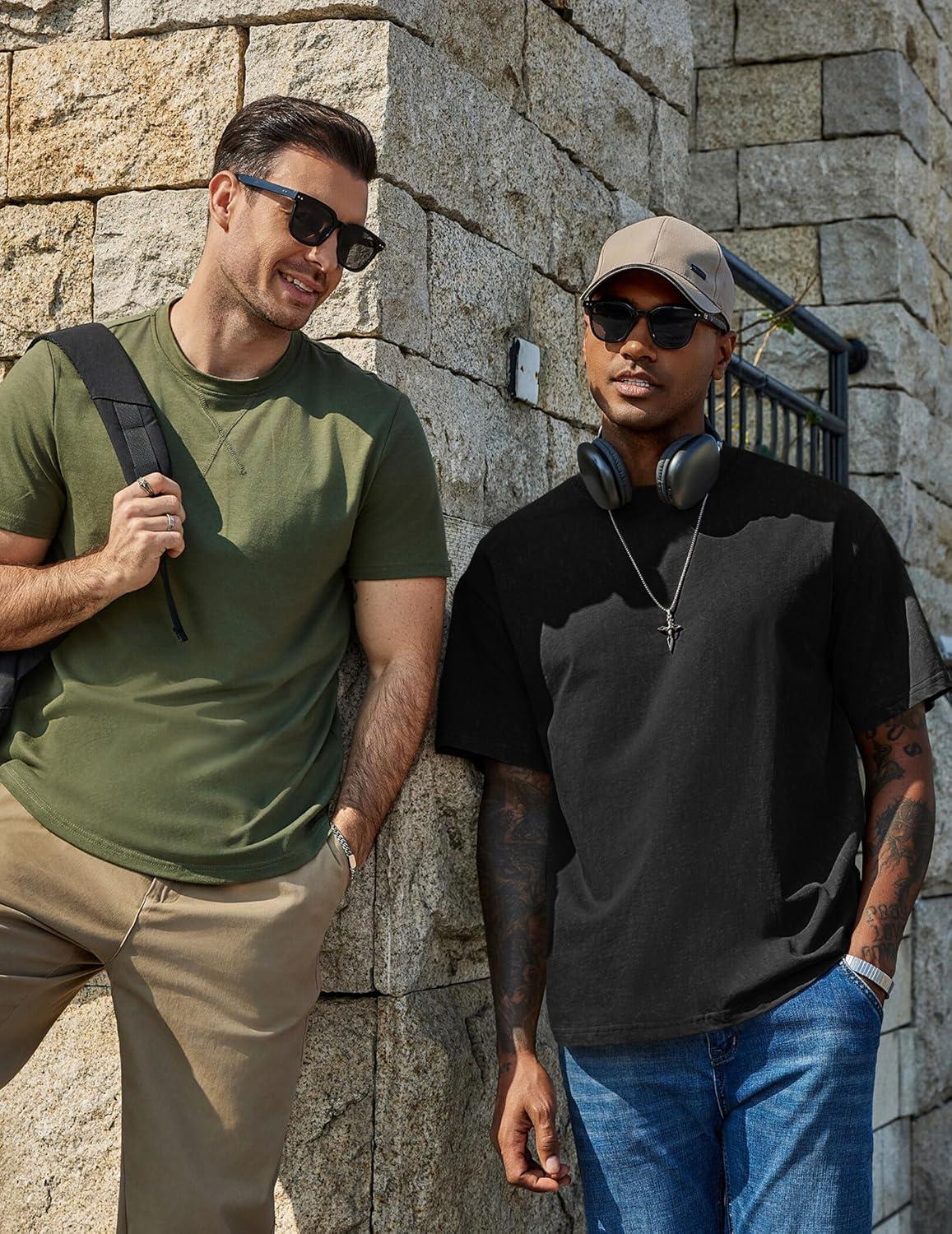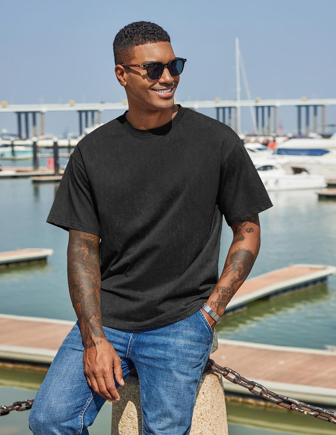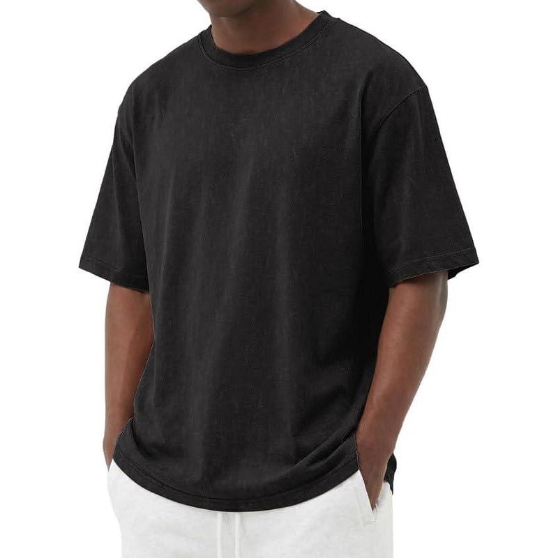 COOFANDY Men's Cotton T-Shirts Oversized Shirt Short Sleeves Streetwear Loose Fit Summer Tee Tops Washed Basic Unisex Shirts(All Black)