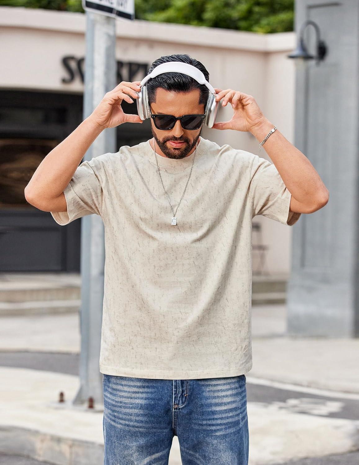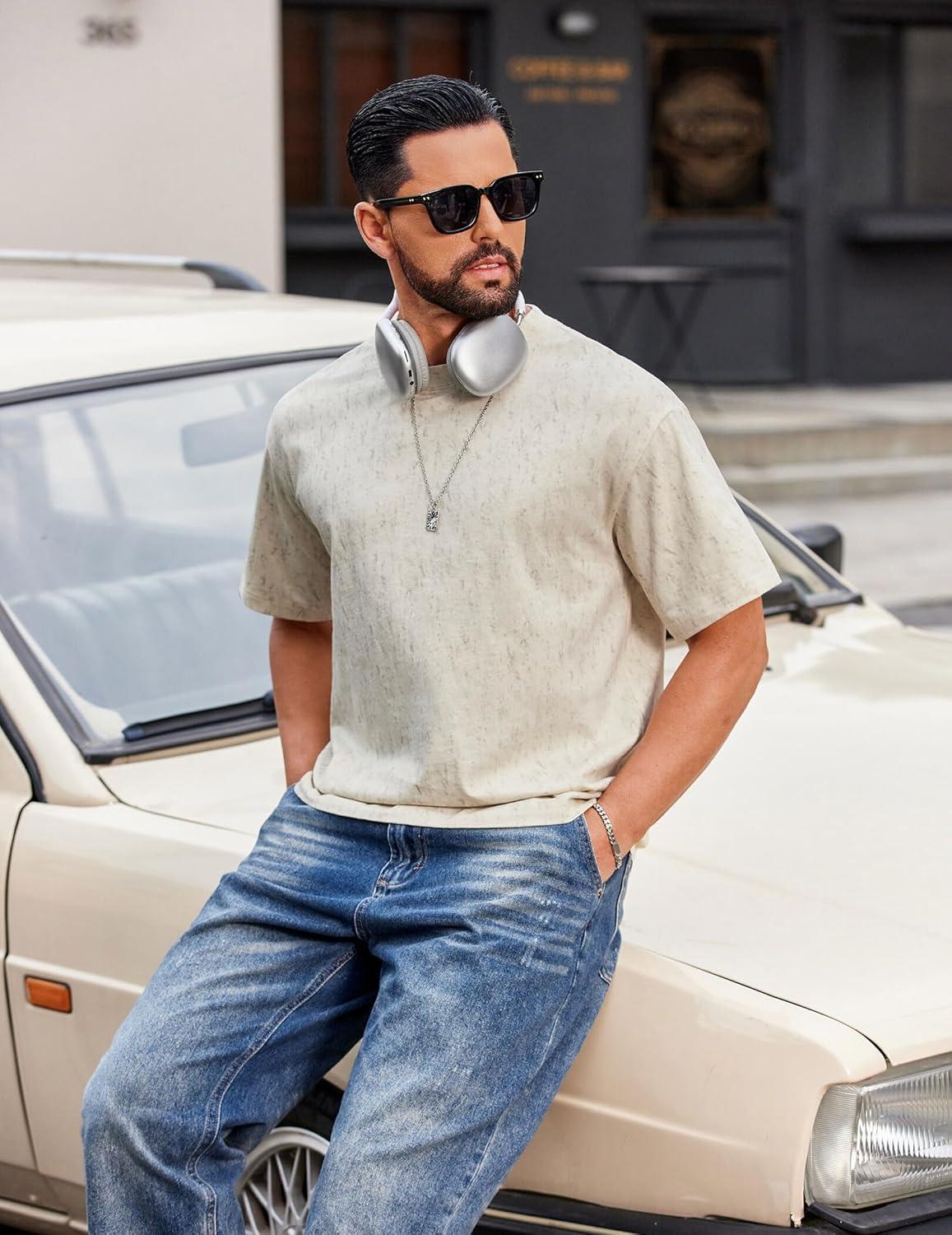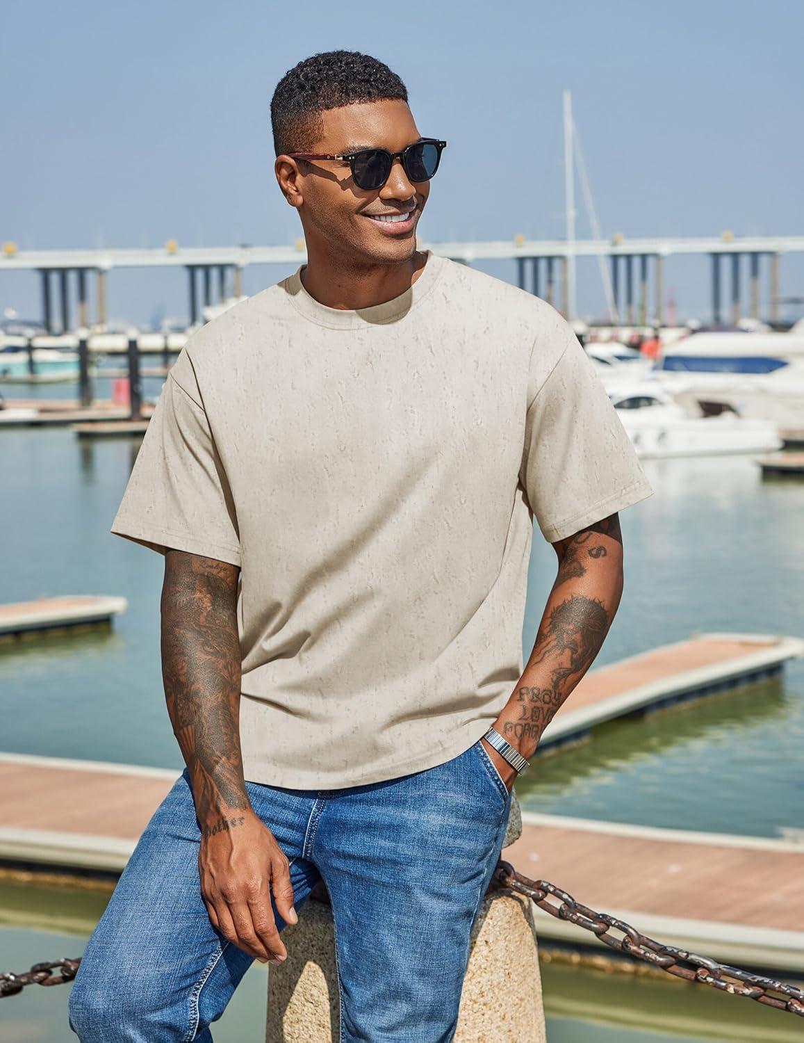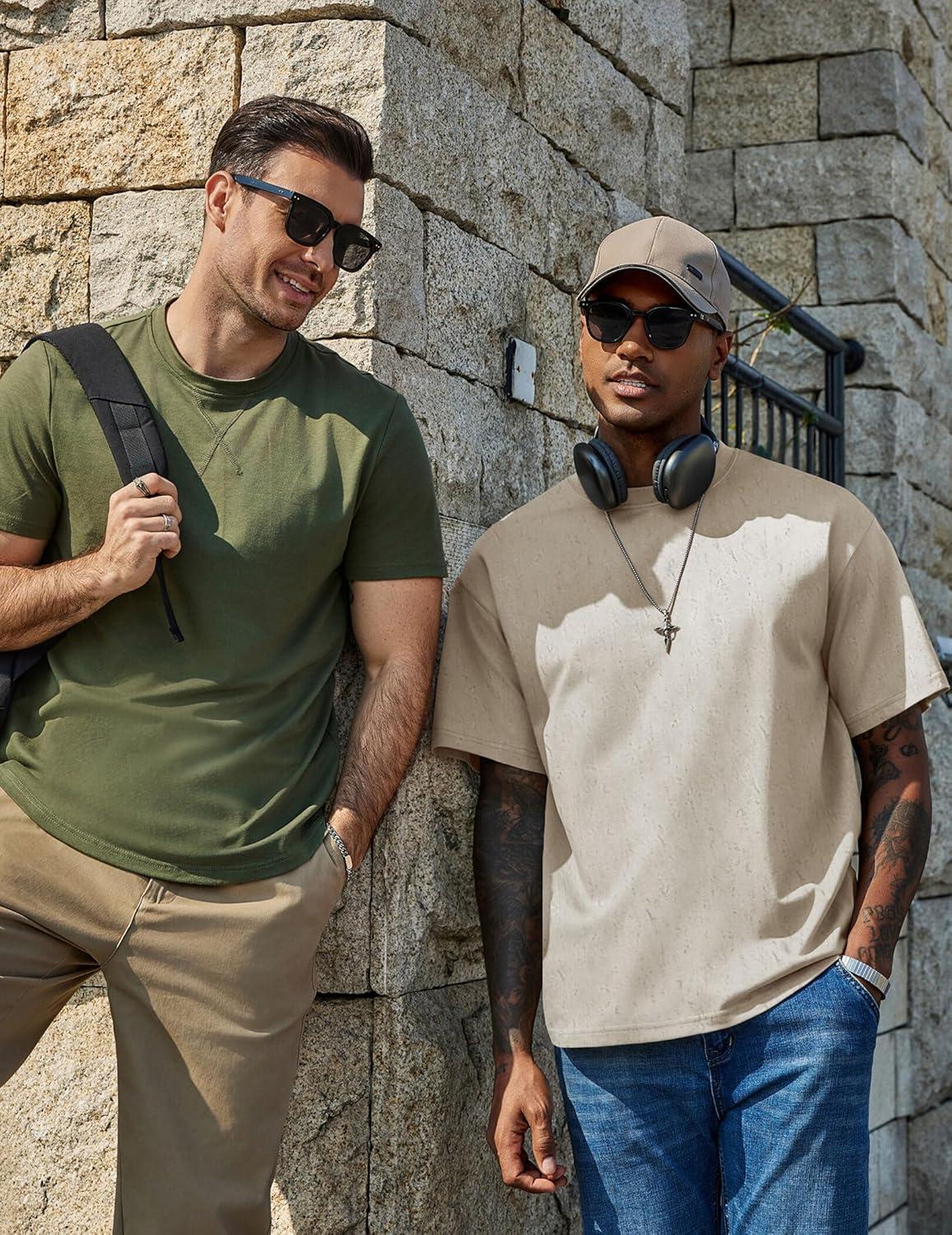 COOFANDY Men’s Cotton T-Shirts Oversized Shirt Short Sleeves Streetwear Loose Fit Summer Tee Tops Washed Basic Unisex Shirts(Beige)