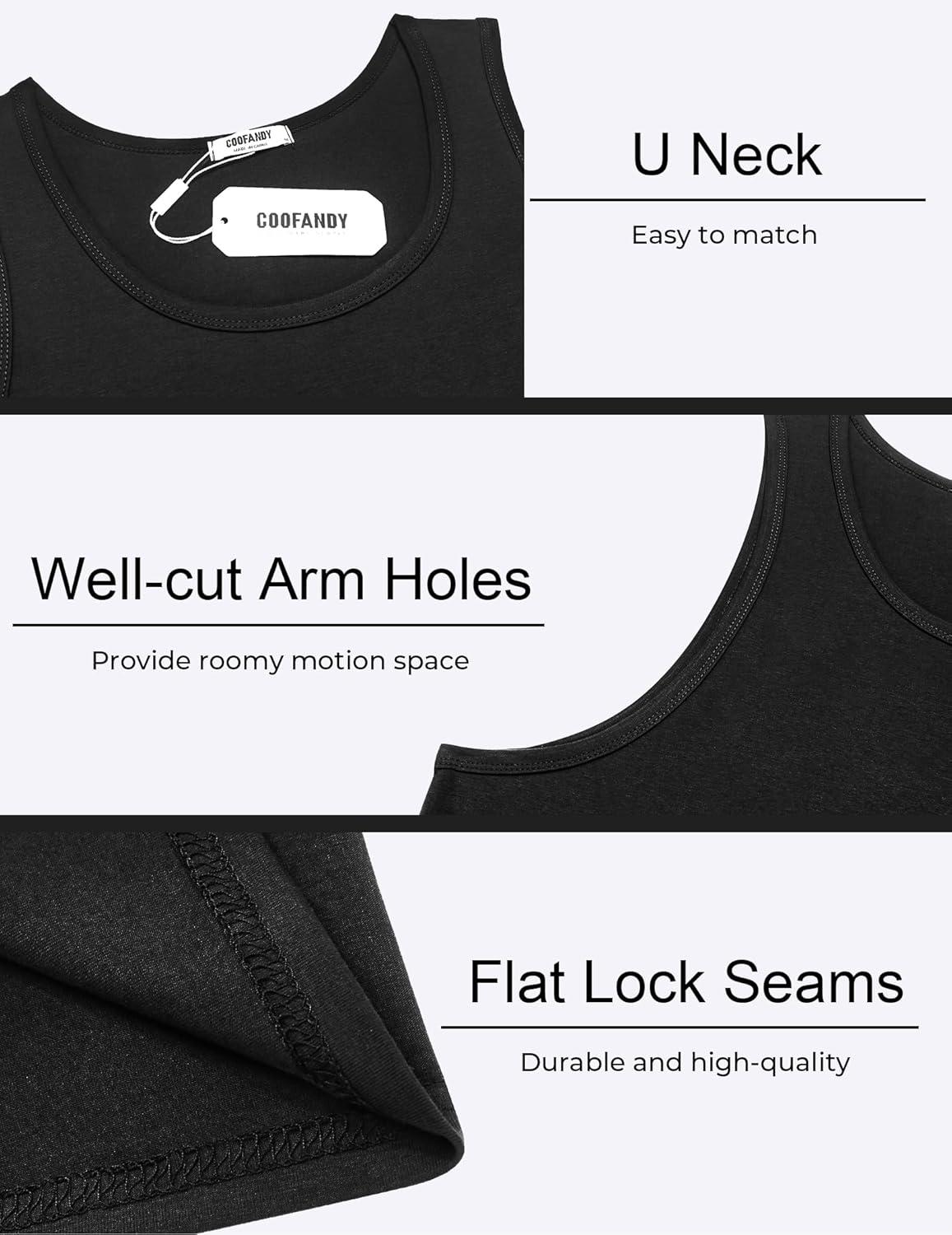 COOFANDY Mens Cotton Tank Tops Summer Beach Sleeveless Muscle Shirts Gym Workout Running Tank Shirt Pack(Black)