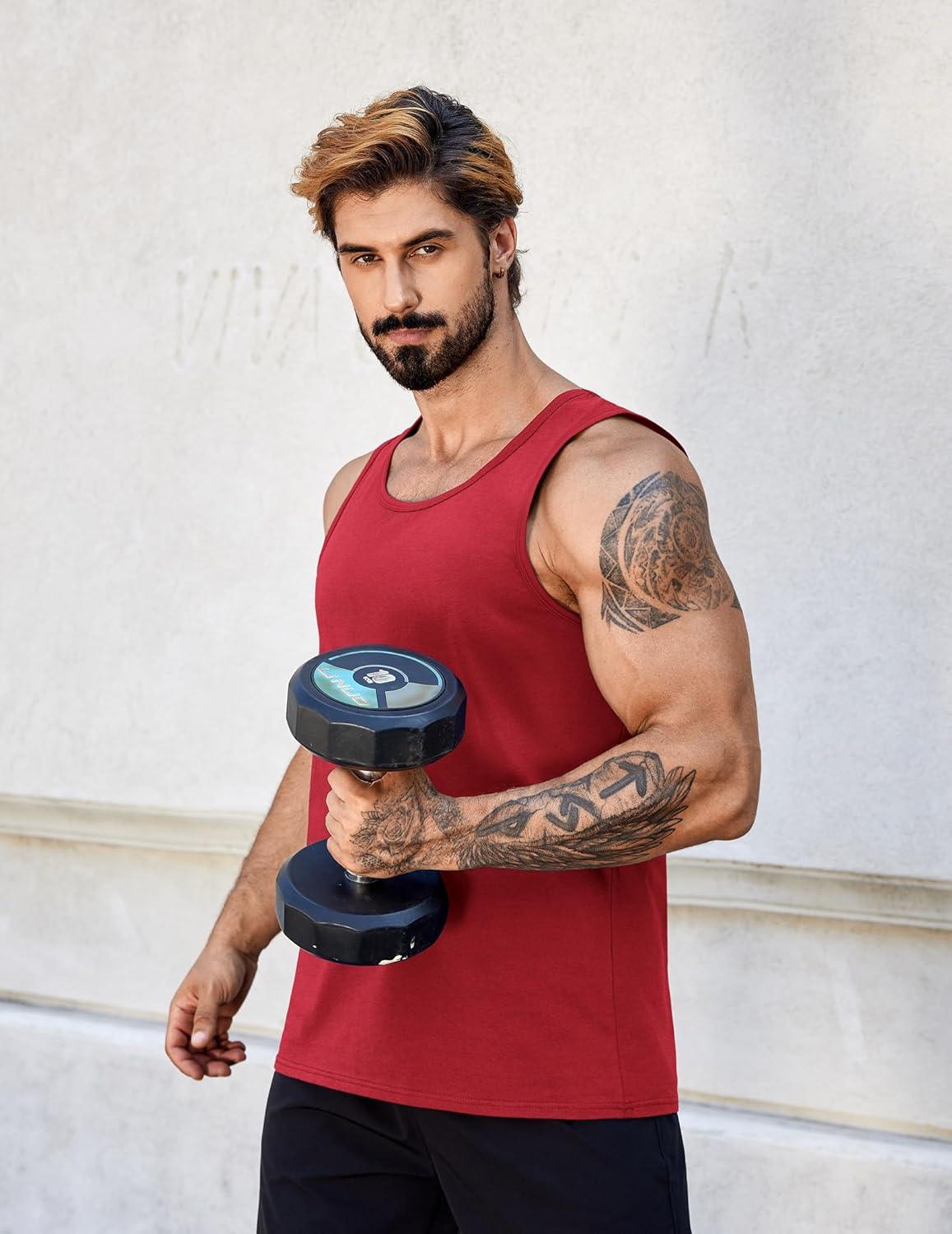 imageCOOFANDY Mens Cotton Tank Tops Summer Beach Sleeveless Muscle Shirts Gym Workout Running Tank Shirt PackBlackred