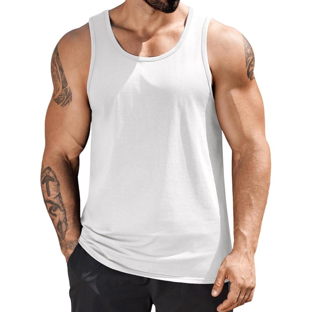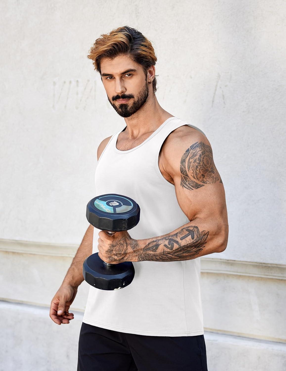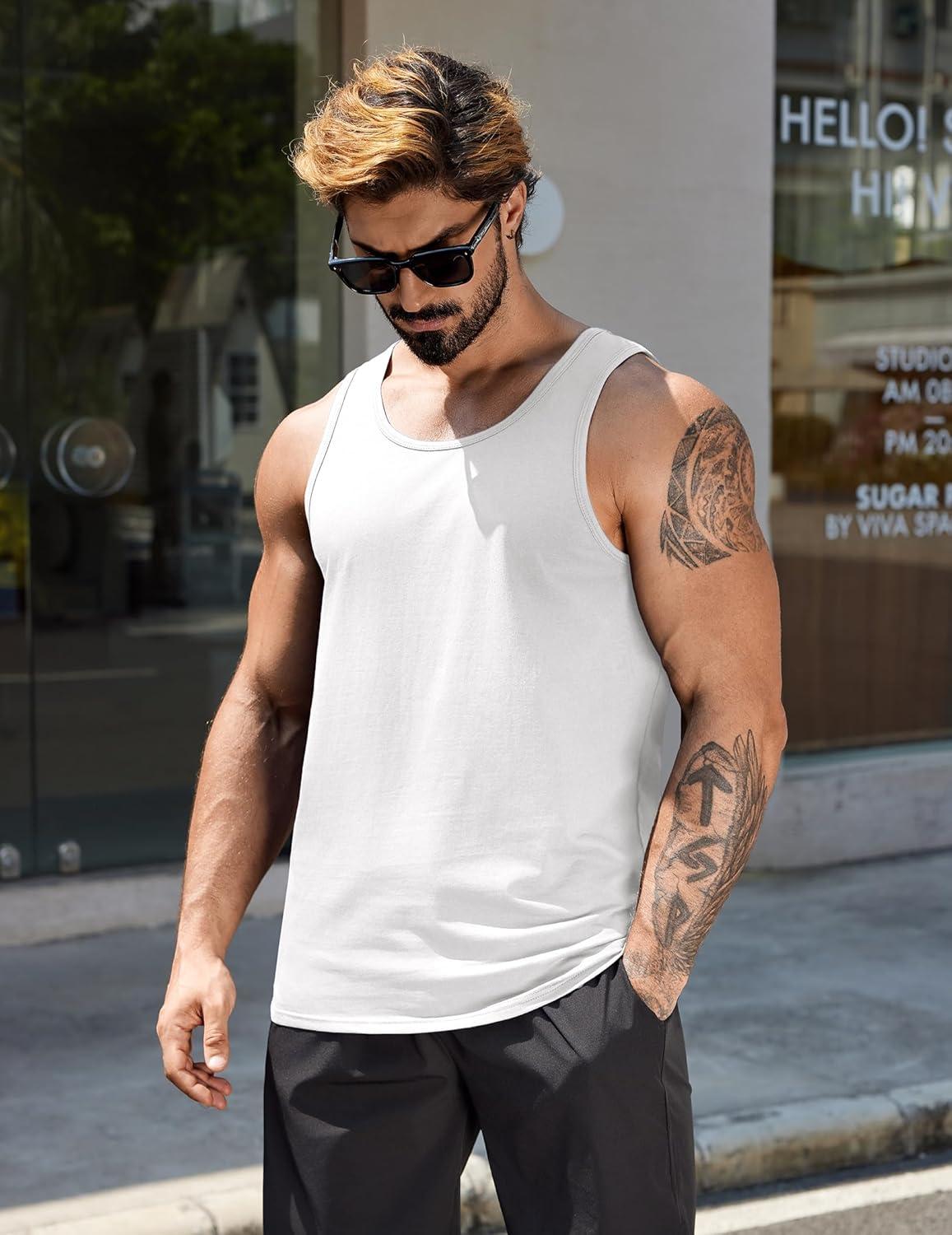 COOFANDY Mens Cotton Tank Tops Summer Beach Sleeveless Muscle Shirts Gym Workout Running Tank Shirt Pack(White)